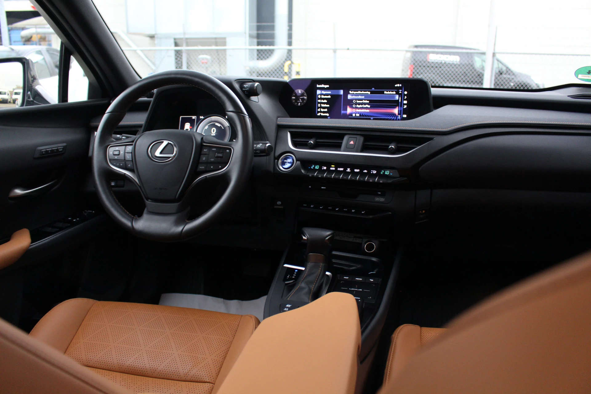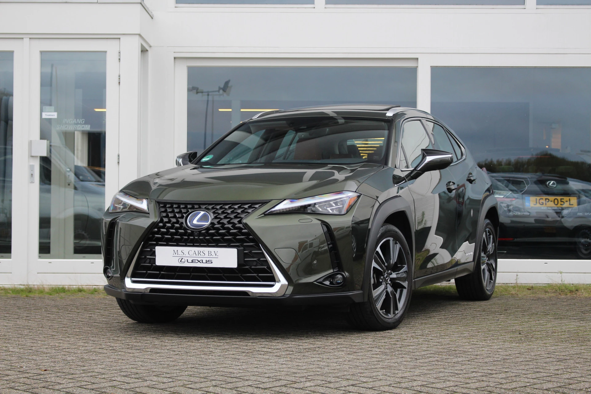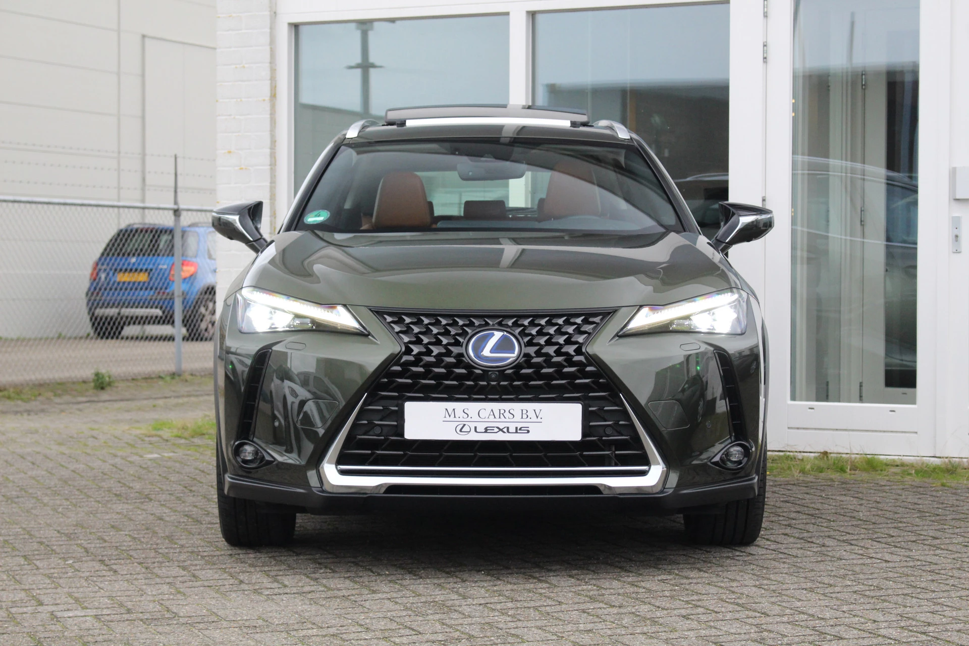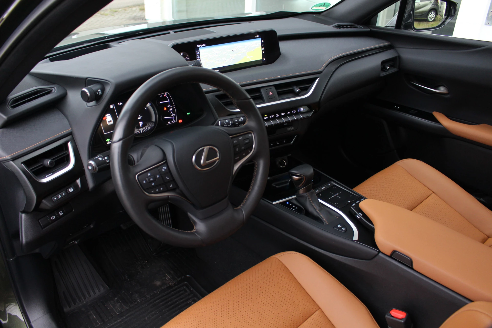In nieuwstaat verkerende Lexus UX250h in de President Line uitvoering van het bouwjaar 2021 met maar liefst 18.581 aantoonbare kilometers! Prachtige wagen uitgerust in de kleur Khaki Groen Metallic met Hazel bruin leder bekleding en bruine stiksels binnen het interieur, een zeer chique kleurstelling. Naast zijn mooie looks heeft deze Lexus UX u vele luxe aan te bieden o.a. Mark Levinson Premium Audio, open dak, stuurwielverwarming, 360-graden camera, head up display, stoelverwarming, stoelventilatie, multi-led koplampen adaptief, elektrisch verstelbare stoelen met geheugenfunctie, elektrische achterklep en nog meer! Bent u op zoek naar een compacte wagen met hoge instap, vele luxe opties zoals u bent gewend van Lexus en de mooie looks? Dan is dit wellicht de wagen voor u!