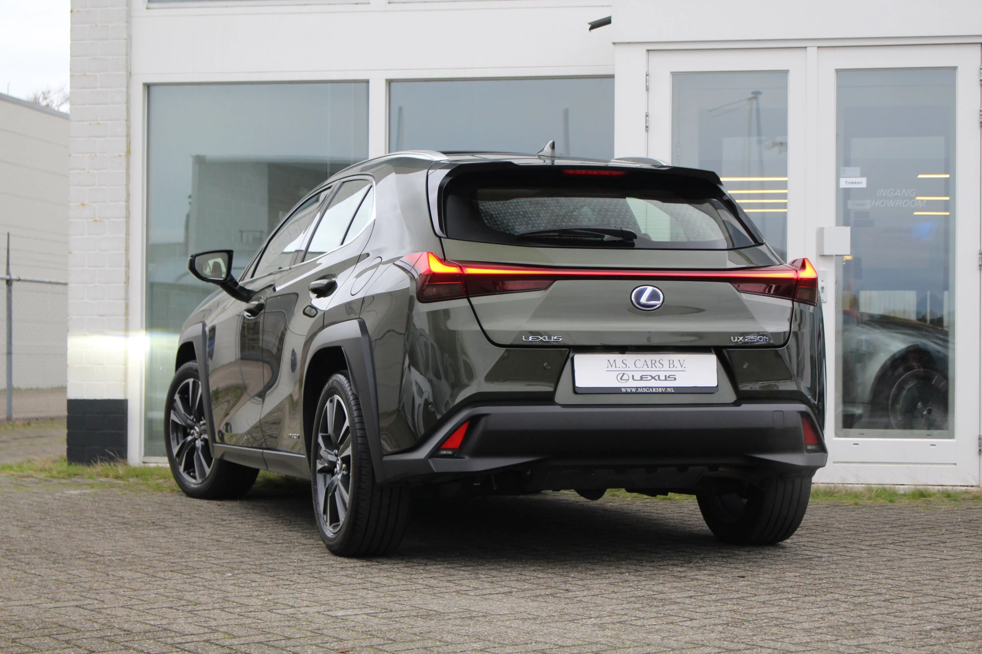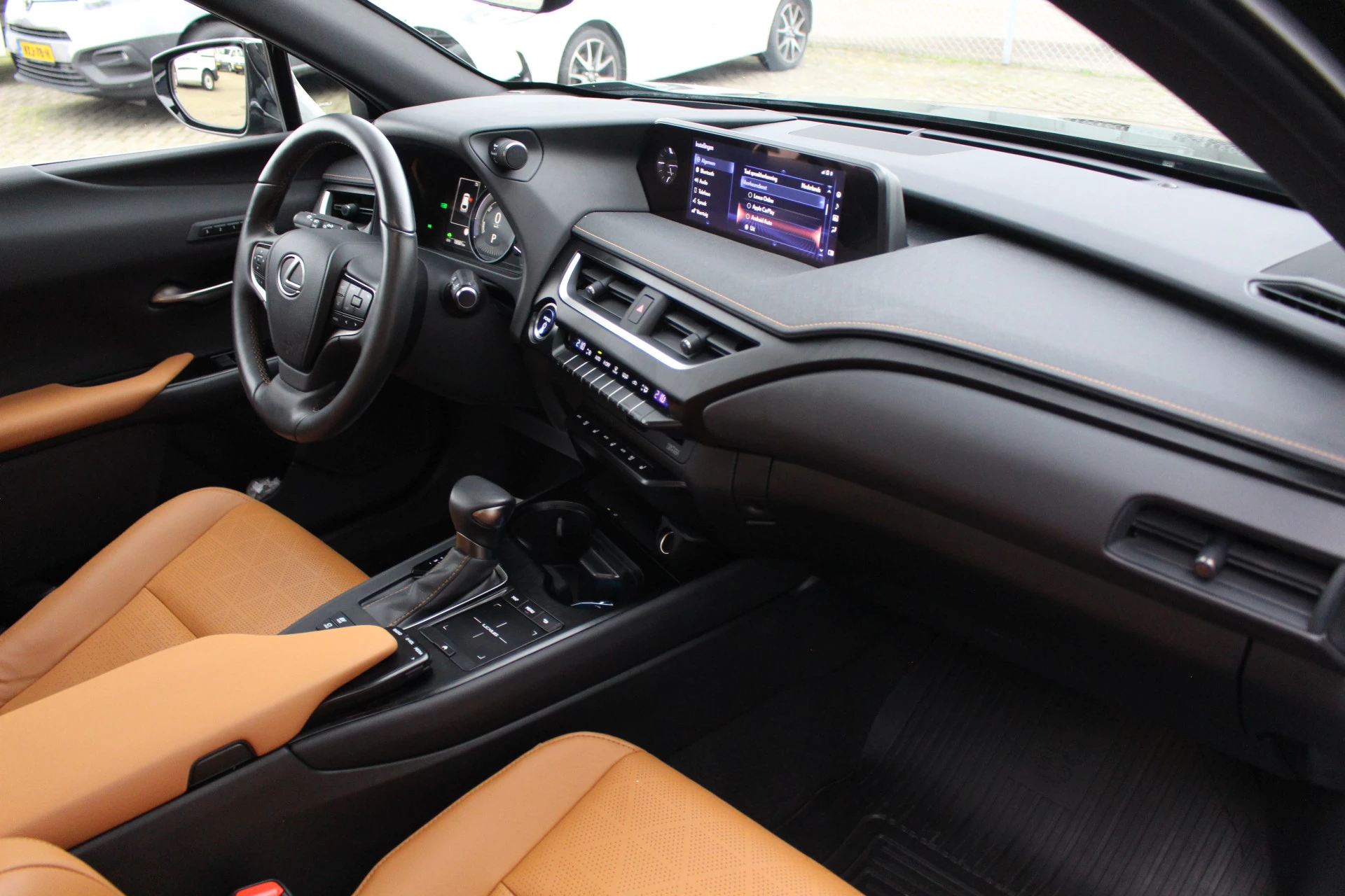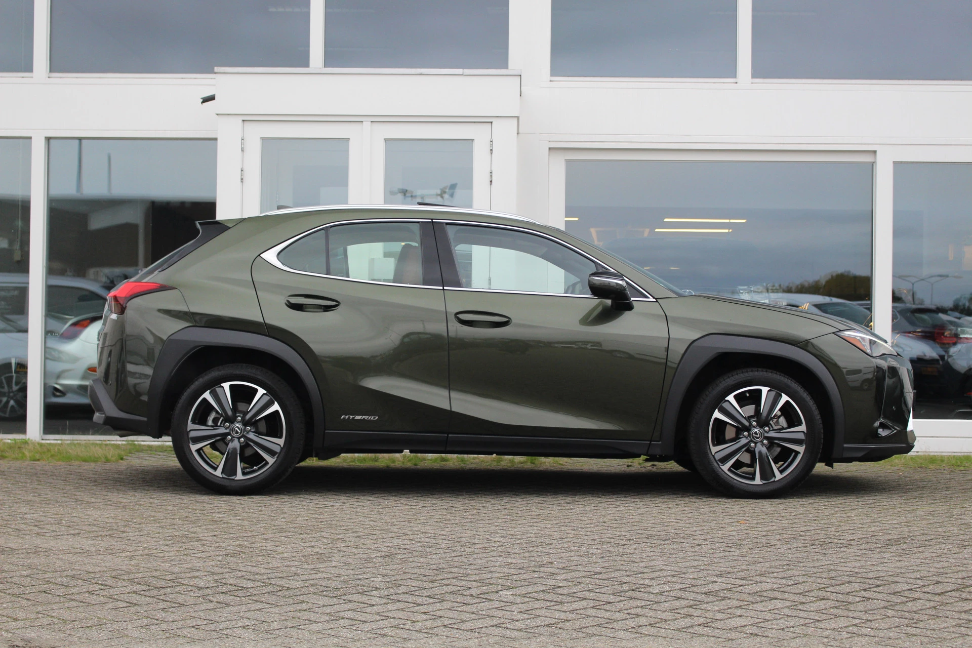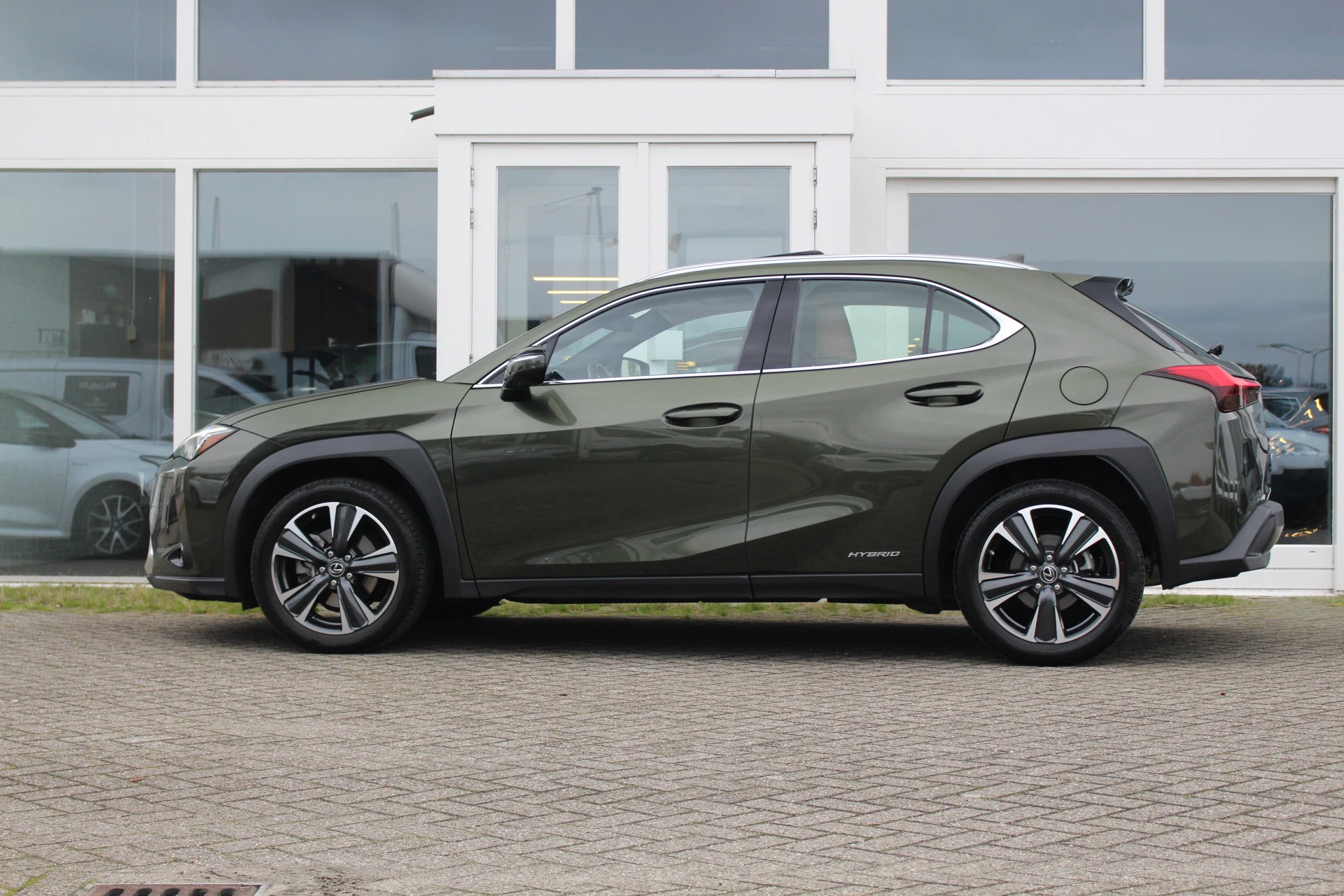 In nieuwstaat verkerende Lexus UX250h in de President Line uitvoering van het bouwjaar 2021 met maar liefst 18.581 aantoonbare kilometers! Prachtige wagen uitgerust in de kleur Khaki Groen Metallic met Hazel bruin leder bekleding en bruine stiksels binnen het interieur, een zeer chique kleurstelling. Naast zijn mooie looks heeft deze Lexus UX u vele luxe aan te bieden o.a. Mark Levinson Premium Audio, open dak, stuurwielverwarming, 360-graden camera, head up display, stoelverwarming, stoelventilatie, multi-led koplampen adaptief, elektrisch verstelbare stoelen met geheugenfunctie, elektrische achterklep en nog meer! Bent u op zoek naar een compacte wagen met hoge instap, vele luxe opties zoals u bent gewend van Lexus en de mooie looks? Dan is dit wellicht de wagen voor u!