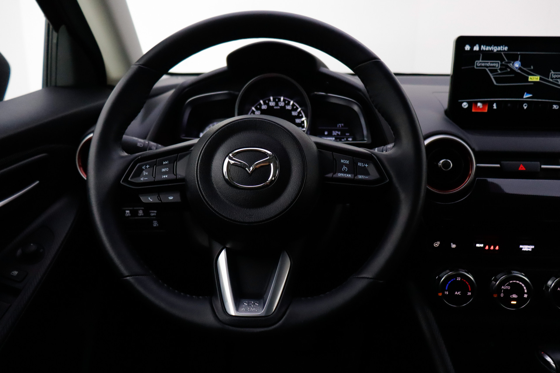 De achteruitrijcamera brengt precies in zicht wat zich achter u bevindt en toont een glashelder beeld op hoge resolutie. Een geluidssignaal waarschuwt hoeveel ruimte u nog heeft. De kans op een kop-staart botsing wordt sterk gereduceerd door het systeem van achteropkomend verkeer waarschuwing. De audiobediening op het stuur draagt bij aan een veilige rit. Geen afleiding, geen tasten - de knoppen zitten onder uw vingers. Met de DAB-ontvanger heeft u keuze uit talloze digitale radiozenders met de allerhoogste geluidskwaliteit. De cruise control geeft elke flitser het nakijken. Met airconditioning, centrale deurvergrendeling met afstandsbediening, boordcomputer en lederen versnellingspook is deze Mazda helemaal compleet.