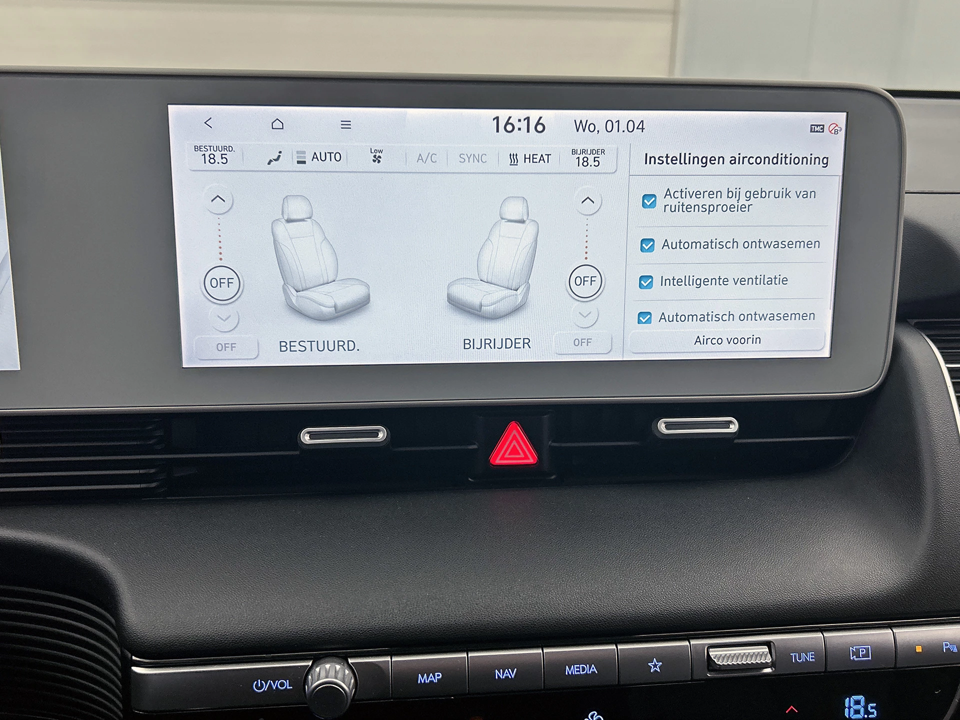 In de Hyundai IONIQ 5 heeft uw veiligheid en die van uw omgeving prioriteit. Het Lane-keeping systeem garandeert dat u zich niet onverhoeds buiten de lijnen van de rijstrook begeeft. De sensor van het forward collision warning-systeem registreert permanent de afstand tot voorliggers en grijpt in als een botsing dreigt. Bij concentratieverlies en toenemende vermoeidheid van de bestuurder, geeft de auto een sterk signaal om u weer bij de les te houden. Hierdoor kunnen veel ongelukken voorkomen worden. De veiligheid van deze auto wordt verder verhoogd door hill hold functie, autonoom remsysteem en bandenspanningcontrolesysteem.