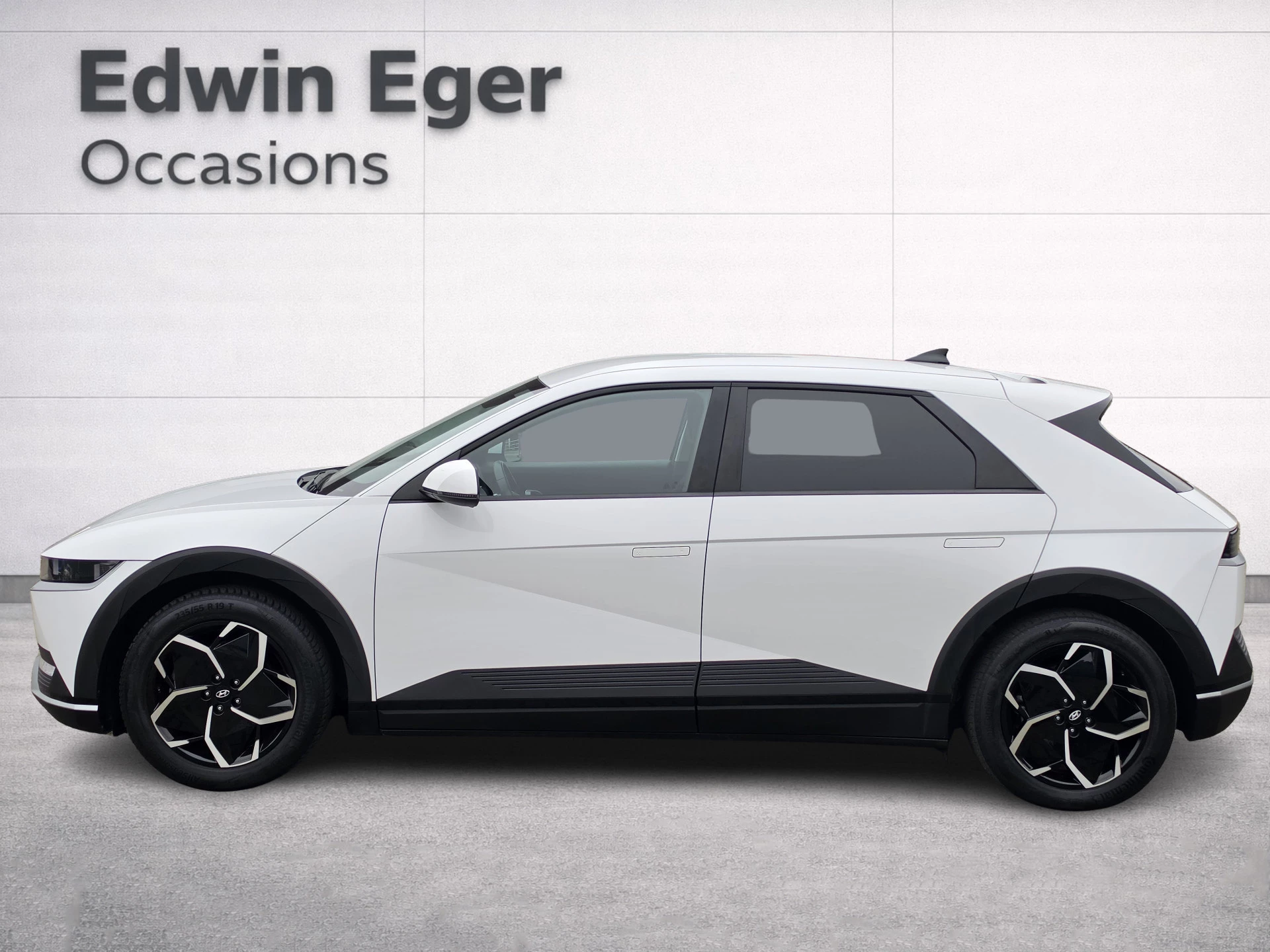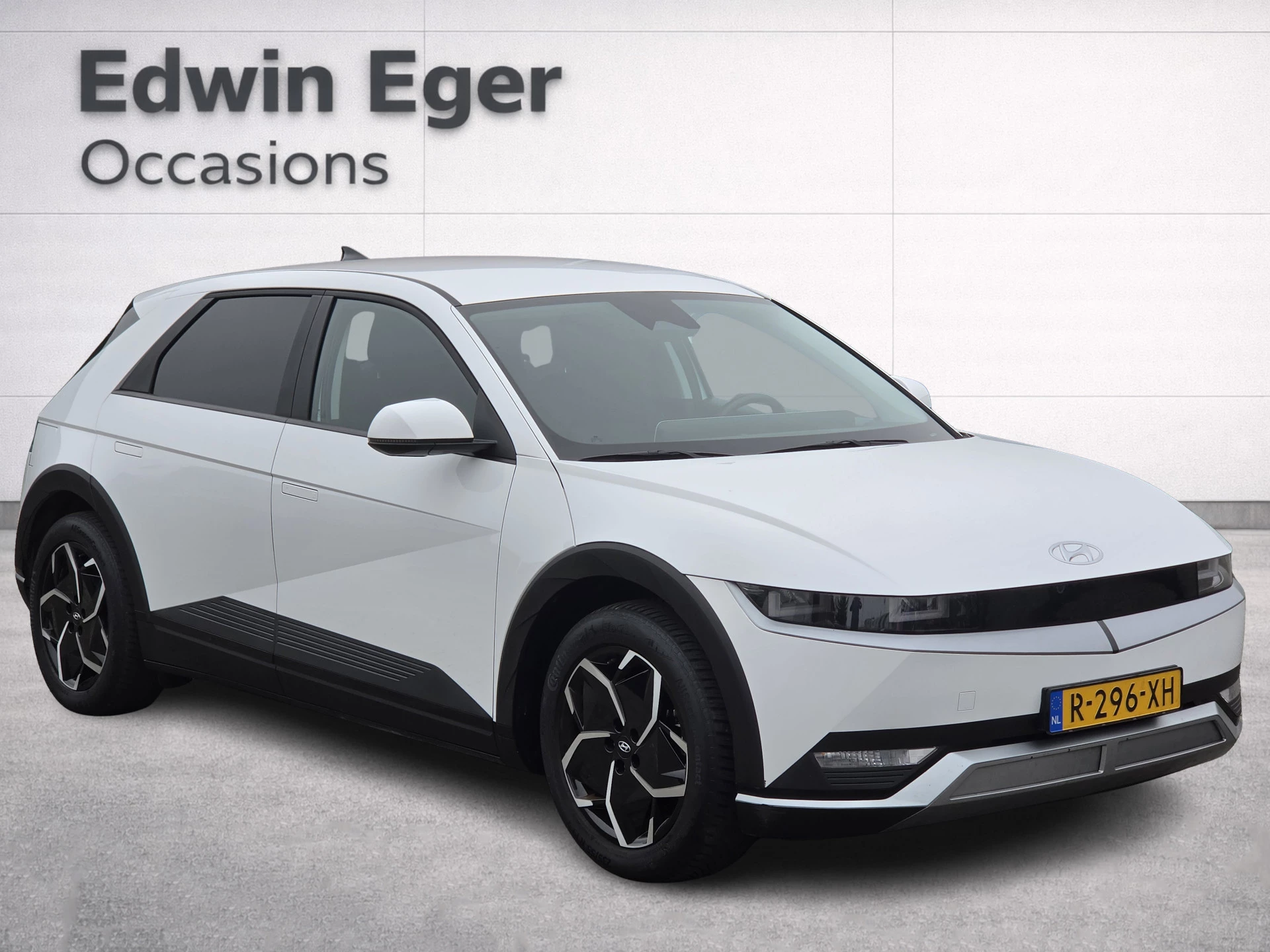 Dankzij de warmtepomp blijft de actieradius ook in koude omstandigheden optimaal. De licht witte parelmoer lak in combinatie met de 19 inch lichtmetalen velgen en de futuristische lijnen van de IONIQ 5 geven deze auto een unieke en moderne uitstraling.
