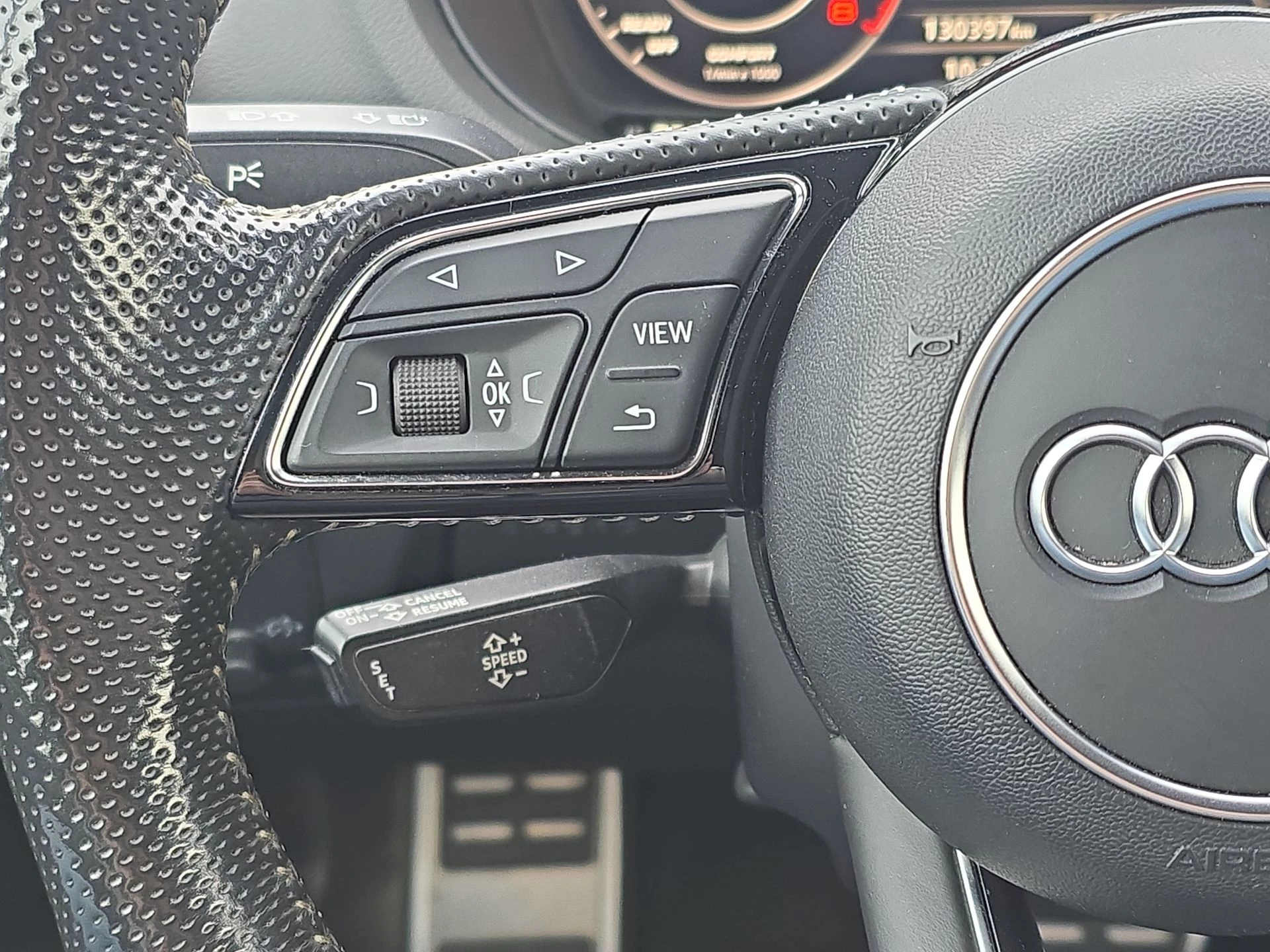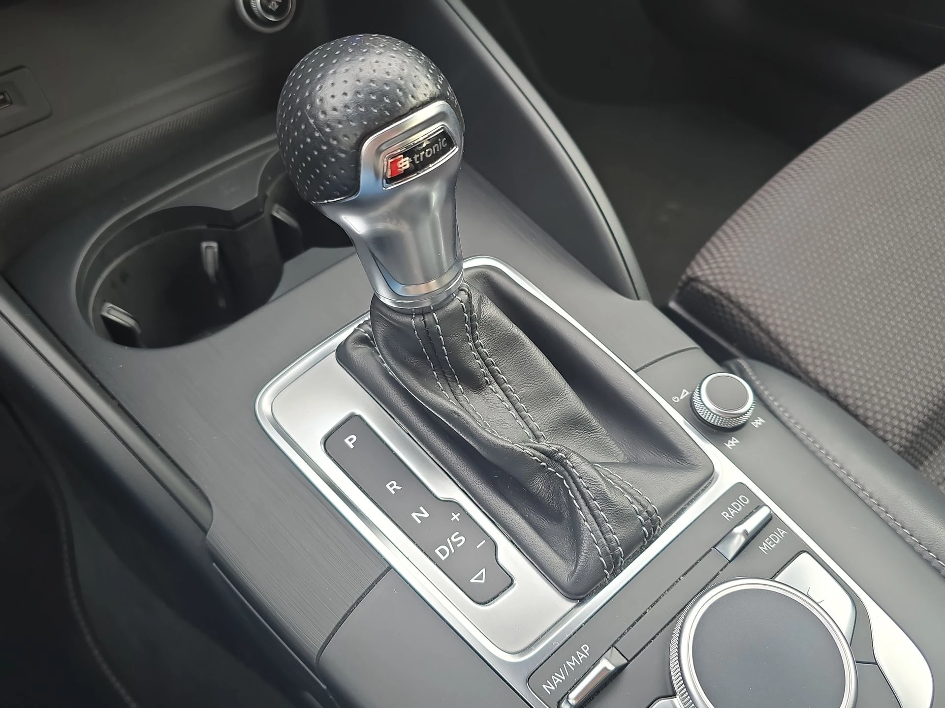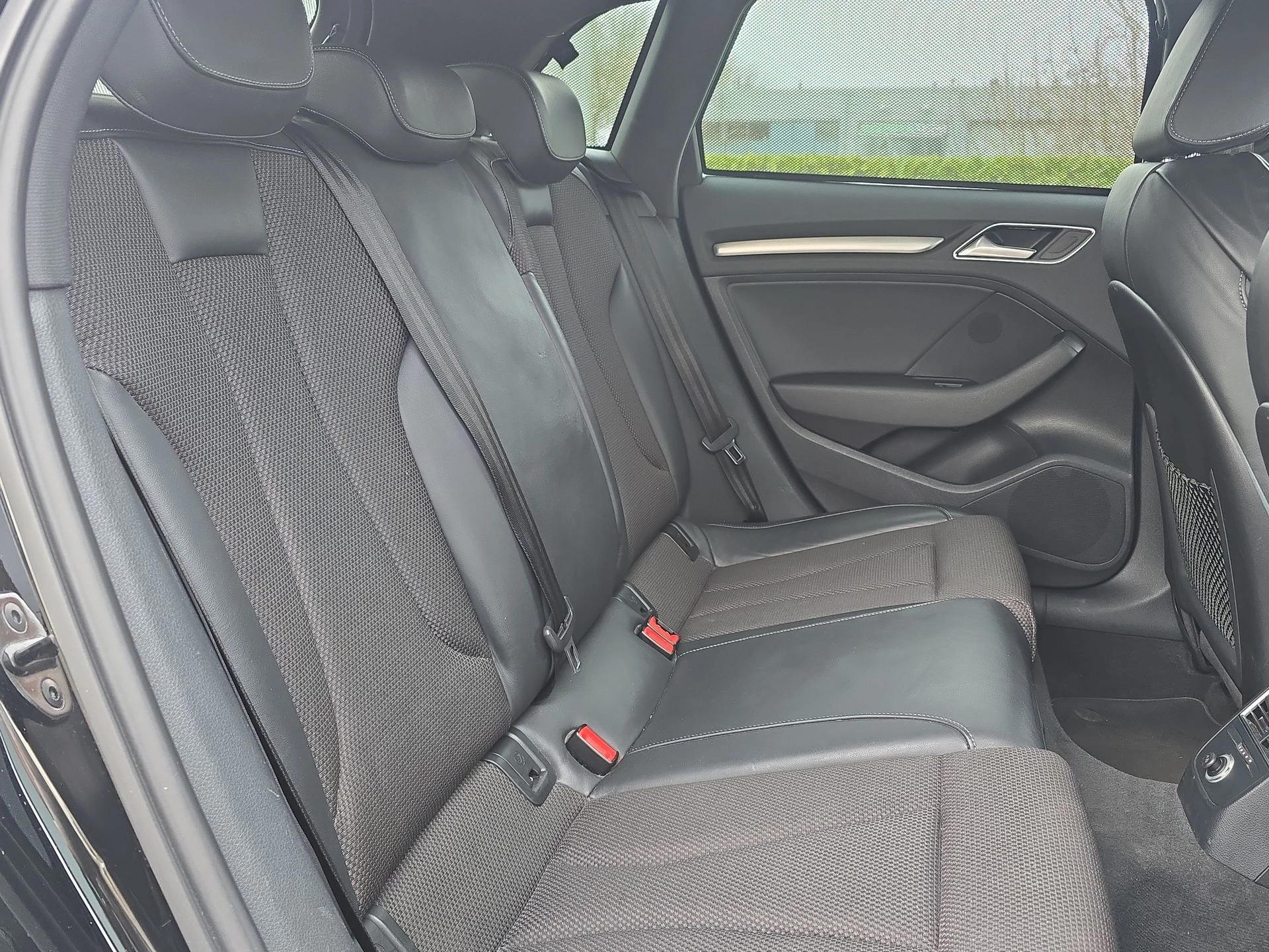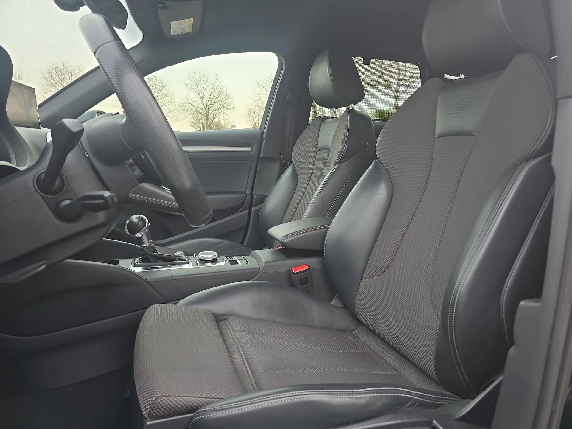 Het afgevlakte S-Line stuurwiel, de half-lederen sportstoelen en de hoogwaardige afwerking geven het interieur een premium karakter zoals je van Audi mag verwachten.