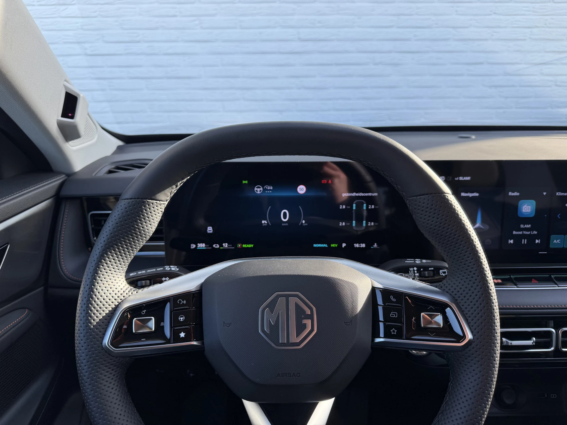 Deze MG biedt u niet alleen comfort en rijplezier, maar ook veiligheid. Actieve veiligheidssystemen houden voor u de weg in de gaten en reageren op onvoorziene situaties voordat u dat kunt. In het instrumentarium laat de verkeersborddetectie de actuele verkeersborden zien. Met het Lane-keeping systeem gaat u nooit onbedoeld over de streep. Elke auto heeft een of meer blinde vlekken. De actieve dodehoekdetectie waarschuwt als er gevaar voor een aanrijding bestaat. Bovenop deze veiligheidsfeatures heeft deze MG bovendien hill hold functie, vermoeidheidsherkenning, autonoom remsysteem en bandenspanningcontrolesysteem.