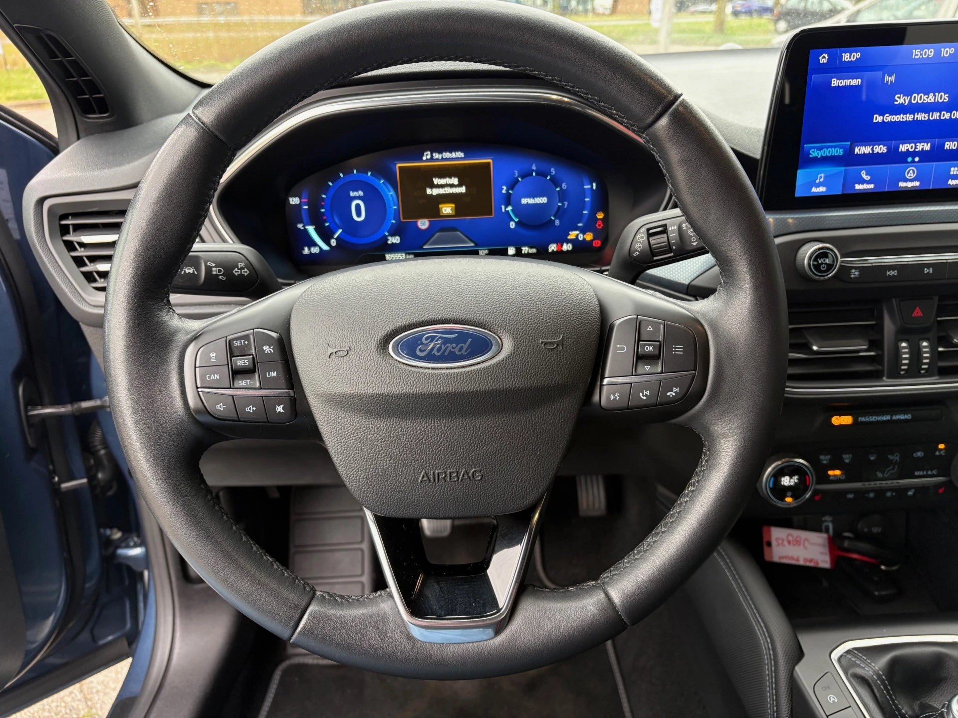 U ziet geen paaltje meer over het hoofd dankzij de achteruitrijcamera. Spraakbediening verhoogt de veiligheid en het gebruiksgemak. De auto luistert naar uw instructies en volgt ze op. Deze Ford Focus is voorzien van remote services. Via uw smartphone bedient u diverse functies ook op afstand en krijgt u informatie over de status van uw auto. Het full map navigatiesysteem geeft duidelijke instructies. Zo komt u veilig en vlot aan waar u moet zijn. De achteropkomend verkeer waarschuwing is een mooie veiligheidsoptie, die middels sensoren in de gaten houdt wat er onderweg achter u gebeurt. Ook is de Ford uitgerust met: WIFI-hotspot, automatische airconditioning, draadloos opladen, DAB ontvangst, regensensor en cruise control.