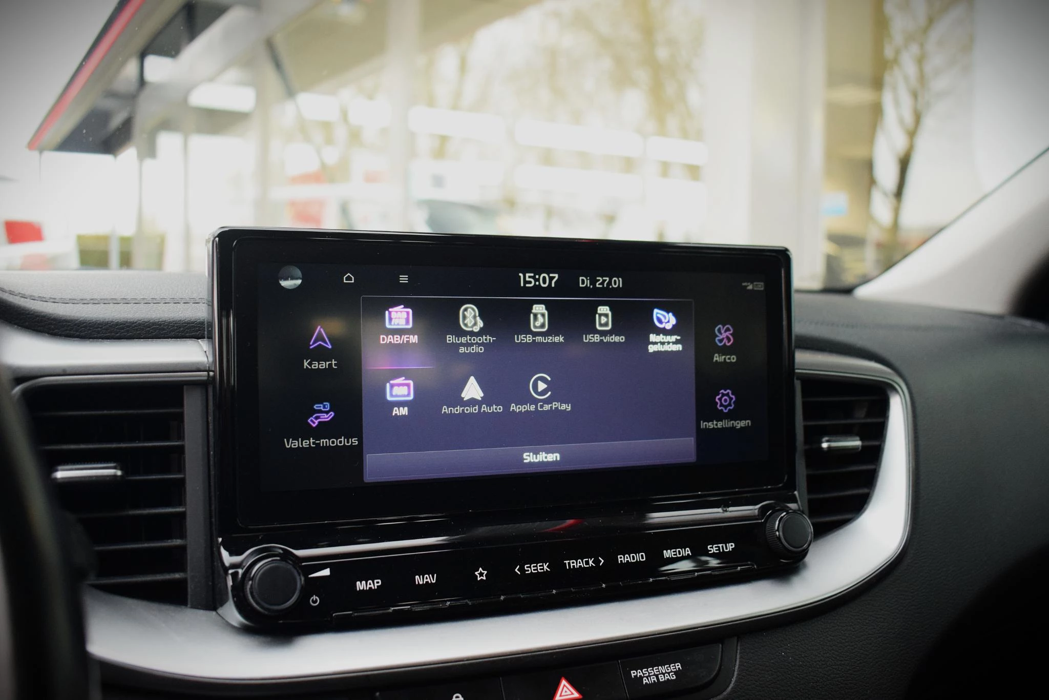 De achteruitrijcamera brengt precies in zicht wat zich achter u bevindt en toont een glashelder beeld op hoge resolutie. Een geluidssignaal waarschuwt hoeveel ruimte u nog heeft. In één oogopslag weet u de complete systeemstatus van deze auto. Dankzij Connected Services. Kies de muziek waarvan u houdt, dankzij de DAB-radio klinkt het altijd geweldig. Intussen bedient u het audiosysteem en het full map navigatiesysteem met de knoppen op het stuur of met uw stem. Electronic climate control verwarmt of koelt het interieur met een druk op de knop. De auto neemt u werk uit handen doordat hij zelf veel in de gaten houdt. Een regensensor en een automatisch inschakelbare verlichting nemen waar wanneer de ruitenwissers en het licht aan moeten. Met cruise control, automatisch dimmende binnenspiegel, lederen stuur, centrale deurvergrendeling met afstandsbediening en lederen versnellingspook is deze Kia helemaal compleet.