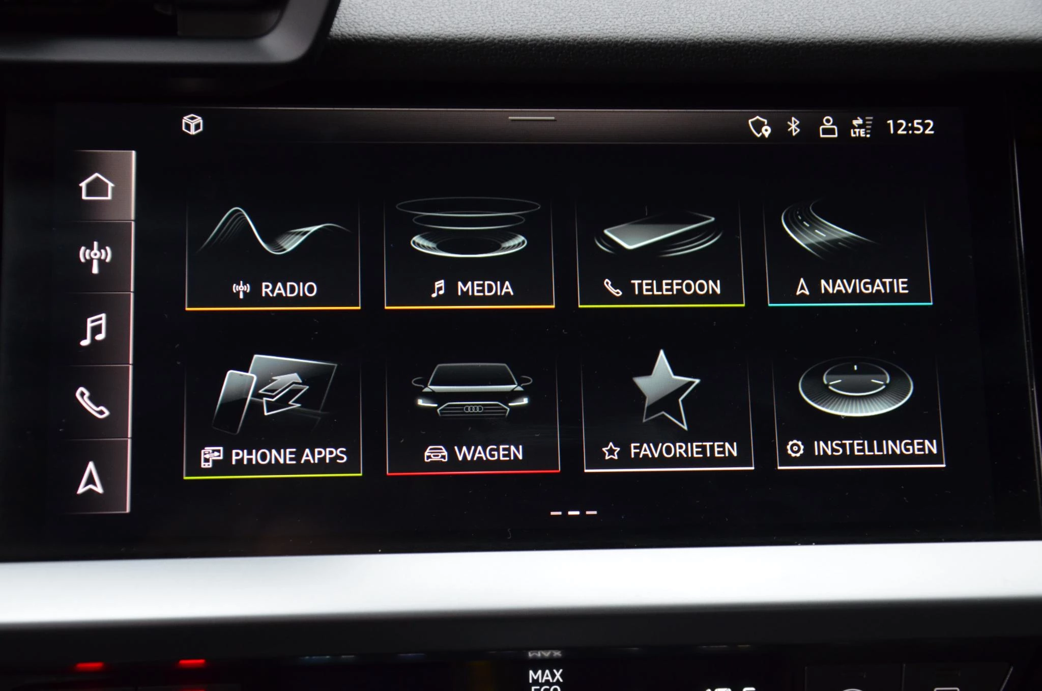De automatische veiligheidssystemen in deze Audi fungeren als een extra paar ogen. En dat niet alleen, ze kunnen ook actief ingrijpen, om zo u en uw passagiers te beschermen. Verkeersbord-detectie herkent verkeersborden en toont deze op het instrumentarium van de auto. Het Lane-keeping systeem registreert permanent of u binnen de lijnen van de rijstrook blijft; dwaalt u onbedoeld af, dan waarschuwt het systeem en corrigeert de koers. Brake assist verhoogt de remdruk in een noodsituatie zodat u sneller stil staat. Bovenop deze veiligheidsfeatures heeft deze Audi bovendien hill hold functie en bandenspanningcontrolesysteem.