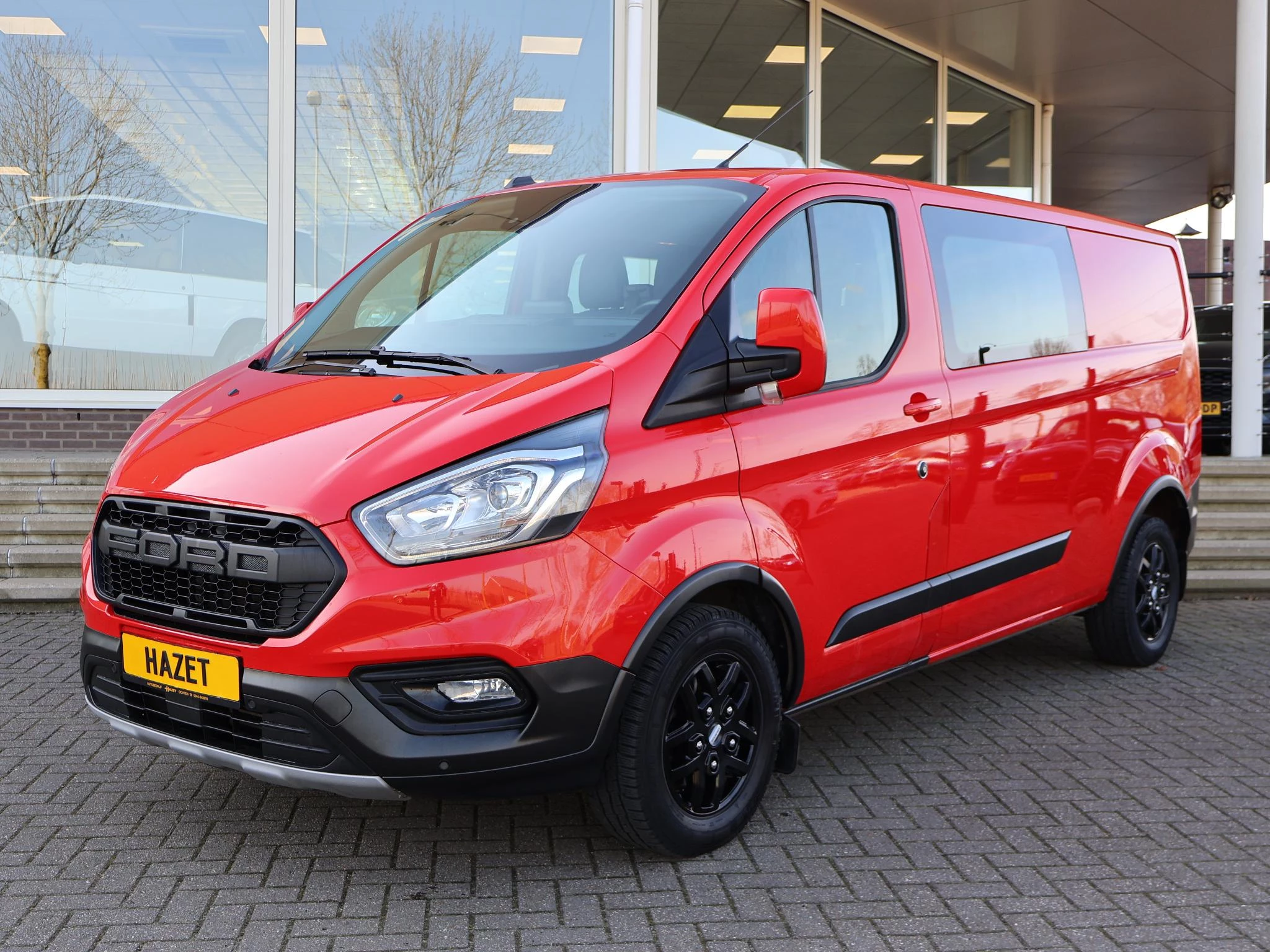 6-Persoons dubbel cabine uitvoering, 2.0 TDI 130 PK met 6 versnellingen, L2H1 uitvoering verlengd, TRAIL uitvoering, de meest ruige uitvoering van de Transit die zich kenmerkt door het mechanische sperdifferentieel mLSD voor slechtere ondergronden, de Raptor gille, Robuuste zwarte kunststof carrosseriebescherming, Zwart leder interieur, Verwarmde voorruit, Zwarte lichtmetalen velgen met grove banden etc. Navigatie groot scherm Apple Carplay / Android Auto appstreaming Google Maps, Flitsmeister, Whatsapp, Spotify etc, LED dagrijverlichting, Achteruitrijcamera, Parkeersensoren voor en achter, Middenarmsteun, Cruise control, Airco, Verwarmde buitenspiegels en voorruit, Raptor grille,