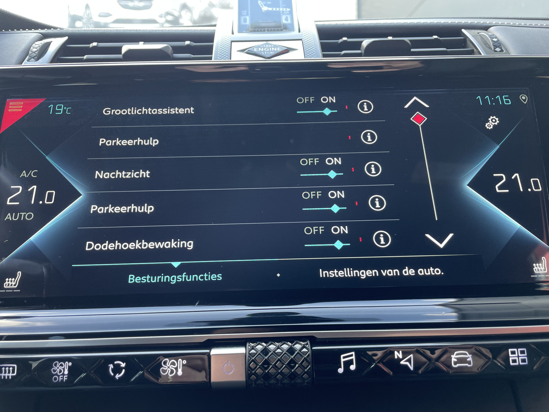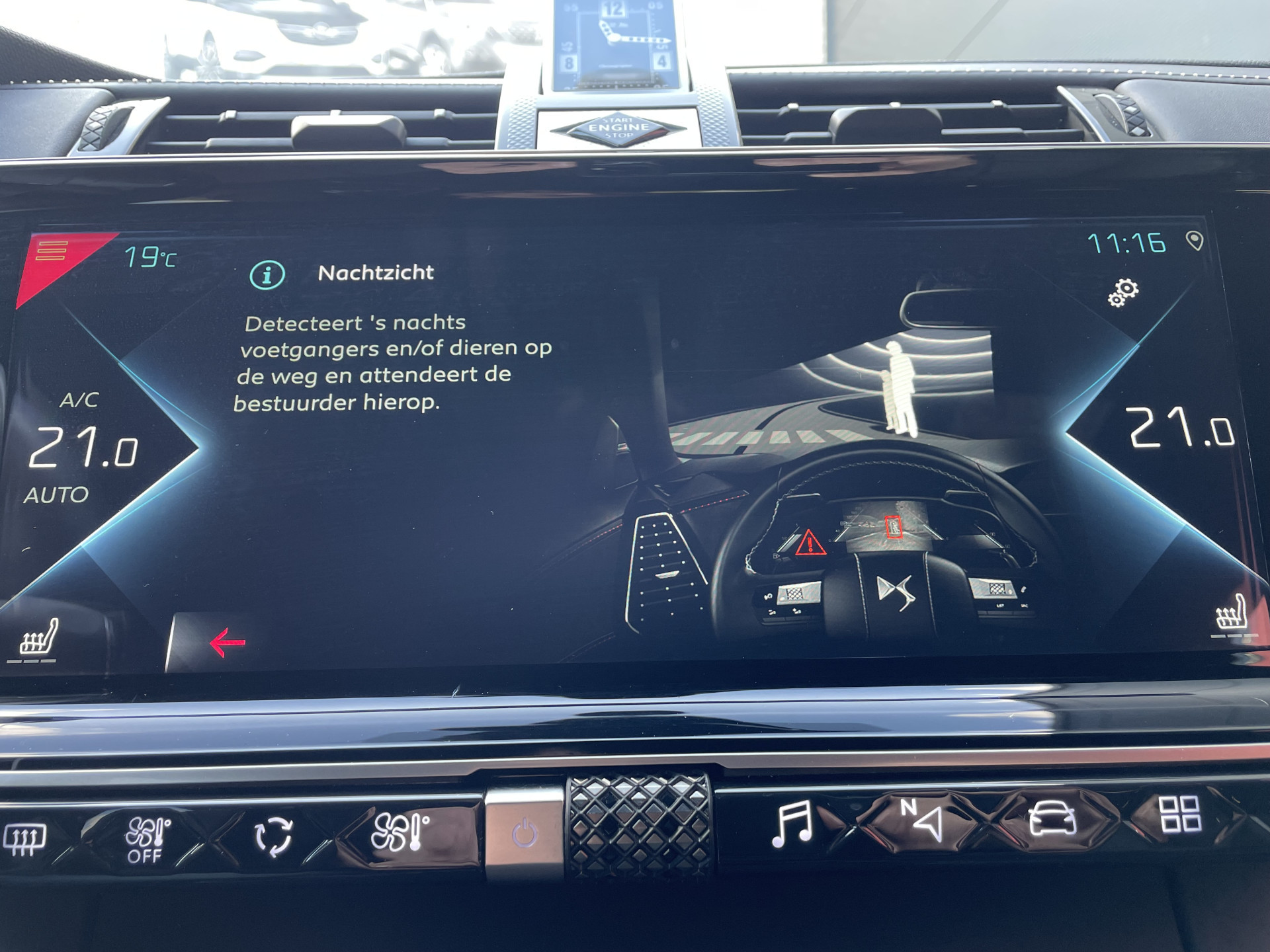 Pragmatisch en veilig als deze auto is, beschikt hij over diverse veiligheidssystemen. Bij de veiligheidssystemen van deze DS hoort ook de verkeersbord-detectie. Die leest tijdens het rijden als het ware met u mee en attendeert u op de significante verkeersborden langs en boven de weg. Een camera houdt de juiste koers binnen de rijstrook in de gaten en het Lane-keeping systeem corrigeert bij afwijkingen. Actieve dodehoekdetectie herkent andere voertuigen die in uw dode hoek rijden. Met dit hulpsysteem bent u veiliger en comfortabeler onderweg. Dankzij veiligheidsvoorzieningen als forward collision warning system, nachtzichtassistentie, hill hold functie, vermoeidheidsherkenning, autonoom remsysteem en bandenspanningcontrolesysteem, bent u steeds veilig onderweg.