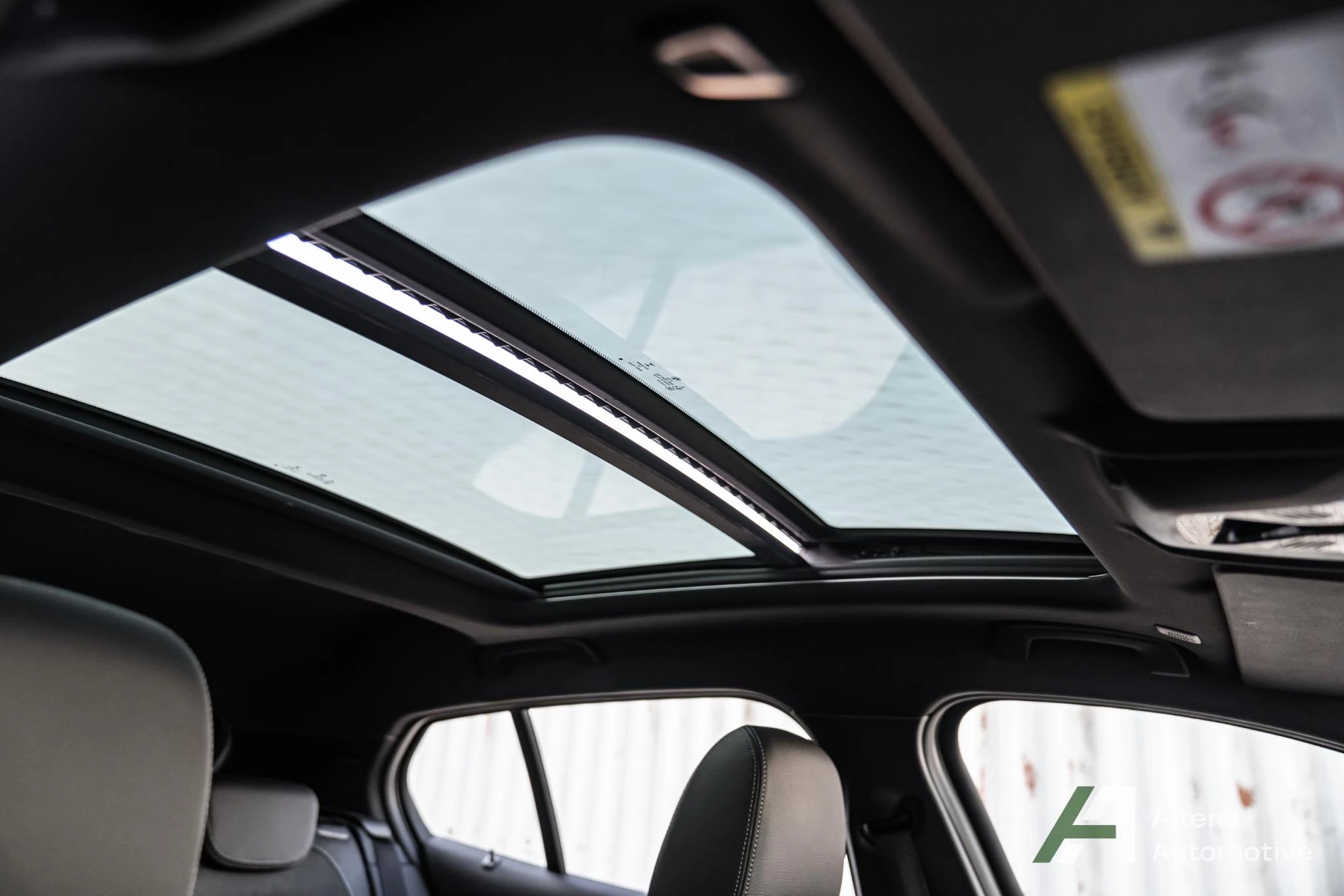 Binnenin zet dat gevoel zich direct voort. Het interieur is voorzien van zwart geperforeerd Dakota leder, sportstoelen met stoelverwarming en een panoramadak dat het interieur licht en ruimtelijk maakt. De afwerking met Illuminated Boston interieurlijsten en de antraciet hemel zorgen voor een moderne, sportieve sfeer.