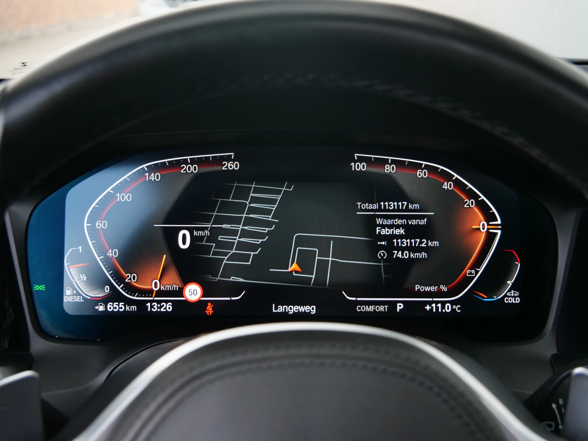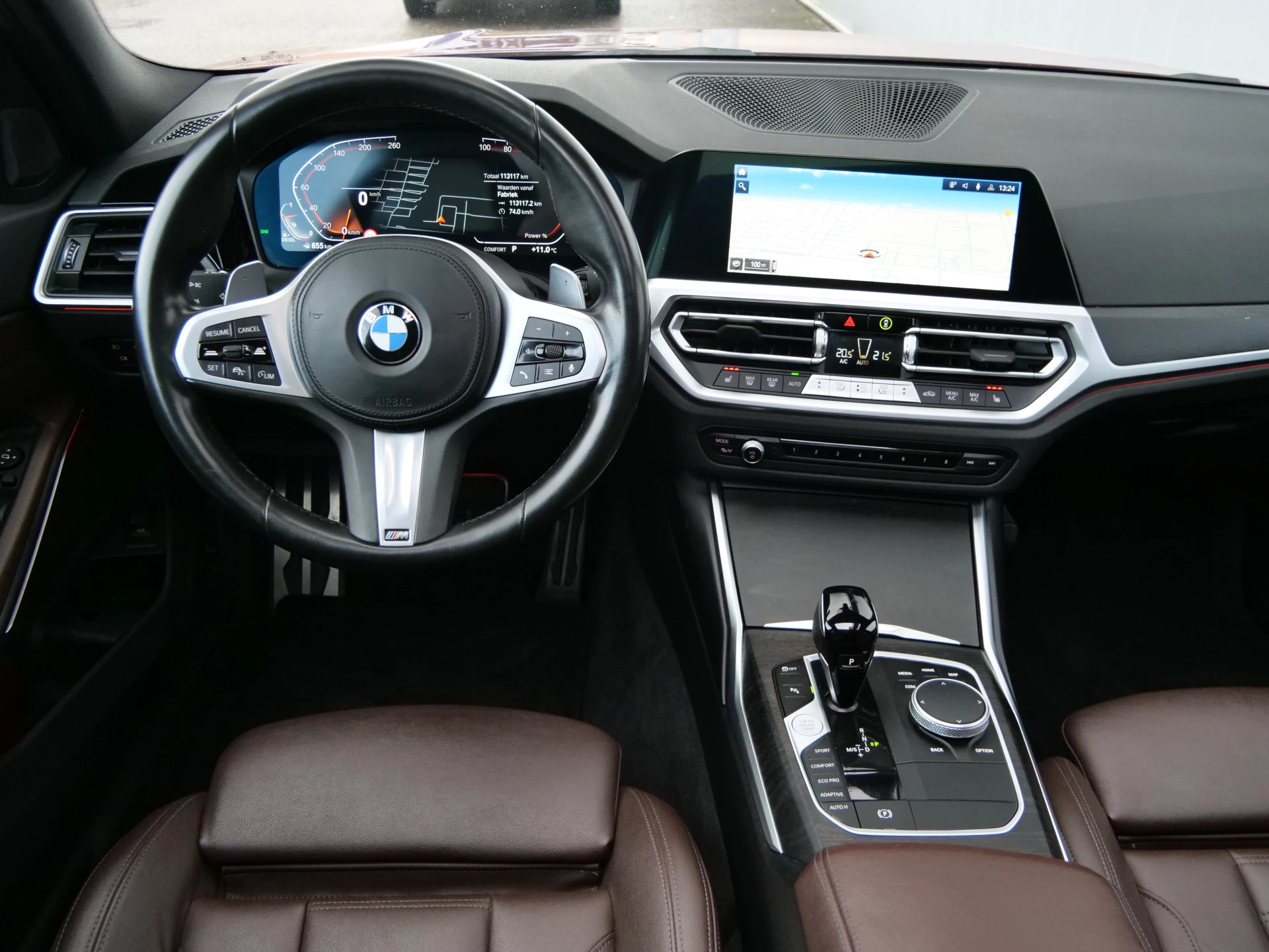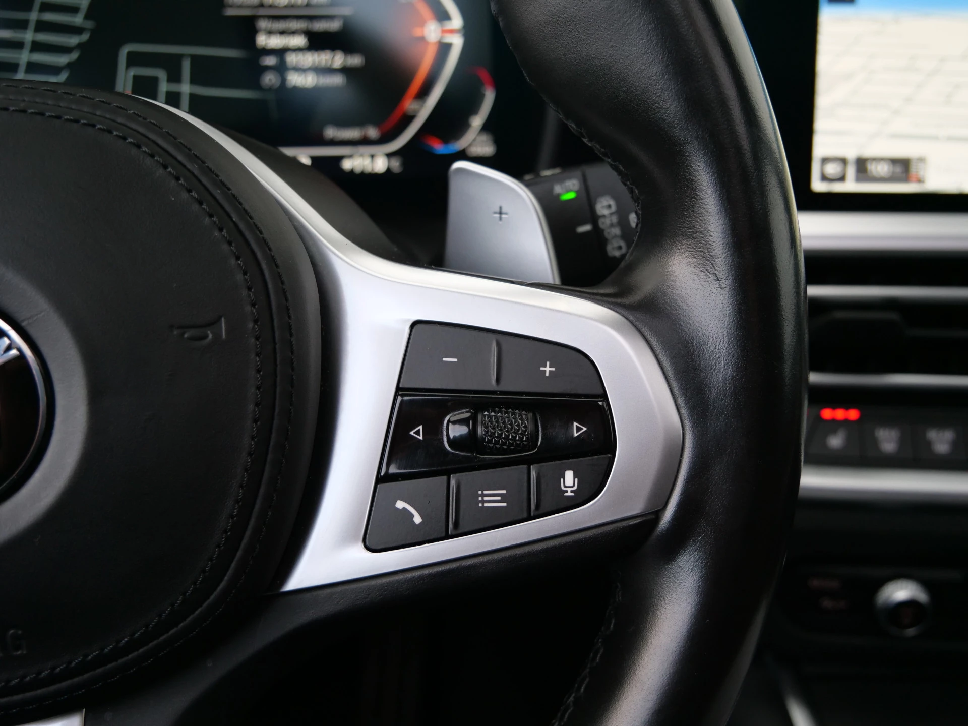 Het digitale dashboard geeft een nauwkeurig en makkelijk overzicht van alle belangrijke functies. Kom maar, kom maar, kom maar... ho! Prettig hoor, zo'n achteruitrijcamera. Met adaptive cruise control houdt de auto zelfstandig afstand tot uw voorligger. Een veiligheidsverhogende optie waarmee u comfortabel onderweg bent. Een veiligheidsverhogende optie is de ingebouwde spraakbediening. Terwijl u uw ogen op de weg houdt, bedient u de auto met uw stem. Een smartphone met internetverbinding legt eenvoudig overal contact met de auto. U kunt functies activeren en de conditie van de auto monitoren. De uitrusting van deze BMW is met navigatiesysteem met harde schijf, achteropkomend verkeer waarschuwing, electronic climate control, lederen sportstuur, DAB ontvangst en regensensor behoorlijk compleet.