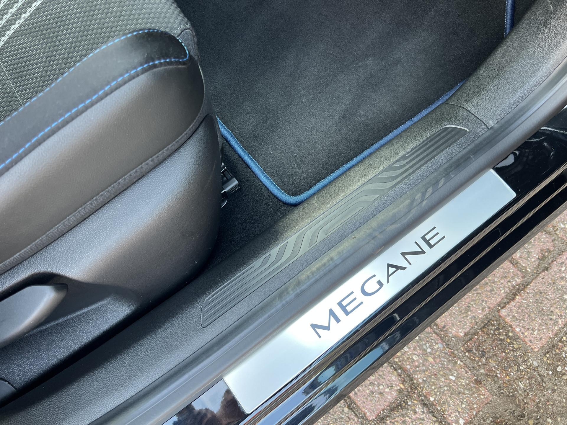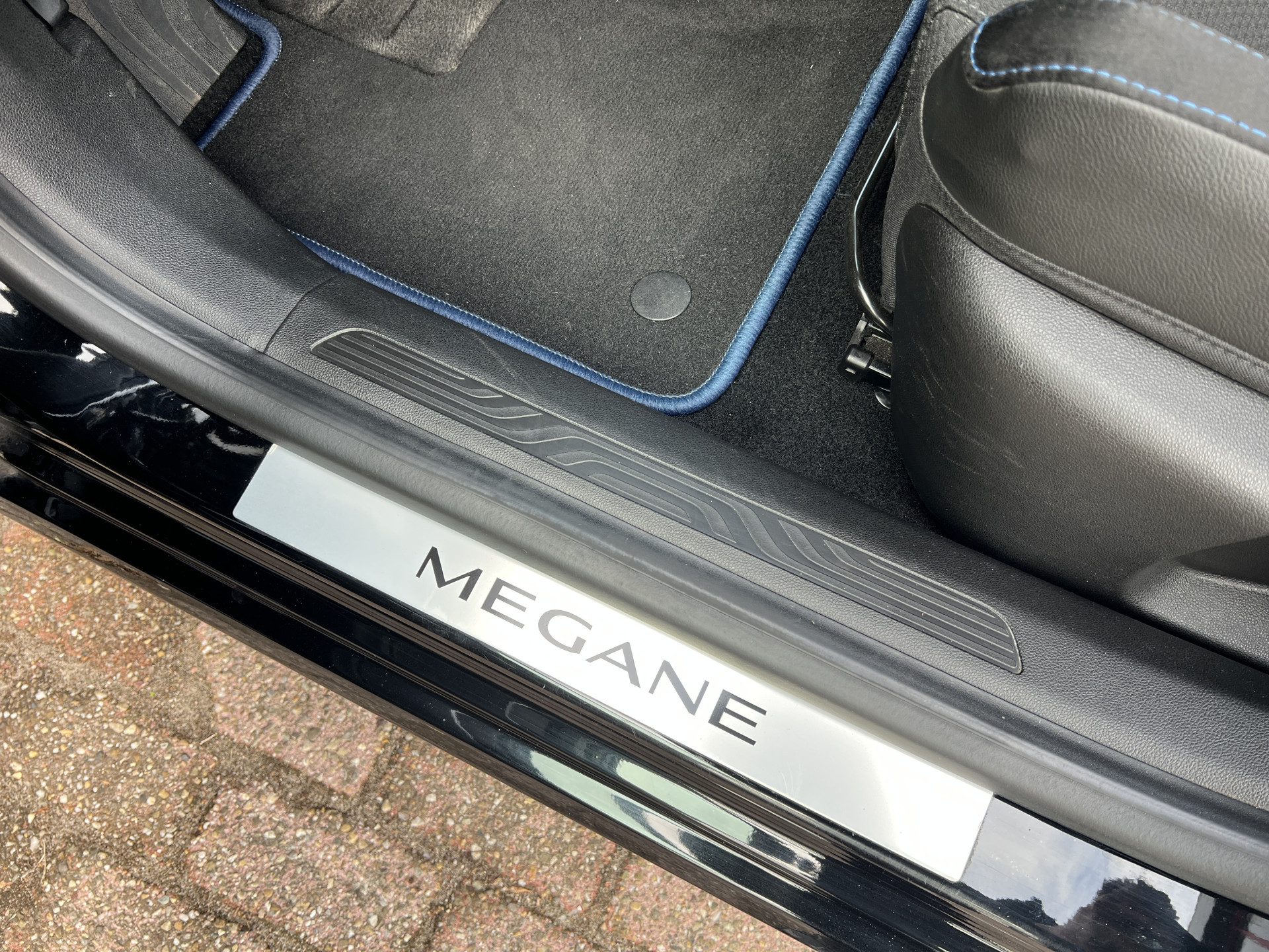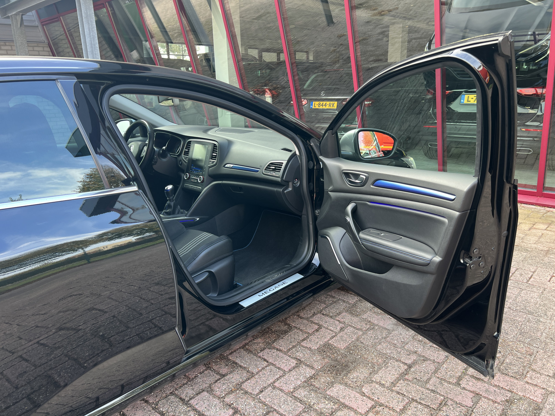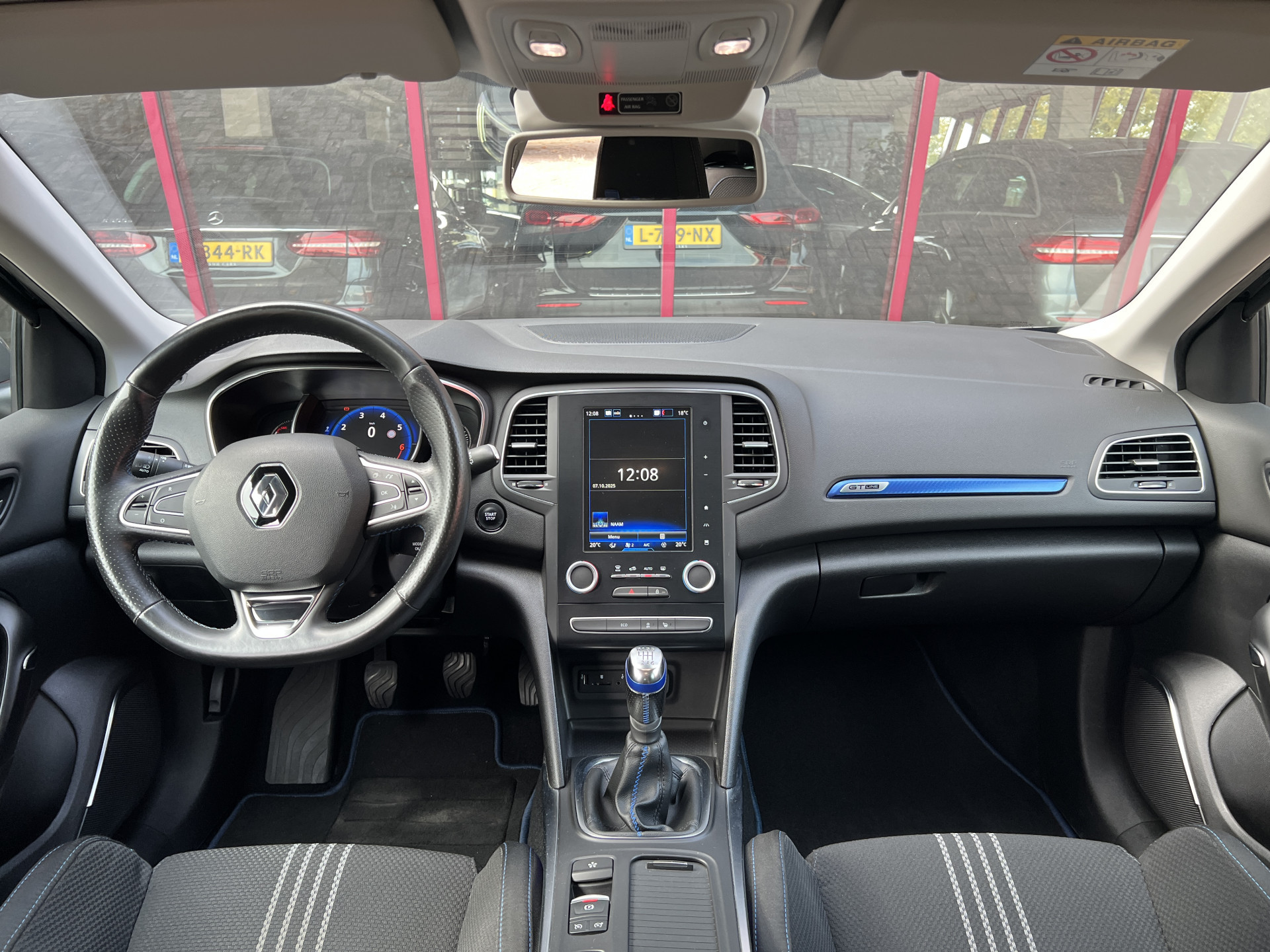 Super leuke Renault Megane GT-line! Sportieve, handgeschakelde 5 deurs hatchback uitgevoerd in een mooie combinatie van diepzwarte lak met een sportief interieur met blauwe accenten.