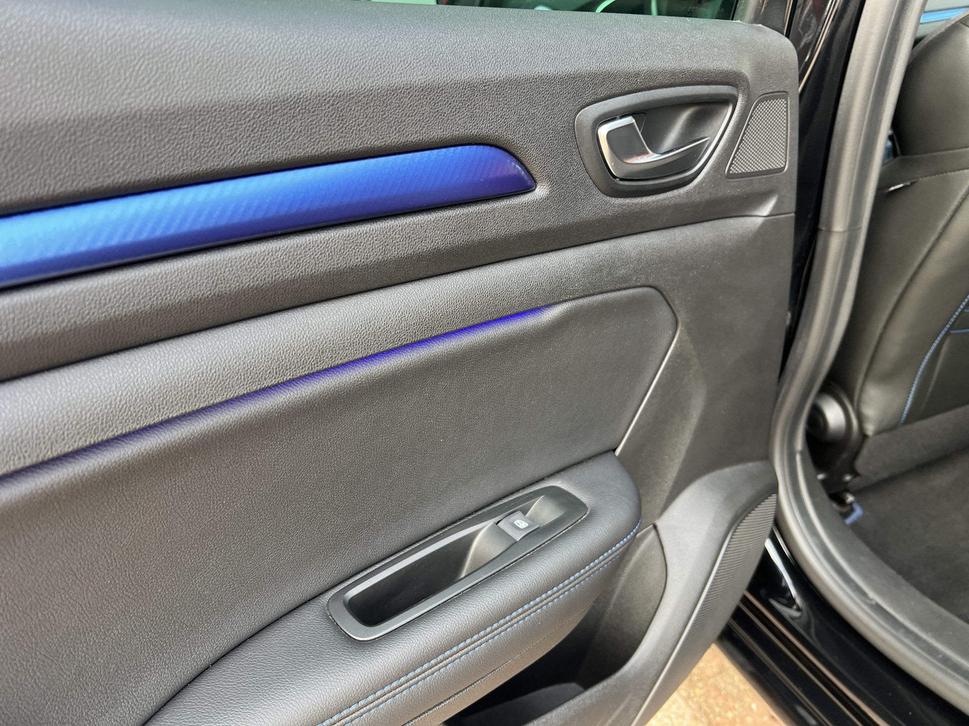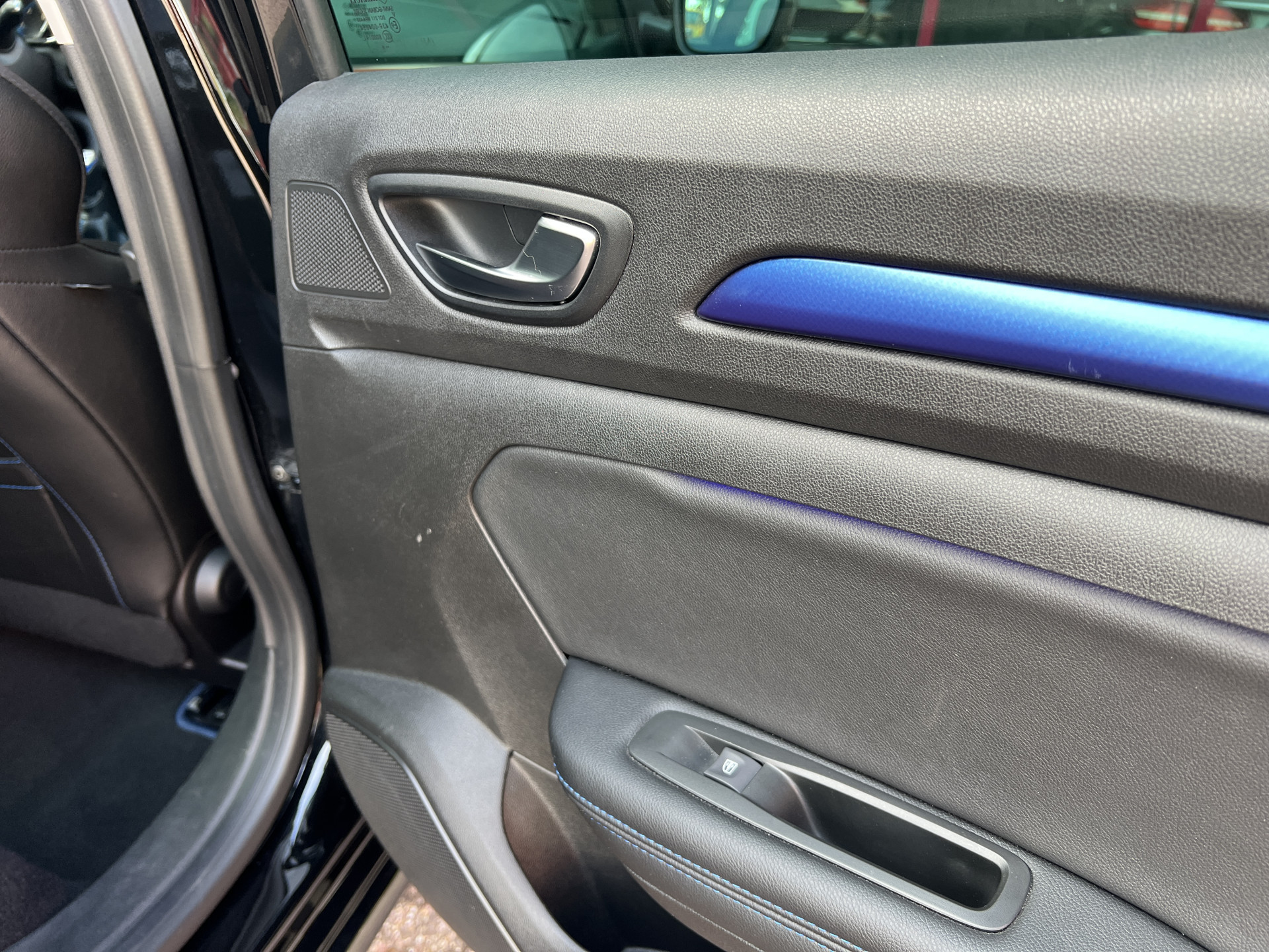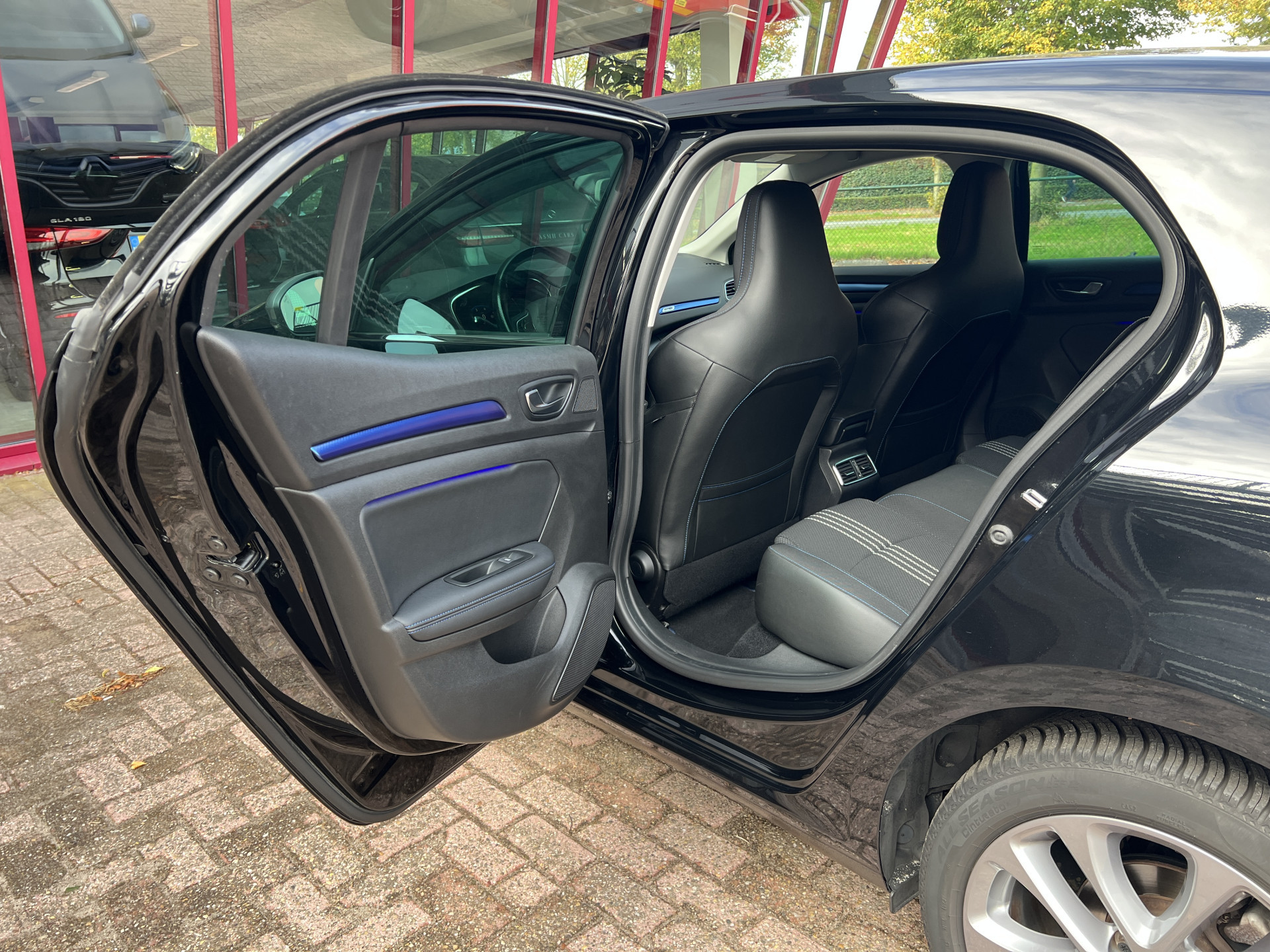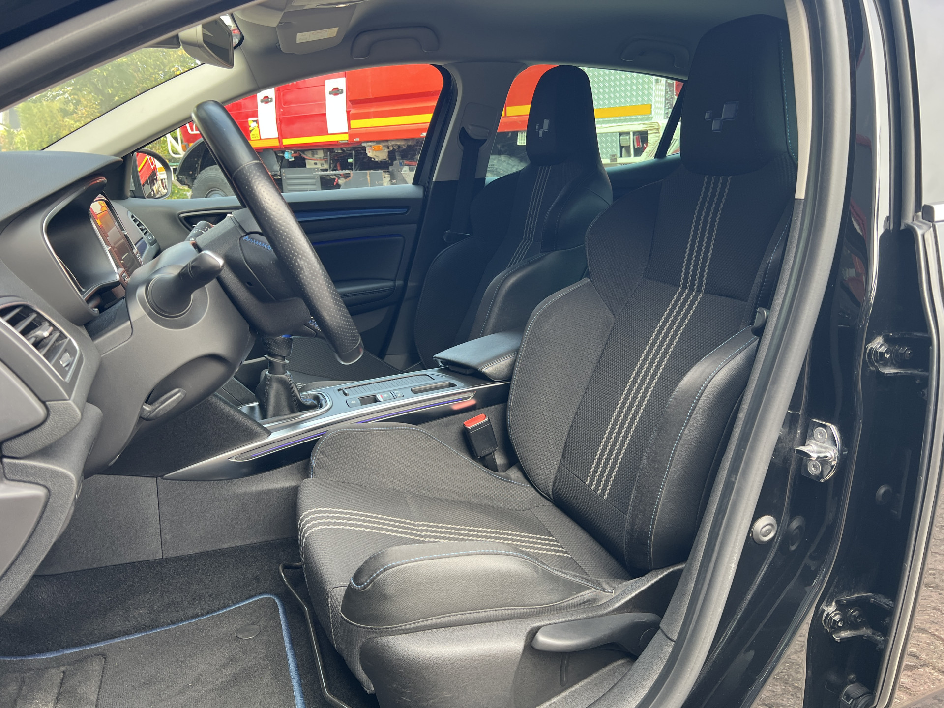 Super leuke Renault Megane GT-line! Sportieve, handgeschakelde 5 deurs hatchback uitgevoerd in een mooie combinatie van diepzwarte lak met een sportief interieur met blauwe accenten.