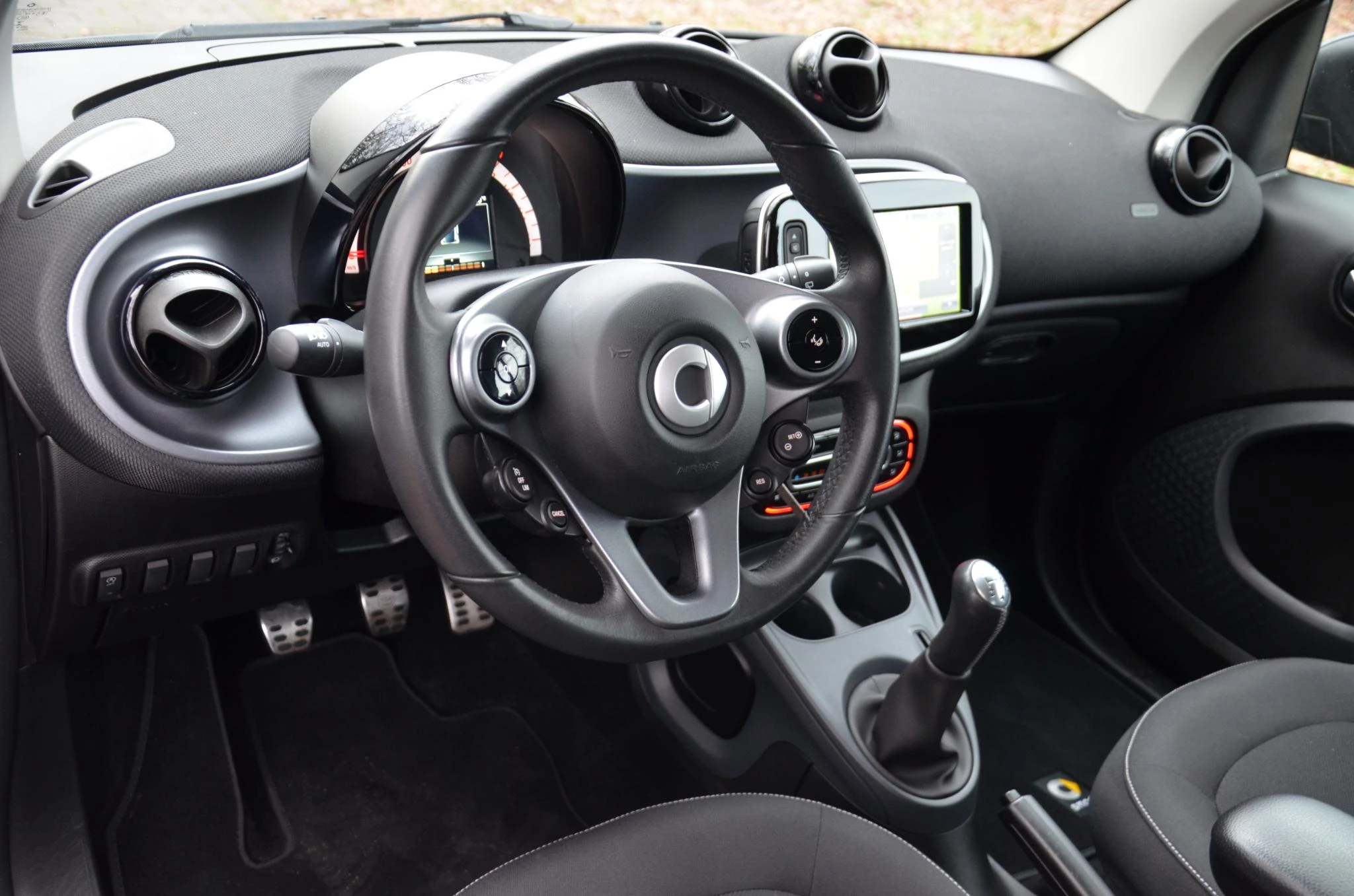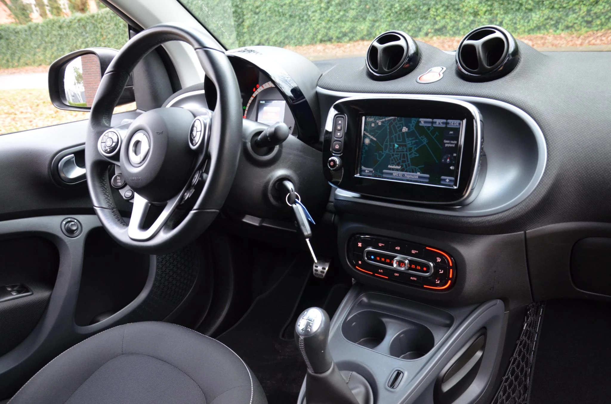 Naast handmatige bediening kunt u belangrijke functies met uw stem bedienen dankzij de ingebouwde spraakbediening. Het full map navigatiesysteem zorgt ervoor dat u snel en ontspannen op uw bestemming aankomt. De achteropkomend verkeer waarschuwing is een mooie veiligheidsoptie, die middels sensoren in de gaten houdt wat er onderweg achter u gebeurt. De automatische airconditioning zorgt onder alle omstandigheden voor een prettige temperatuur. Het hoort bij een intelligente auto als deze dat hij zelf in staat is om zijn omgeving in de gaten te houden. Dat doet deze smart met een automatisch inschakelbare verlichting en een regensensor. Natuurlijk behoren multifunctioneel lederen stuur, cruise control, buitentemperatuurmeter, centrale deurvergrendeling met afstandsbediening, boordcomputer en lederen versnellingspook ook tot de uitrusting van deze complete auto.
