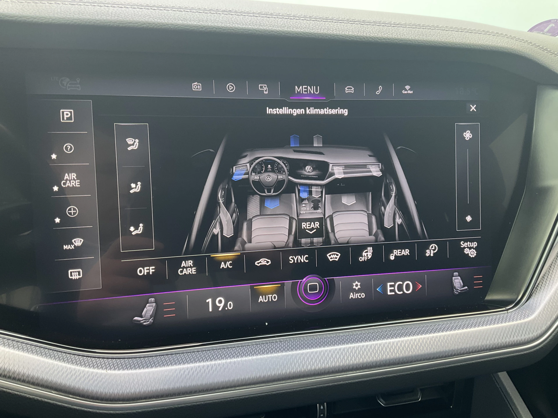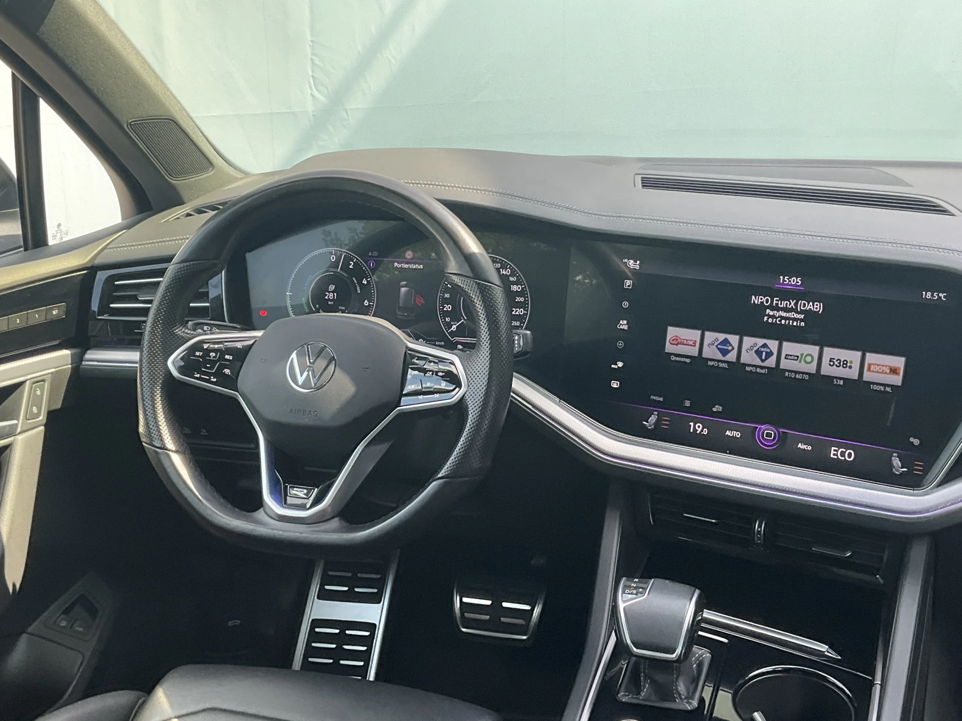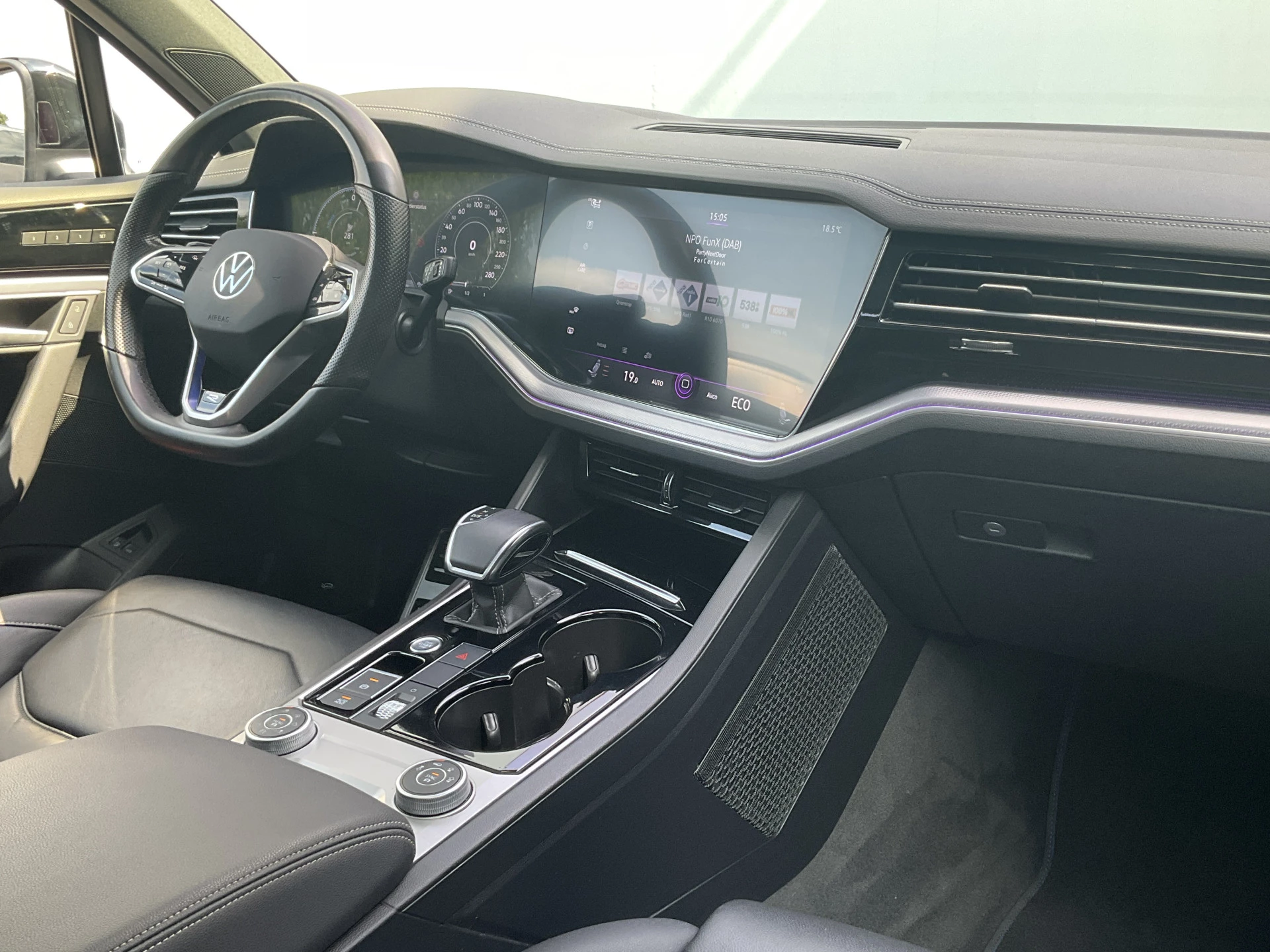 Adaptive cruise control houdt de ingestelde snelheid vast en houdt afstand tot het voertuig voor u. Praat tegen deze auto en de auto doet wat u wilt dankzij de ingebouwde spraakbediening. Deze Volkswagen Touareg is 'connected'. Belangrijke functies worden permanent gemeten en zijn uit te lezen via een speciale app, ook op afstand. Het navigatiesysteem met harde schijf is uw vertrouwde gids, waarheen de reis ook gaat. De kans op een kop-staart botsing wordt sterk gereduceerd door het systeem van achteropkomend verkeer waarschuwing. De Volkswagen is standaard voorzien van: electronic climate control, sportstuur met schakelpaddels, parkeersensoren voor en achter, regensensor, automatisch dimmende buitenspiegels en centrale deurvergrendeling met afstandsbediening.
