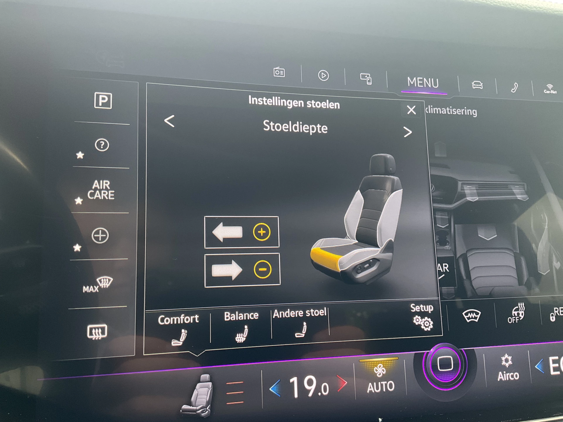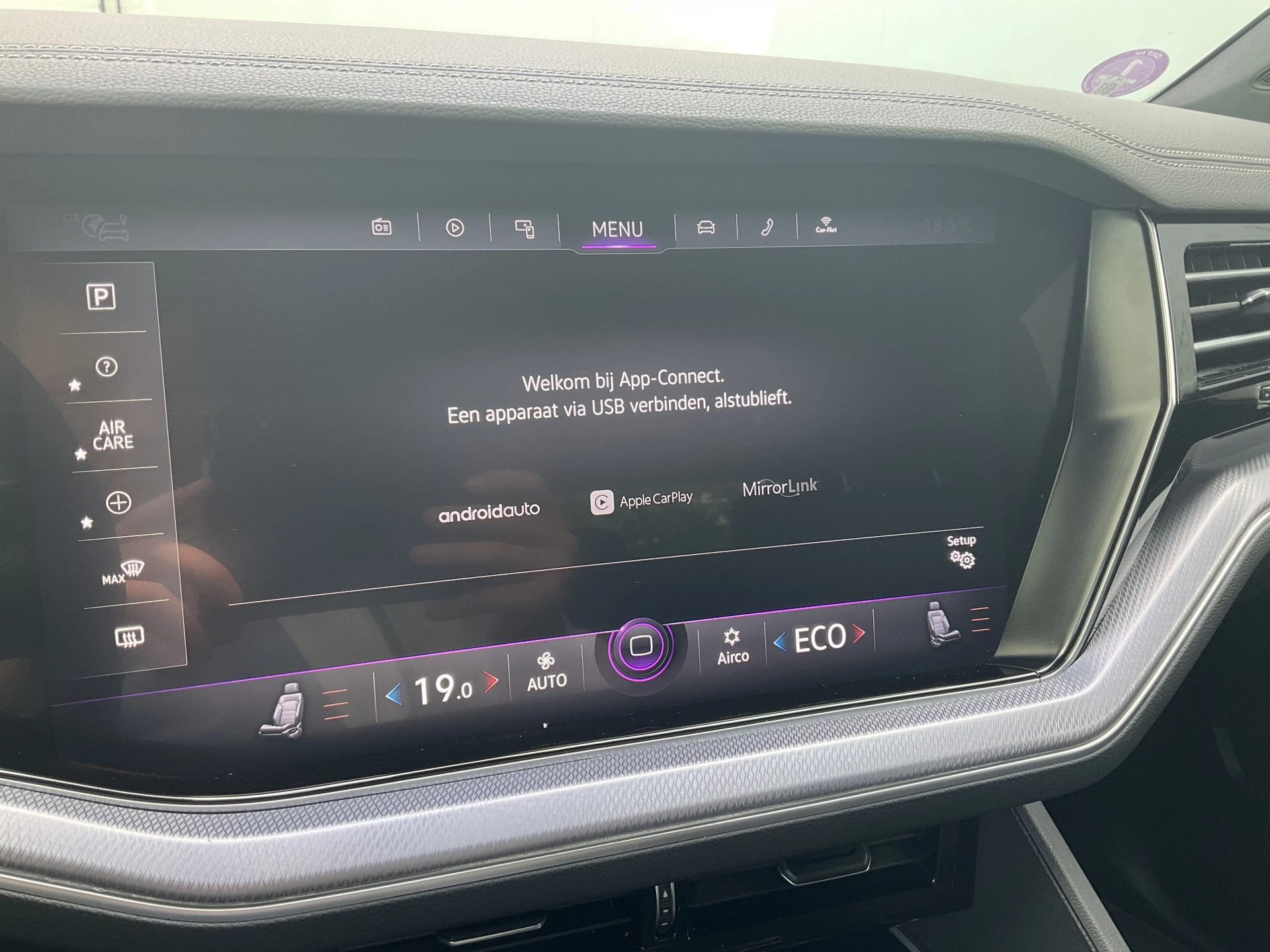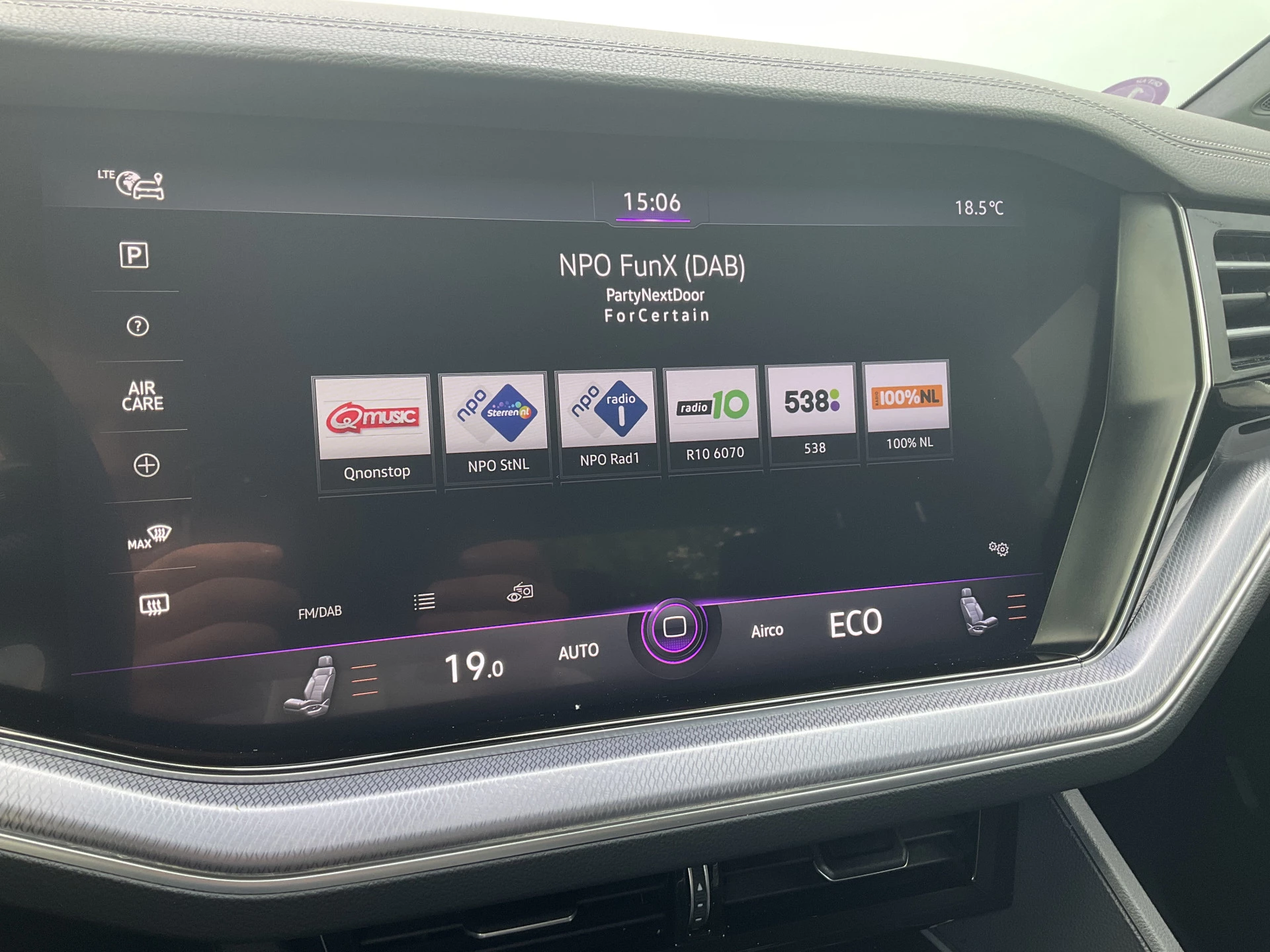 Adaptive cruise control houdt de ingestelde snelheid vast en houdt afstand tot het voertuig voor u. Praat tegen deze auto en de auto doet wat u wilt dankzij de ingebouwde spraakbediening. Deze Volkswagen Touareg is 'connected'. Belangrijke functies worden permanent gemeten en zijn uit te lezen via een speciale app, ook op afstand. Het navigatiesysteem met harde schijf is uw vertrouwde gids, waarheen de reis ook gaat. De kans op een kop-staart botsing wordt sterk gereduceerd door het systeem van achteropkomend verkeer waarschuwing. De Volkswagen is standaard voorzien van: electronic climate control, sportstuur met schakelpaddels, parkeersensoren voor en achter, regensensor, automatisch dimmende buitenspiegels en centrale deurvergrendeling met afstandsbediening.