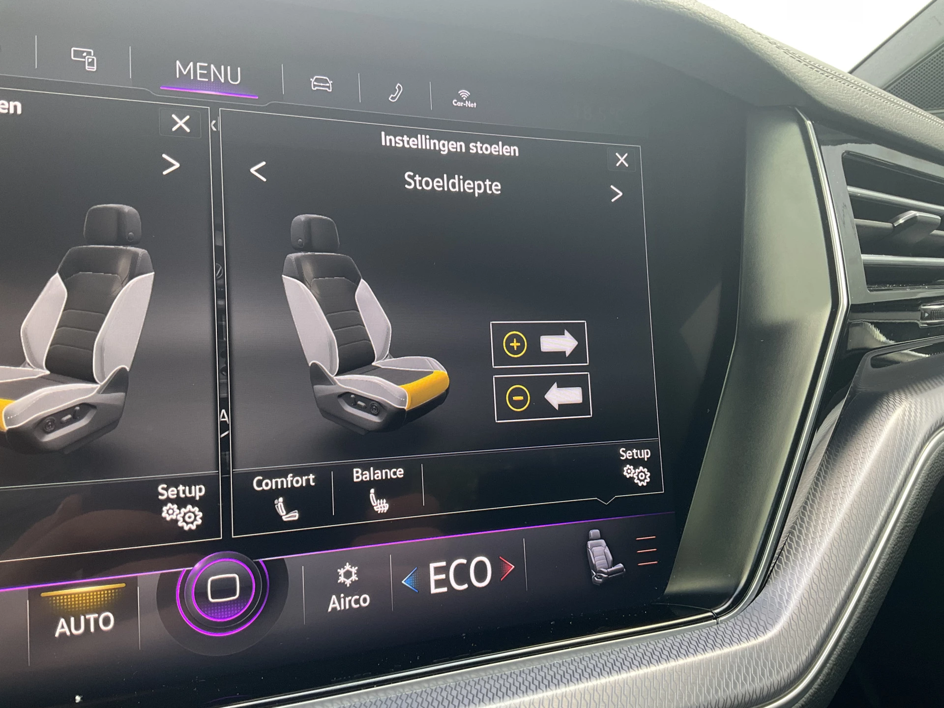 Zoals u mag verwachten van deze Volkswagen Touareg is hij uitgerust met een reeks aan actieve veiligheidssystemen. Wat deze auto ook kan, is lezen. Hij 'leest' voor u de verkeersborden tijdens de rit en attendeert u erop door ze op het dashboard te projecteren. Het Lane-keeping systeem doet precies wat nodig is: waarschuwen en corrigeren bij onbedoelde overschrijding van de rijstrooklijnen. Onbedoeld bumperkleven is er niet bij, dankzij de forward collision warning. Die waarschuwt direct als een botsrisico met uw voorligger dreigt. De veiligheid van deze auto wordt verder verhoogd door hill hold functie, vermoeidheidsherkenning, autonoom remsysteem en bandenspanningcontrolesysteem.