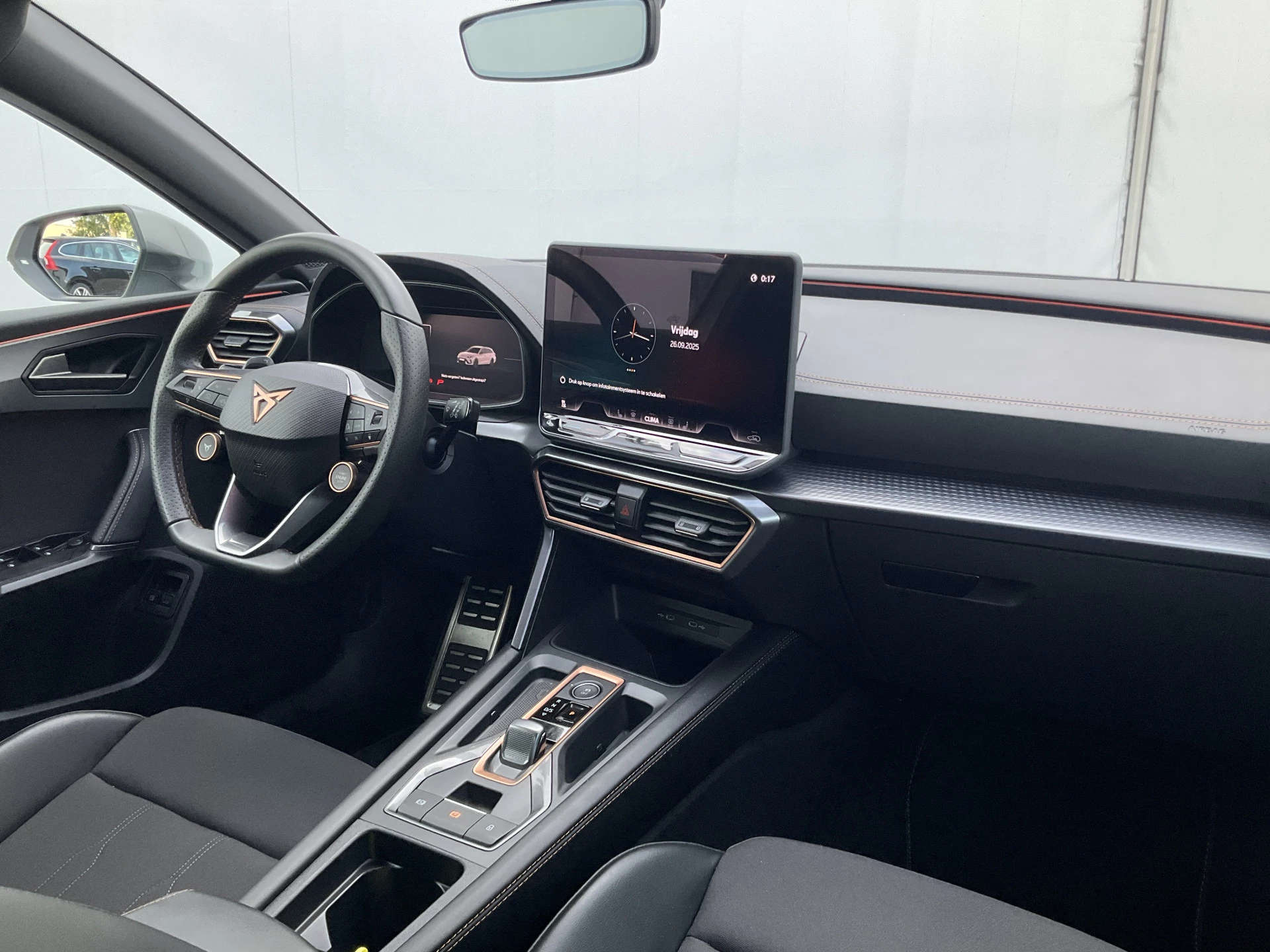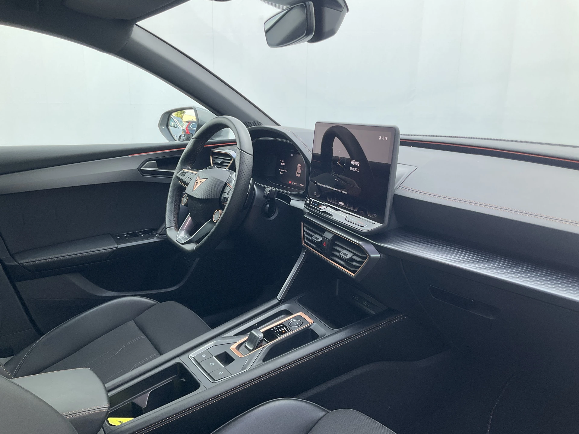 Het digitale dashboard vertelt u onderweg alles dat bijdraagt aan een veilige, efficiënte rit. Kinderfietsje niet gezien bij het inparkeren? Dat gebeurt u nooit meer. Daar zorgt de achteruitrijcamera wel voor! Adaptive cruise control houdt de ingestelde snelheid vast en houdt afstand tot het voertuig voor u. Bedient u de auto liever met uw stem? Dan is het goed om te weten dat spraakbediening aanwezig is. Vergeten af te sluiten? Bandenspanning onvoldoende? De speciale app geeft u direct een seintje met behulp van Connected Services. Ook is de CUPRA uitgerust met: WIFI-hotspot, electronic climate control, schakelpaddles aan het stuur, draadloos opladen, DAB ontvangst en regensensor.