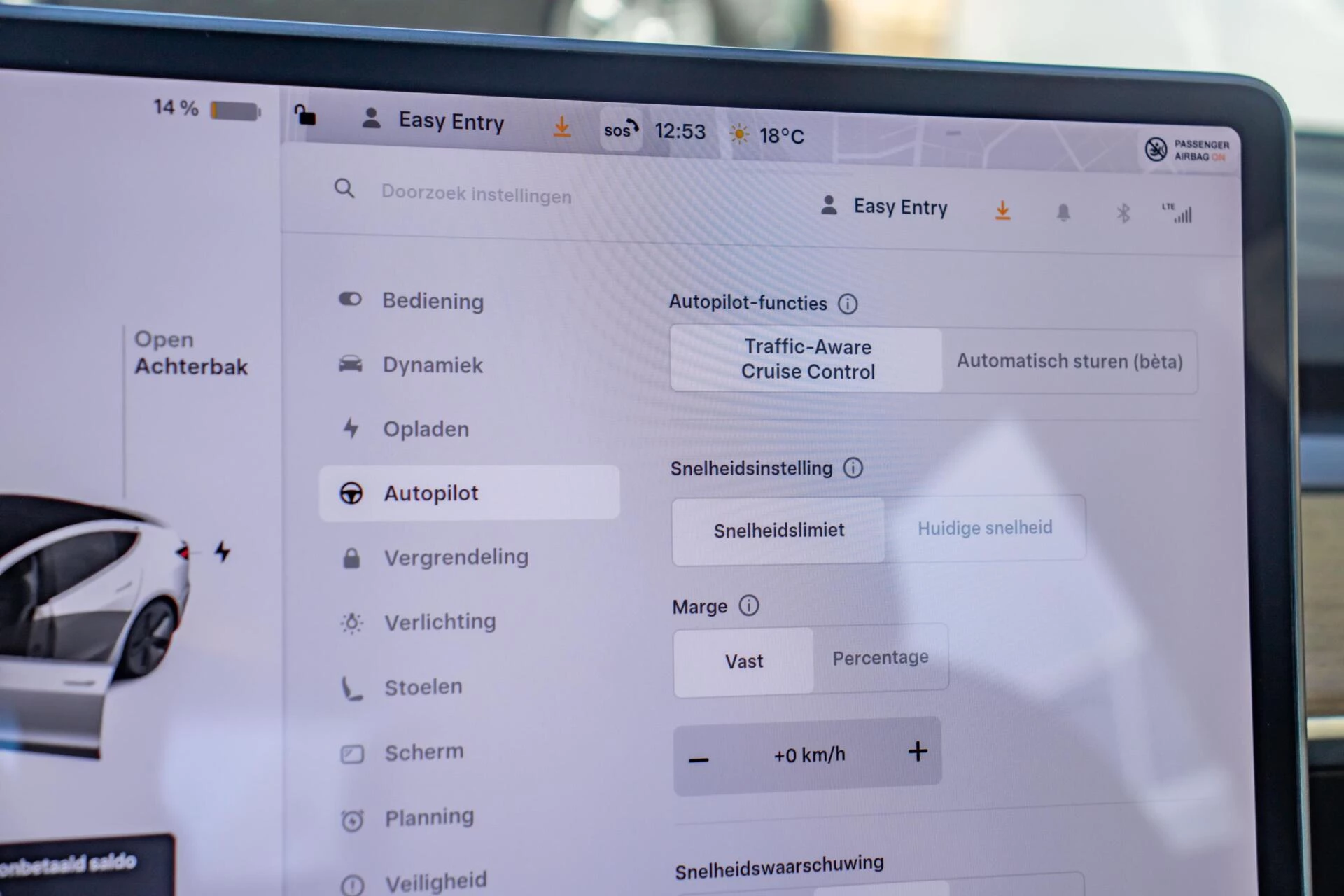 Dankzij Autopilot beschikt deze Model 3 over geavanceerde rijassistentie, wat zorgt voor extra comfort en ondersteuning tijdens langere ritten.