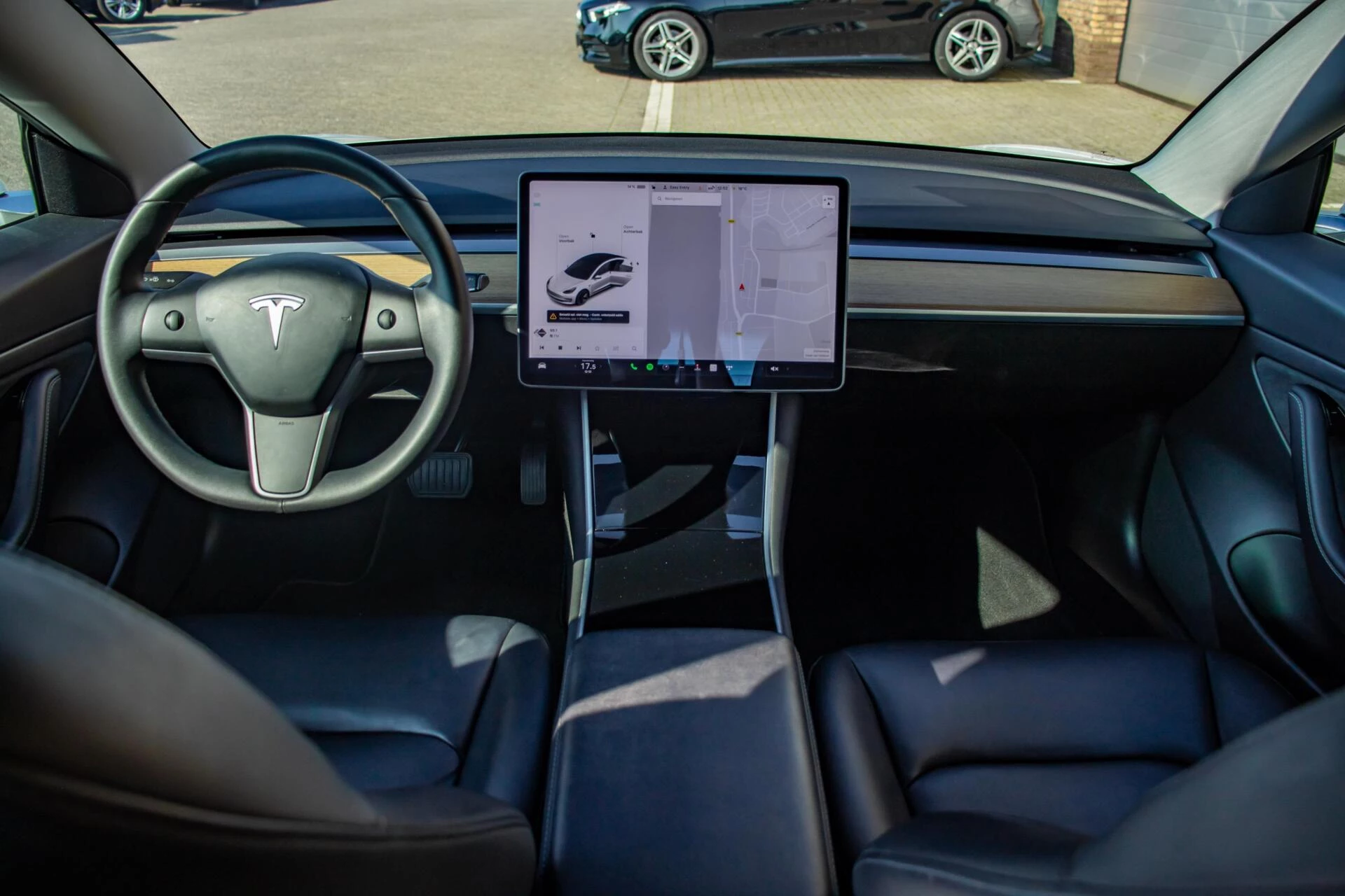 Binnenin valt direct het minimalistische ontwerp op, met het centrale touchscreen als middelpunt van alle bediening. Het lederen interieur zorgt voor een nette en verzorgde uitstraling. Stoelverwarming verhoogt het comfort tijdens koudere dagen, terwijl navigatie en adaptieve cruise control bijdragen aan ontspannen rijden. De parkeercamera maakt manoeuvreren eenvoudig en overzichtelijk.