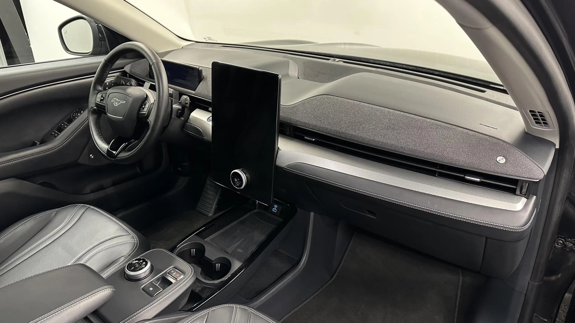 Het systeem controleert alle belangrijke functies en geeft die perfect weer via het digitale dashboard. Met de hulp van vier camera's, biedt de 360 graden camera op deze auto een panoramisch zicht, wat bijzonder nuttig is bij het parkeren en manoeuvreren. Met adaptive cruise control houdt de auto zelfstandig afstand tot uw voorligger. Een veiligheidsverhogende optie waarmee u comfortabel onderweg bent. Spraaksturing luistert naar uw stem en bedient de belangrijkste voertuigfuncties. Deze Ford Mustang Mach-E is voorzien van remote services. Via uw smartphone bedient u diverse functies ook op afstand en krijgt u informatie over de status van uw auto. Natuurlijk behoren full map navigatiesysteem, automatische airconditioning, draadloos opladen, DAB ontvangst, regensensor en keyless entry ook tot de uitrusting van deze complete auto.