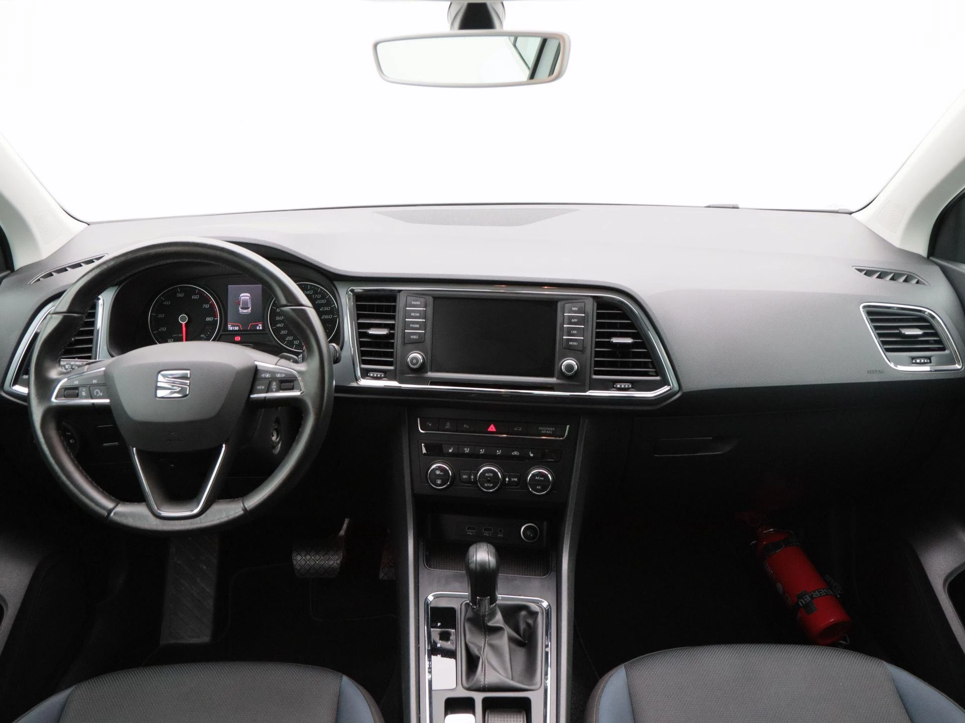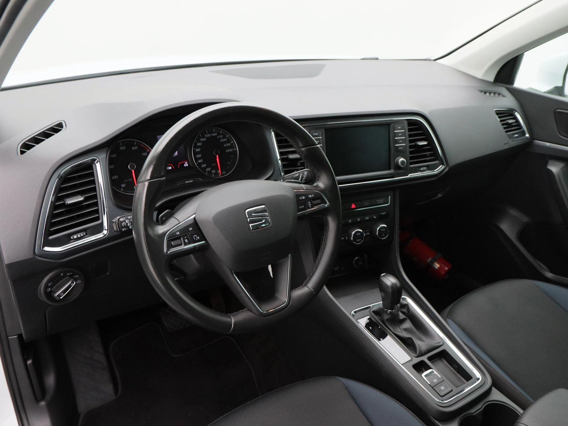 De Ateca biedt een prettige hoge zit en een overzichtelijke rijpositie. Het interieur is praktisch en verzorgd, met moderne voorzieningen die het dagelijks gebruik extra comfortabel maken. Zo is de auto uitgerust met een navigatiesysteem en Apple CarPlay, waardoor je altijd verbonden bent en eenvoudig je route of muziek bedient via het centrale scherm.