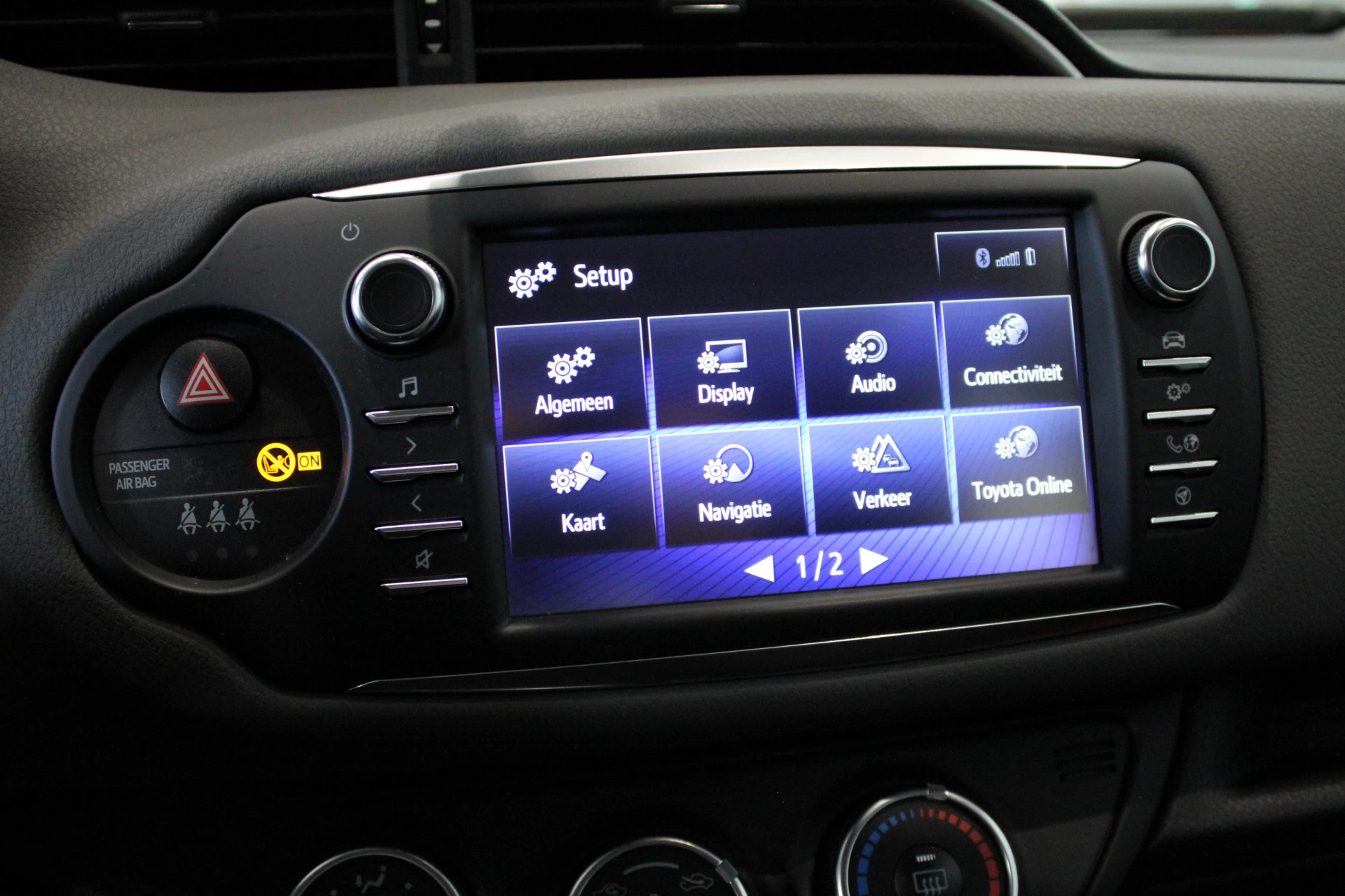 Zoals u mag verwachten van deze Toyota Yaris is hij uitgerust met een reeks aan actieve veiligheidssystemen. Onderweg fungeert de verkeersbord-detectie als het ware als uw bijrijder en attendeert u op de verkeersborden langs de weg. Het systeem van forward collision warning, of in gewoon Nederlands ‘botswaarschuwing′, treedt in werking als de sensor te weinig afstand signaleert met een voor- of tegenligger. Met het Lane-keeping systeem gaat u nooit onbedoeld over de streep.