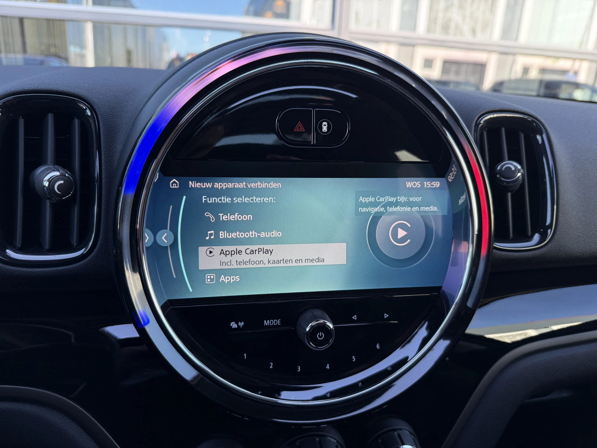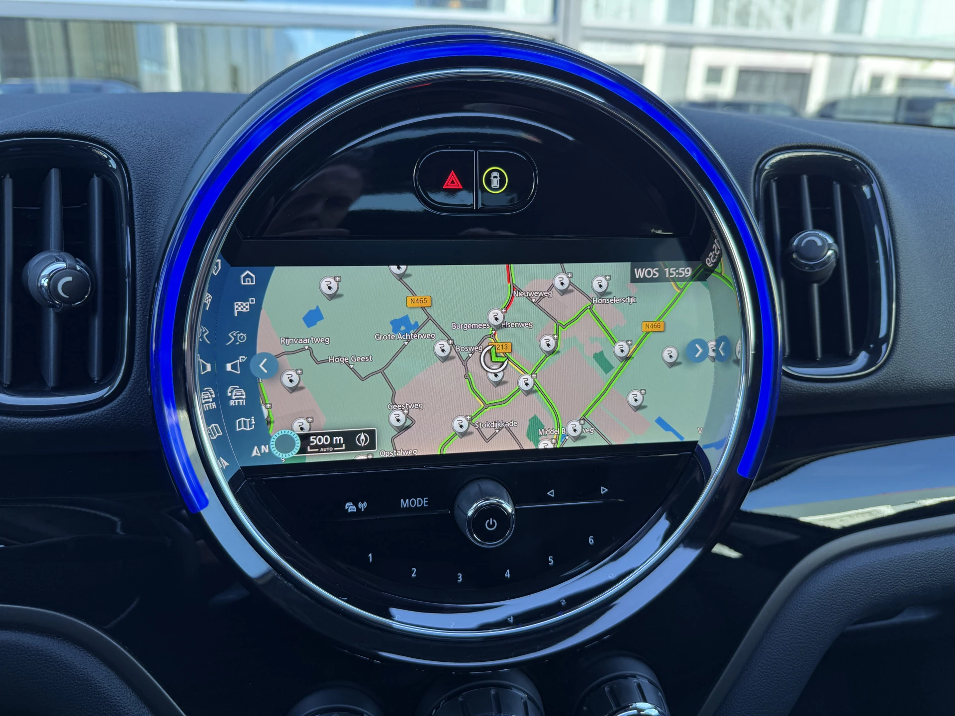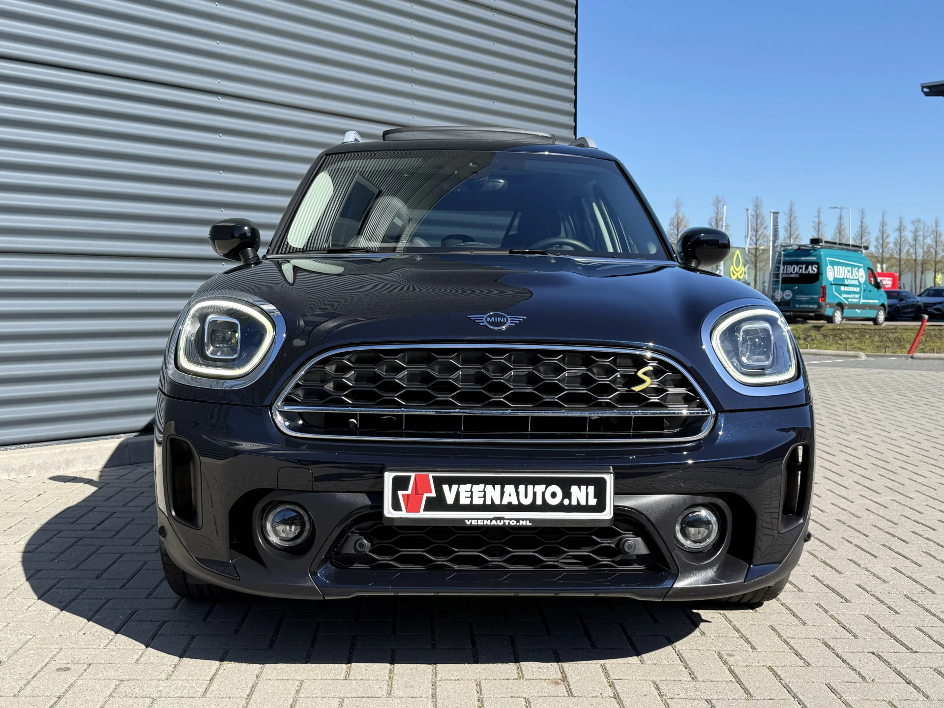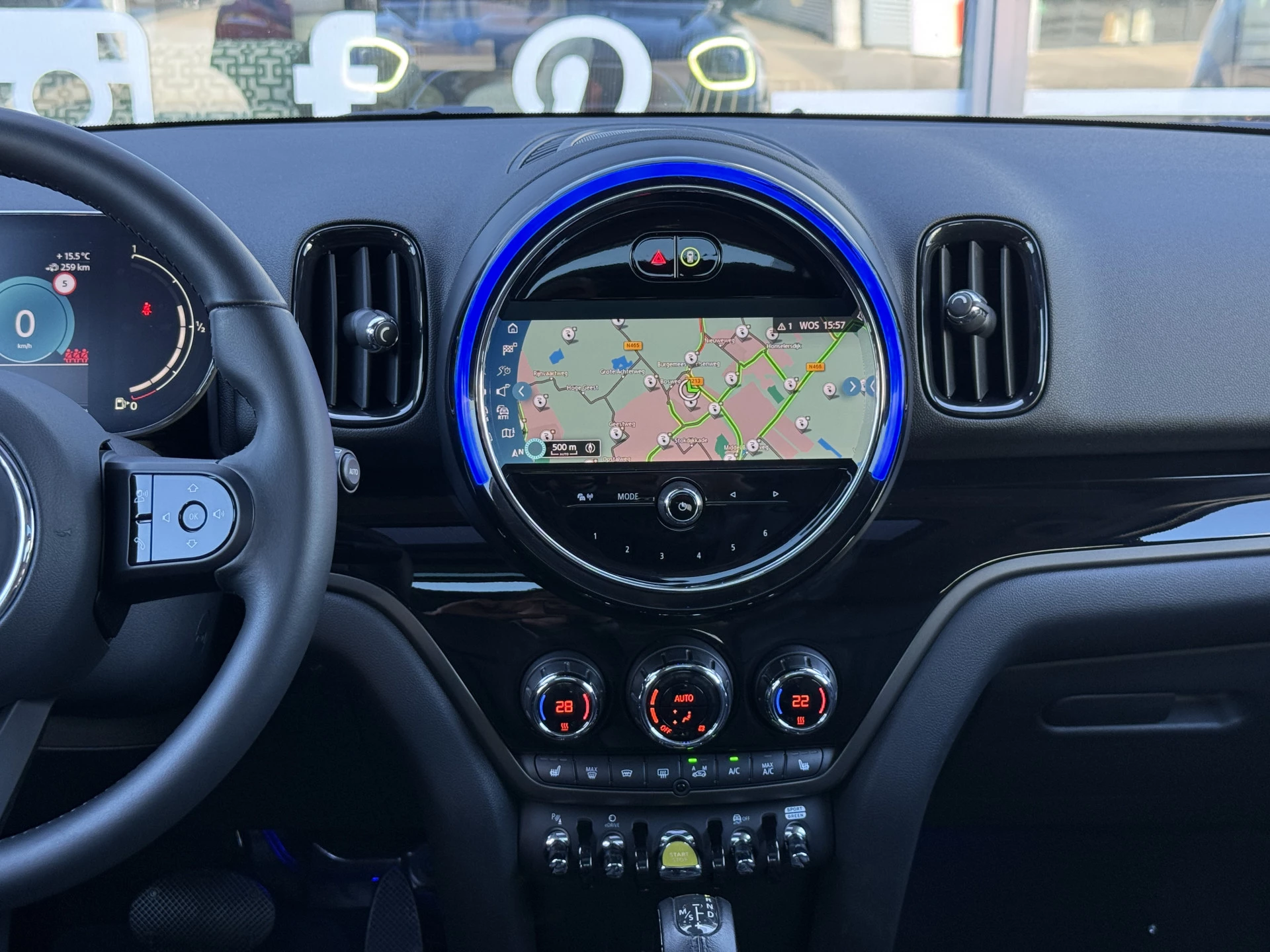 Schitterende Mini Countryman Cooper SE ALL4 Plug in Hybrid in Enigmatic Black (diep donker blauw) metallic met hoogglans zwarte licht metalen velgen. Deze Mini is van 12-2022 en bijzonder compleet uitgerust met onder andere de volgende opties: Panorama dak, elektrische bedienbare voorstoelen met memory, lederen bekleding, Harman Kardon Audio, LED interieur sfeer verlichtingspakket, Apple Carplay, achteruitrijcamera, navigatie, virtuele cockpit, adaptieve cruise control, keyless entry, parkeersensoren voor + achter met parkeer assistent, etc..