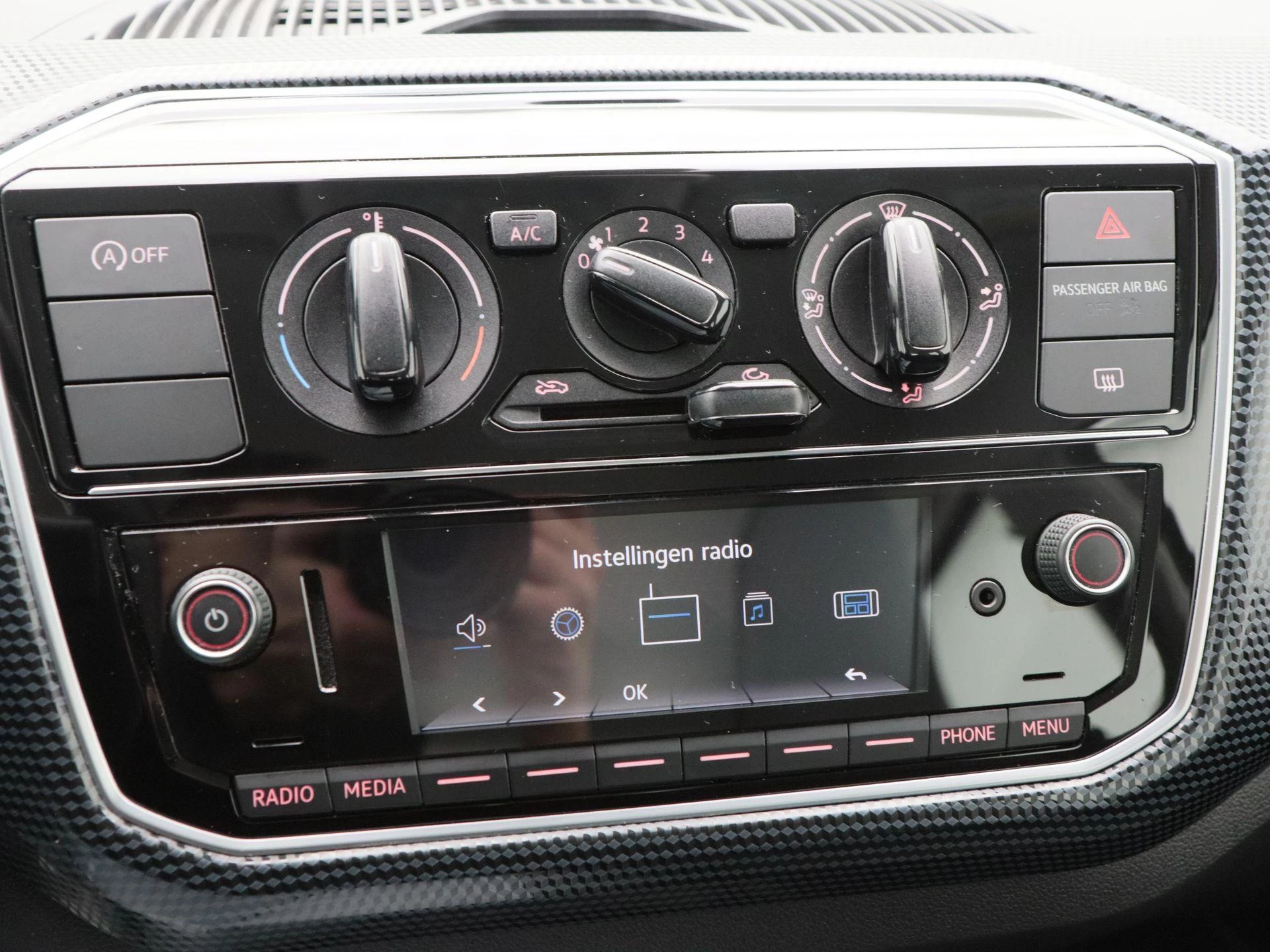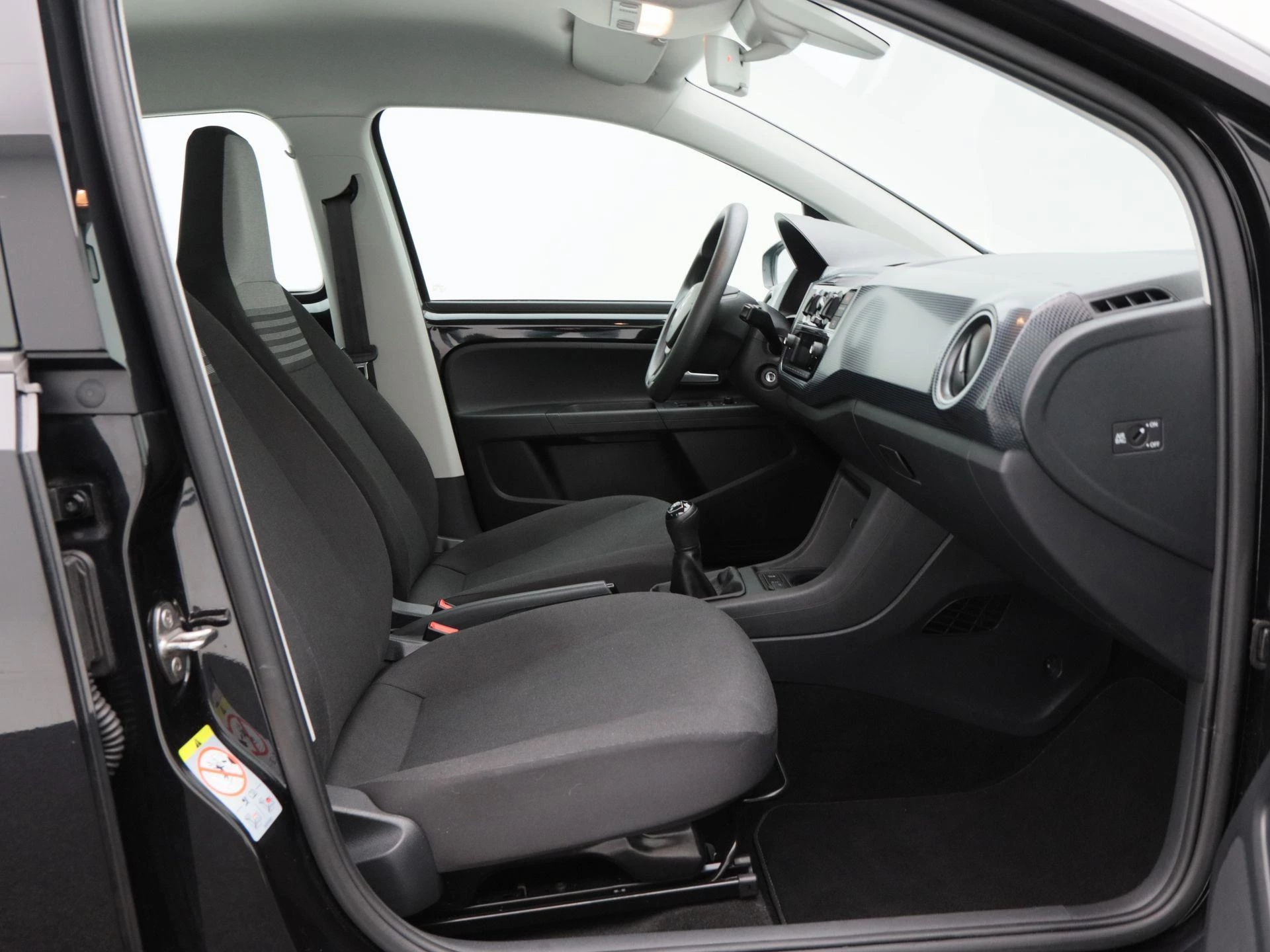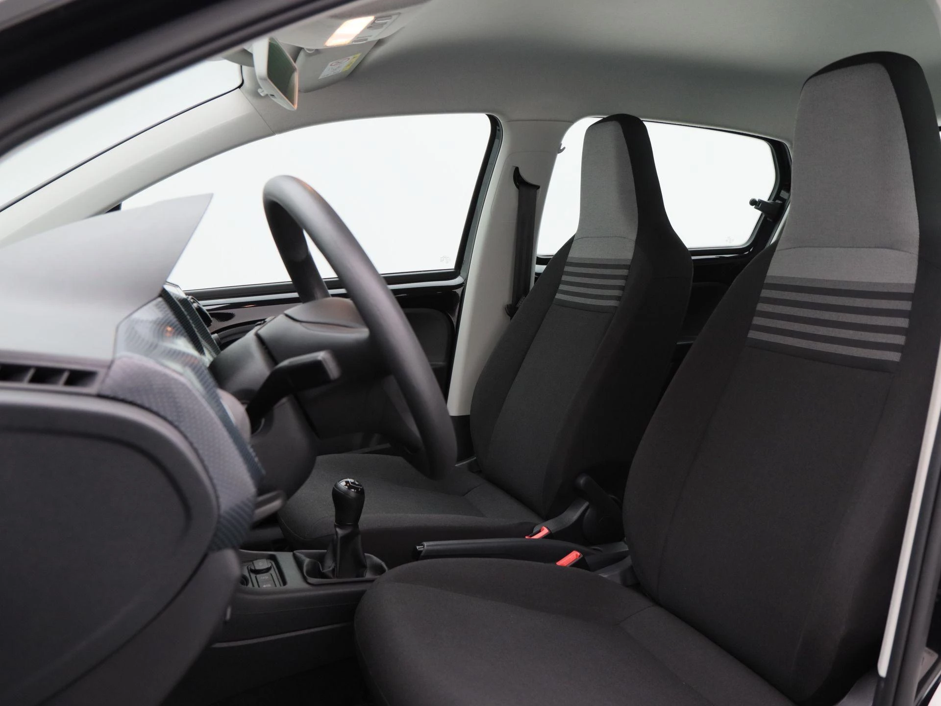 Binnenin biedt het interieur een nette en functionele indeling met zwarte stoffen bekleding. Airconditioning zorgt voor een aangenaam interieurklimaat, terwijl Bluetooth het mogelijk maakt om handsfree te bellen en eenvoudig muziek te streamen tijdens het rijden.