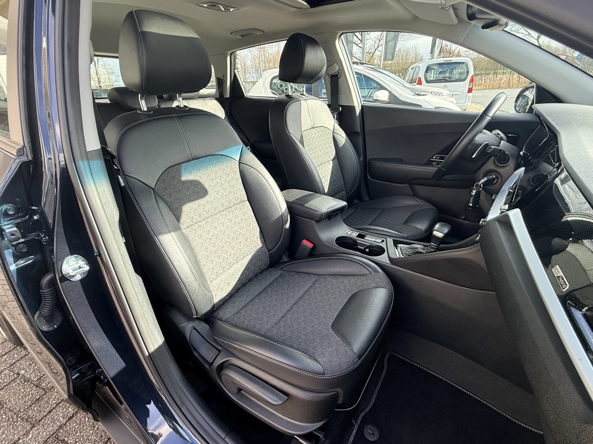 Pragmatisch en veilig als deze auto is, beschikt hij over diverse veiligheidssystemen. In het instrumentarium laat de verkeersborddetectie de actuele verkeersborden zien. Het Lane-keeping systeem registreert permanent of u binnen de lijnen van de rijstrook blijft; dwaalt u onbedoeld af, dan waarschuwt het systeem en corrigeert de koers. In deze Kia vinden we verder een dodehoekdetectie, hill hold functie, autonoom remsysteem en bandenspanningcontrolesysteem.