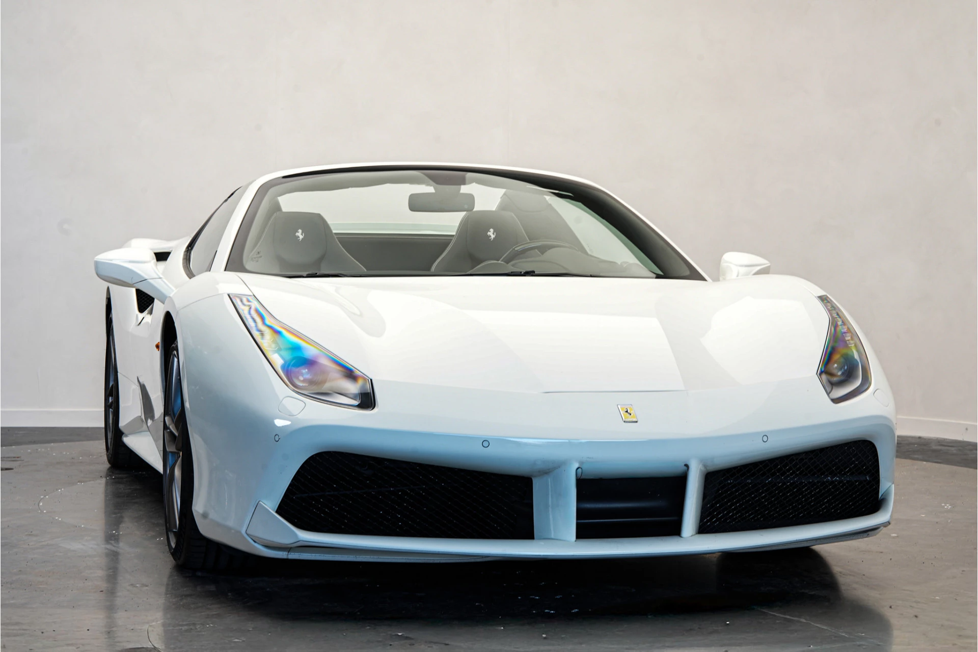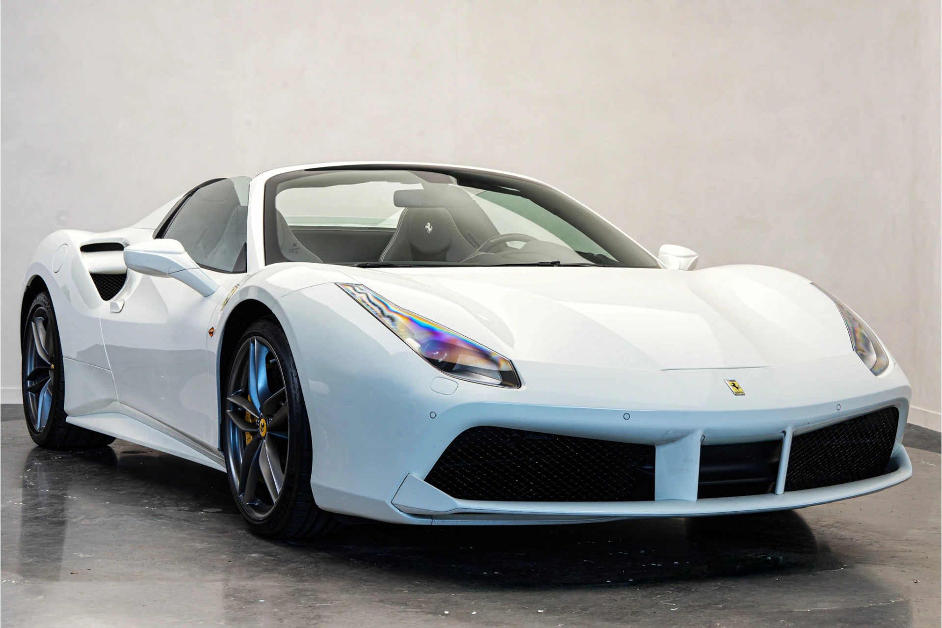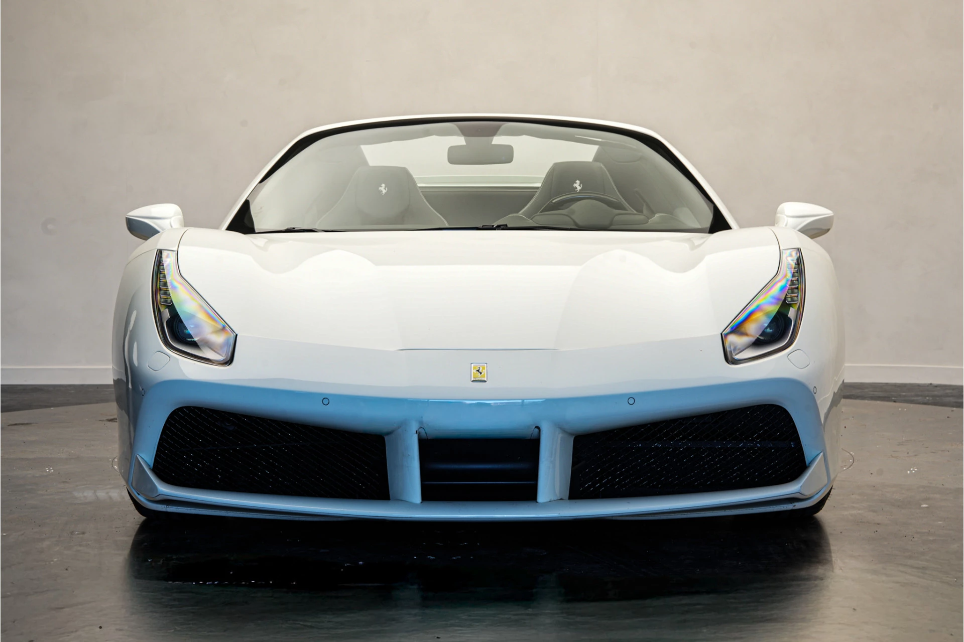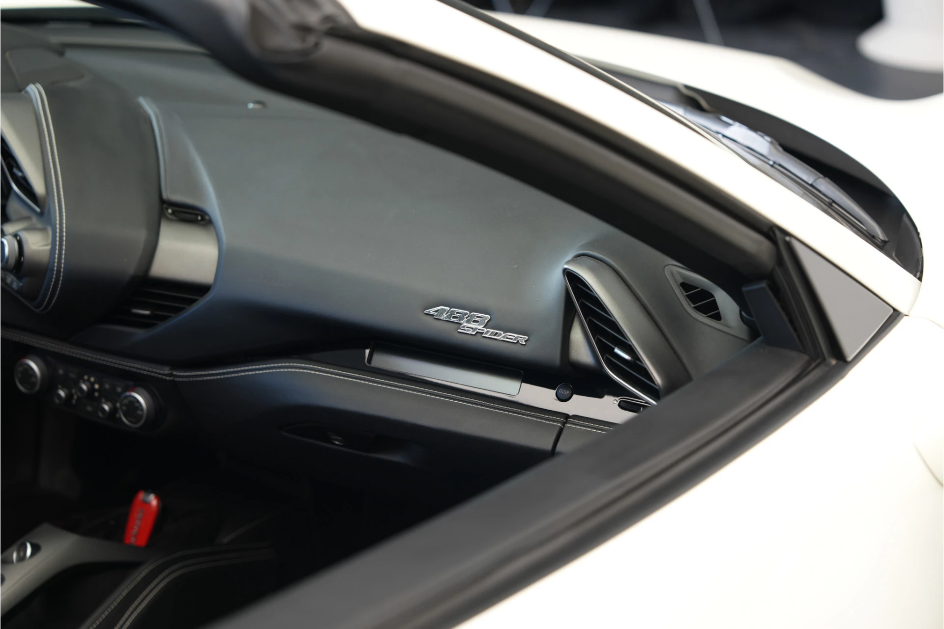Nieuw in onze voorraad deze prachtige Ferrari 488 Spider van 2018! Van buiten uitgevoerd in Bianco Avus met 20" Forged Dark Painted wielen. Van binnen met de Daytona Racing Seats in zwart leder met wit stiksel én de 'Cavallino' in de hoofdsteun.