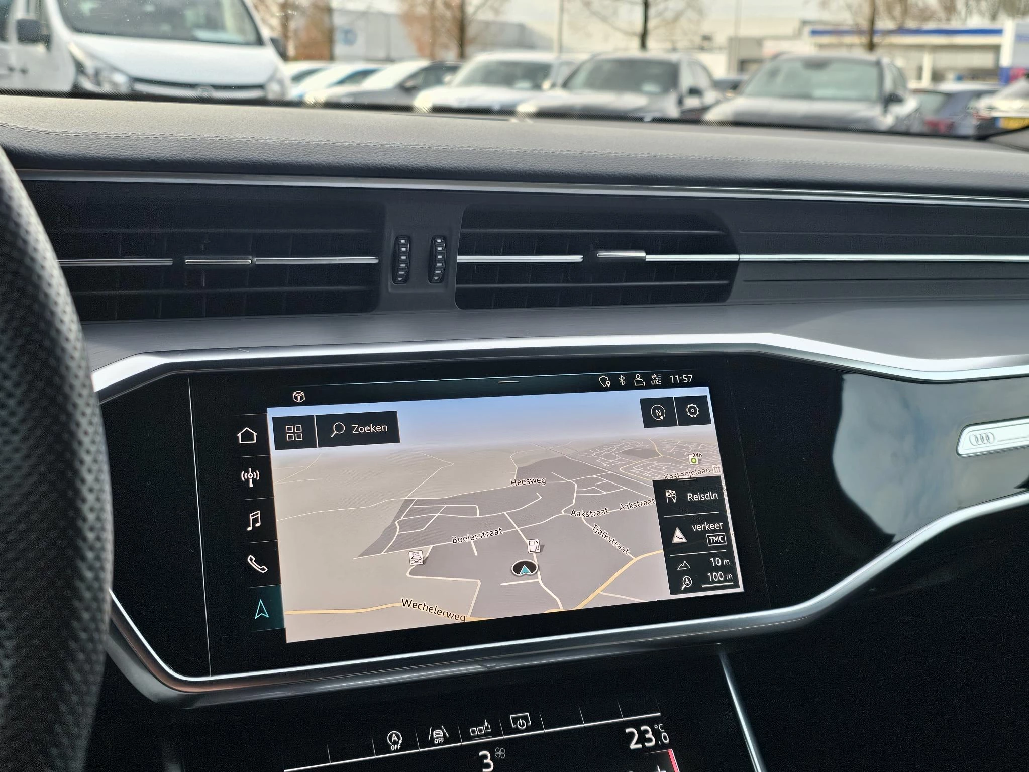 Dankzij het digitale dashboard bent u van alles op de hoogte. Connected Services zorgen ervoor dat de belangrijkste functies en data van de auto altijd en overal te checken zijn. Gewoon via de app op de smartphone. In deze auto beschikt u natuurlijk over een full map navigatiesysteem. Het audio-installatiesysteem biedt glasheldere geluidskwaliteit, u bedient dit veilig via het stuurwiel. De automatische airconditioning zorgt voor een behaaglijk klimaat in de auto. Superstrak parkeren wordt een eitje dankzij de parkeersensoren. Met sportstuur met schakelpaddels, regensensor, cruise control, automatisch dimmende buitenspiegels, centrale deurvergrendeling met afstandsbediening en boordcomputer is deze Audi helemaal compleet.