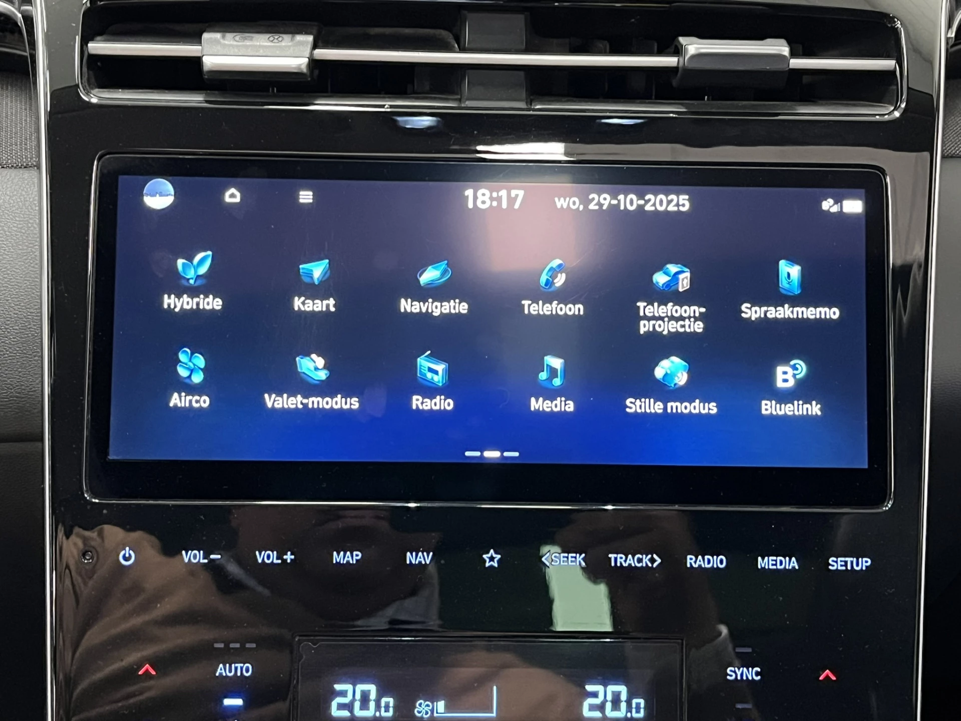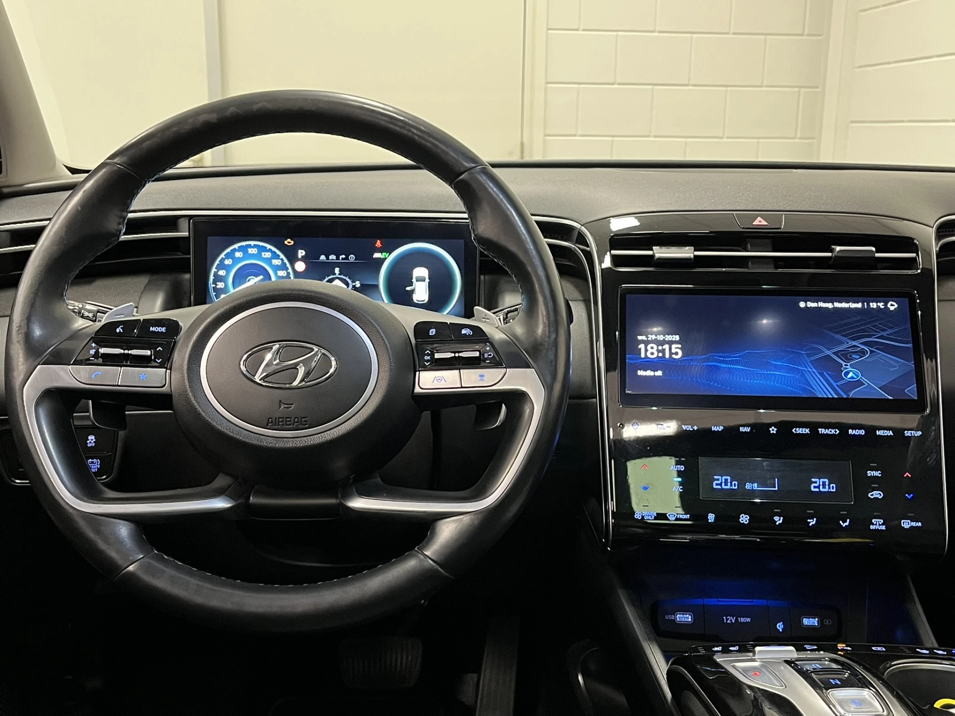 In één oogopslag zijn alle vitale functies afleesbaar dankzij het digitale dashboard. De kracht van de 360 graden camera op deze auto resulteert in optimale zichtbaarheid en veiligheid. Adaptive cruise control houdt de ingestelde snelheid vast en houdt afstand tot het voertuig voor je. Rijden-stilstaan, rijden-stilstaan. Niks is irritanter en vermoeiender dan filerijden. Daar heeft deze Hyundai Tucson een oplossing voor: de file assistent, die met radarmeting permanent het tempo aanpast op de voorligger. Zelfs als die stopt. Connected Services zorgen ervoor dat de belangrijkste functies en data van de auto altijd en overal te checken zijn. Gewoon via de app op de smartphone. Deze Hyundai is voorzien van dashboard met spraakbediening, premium audiosysteem, full map navigatiesysteem, kruisend verkeer detectie, automatische airconditioning en sportstuur met schakelpaddels.
