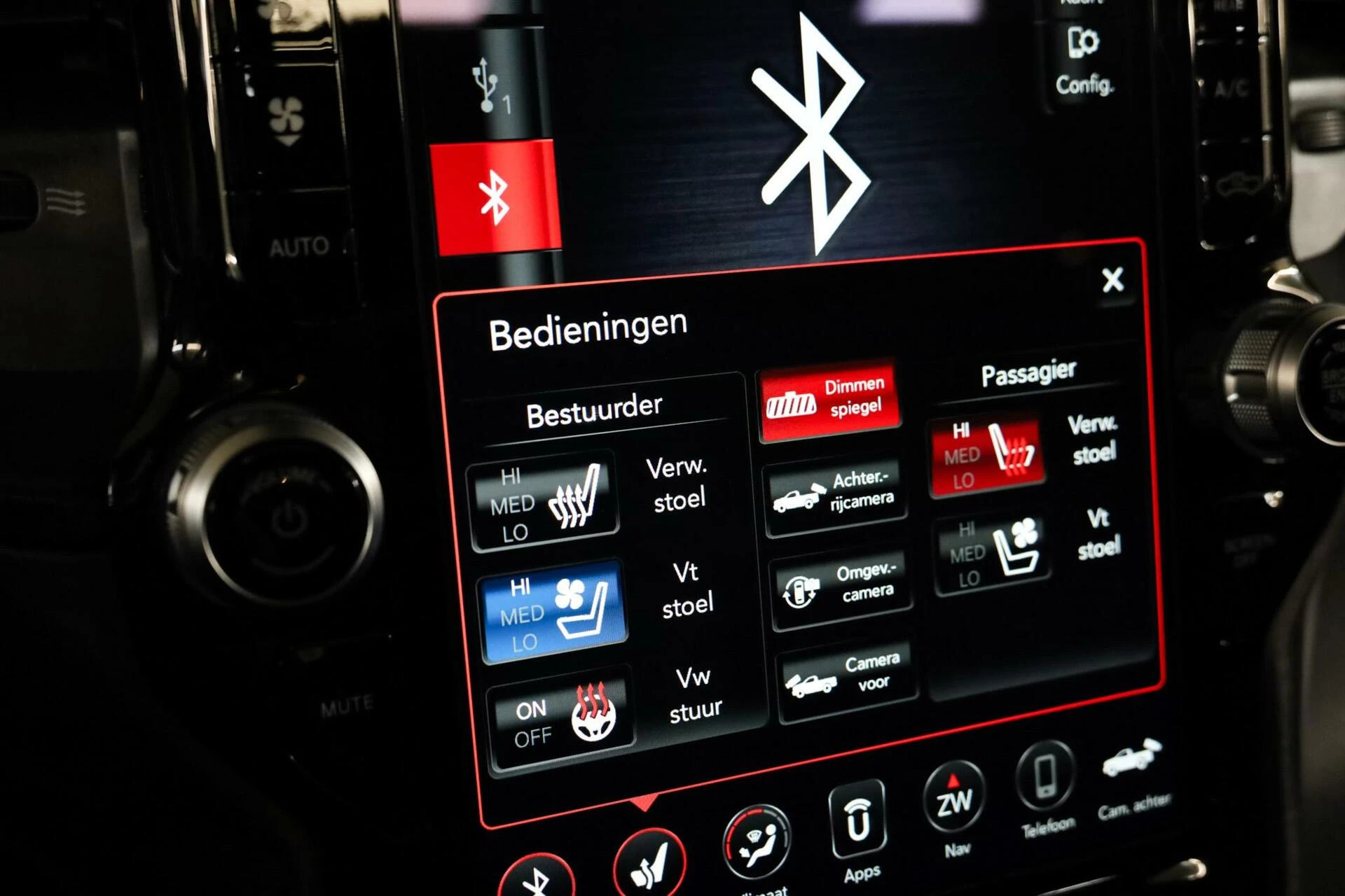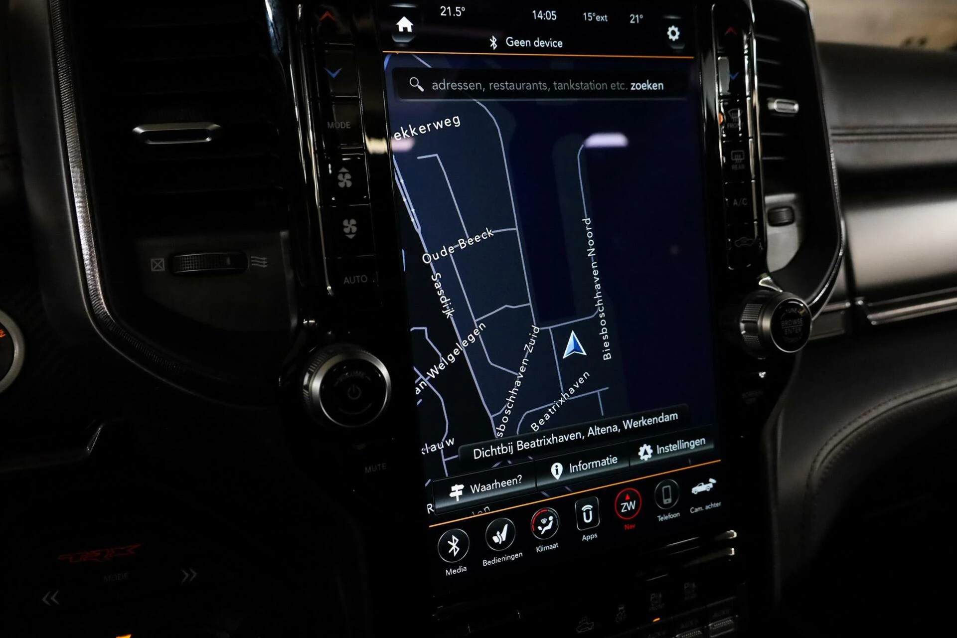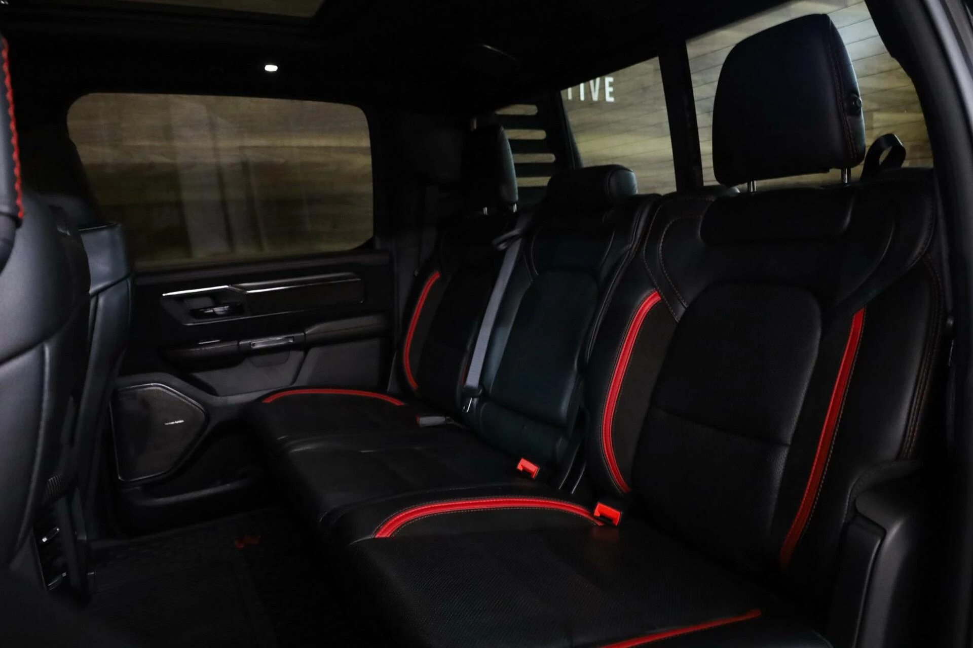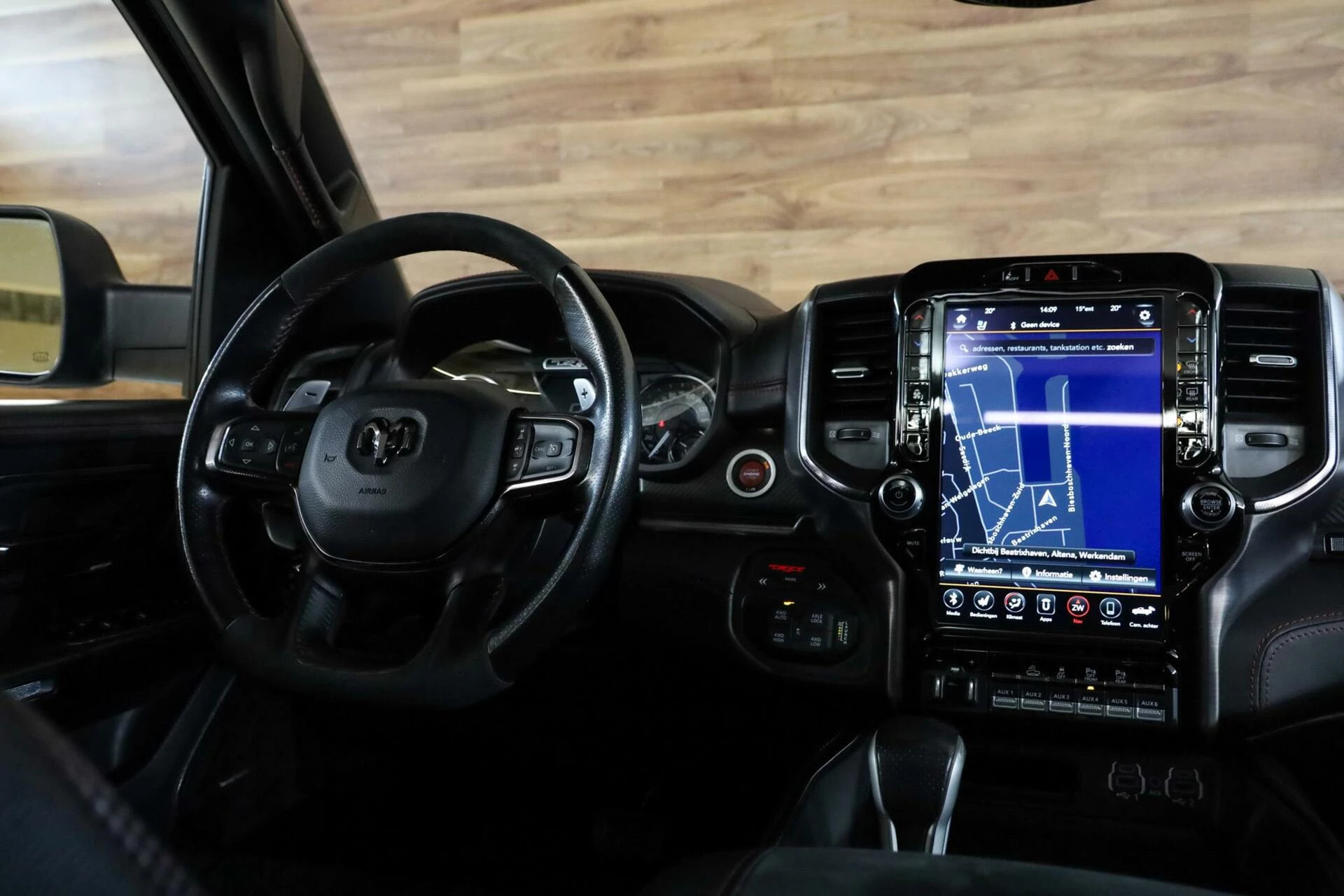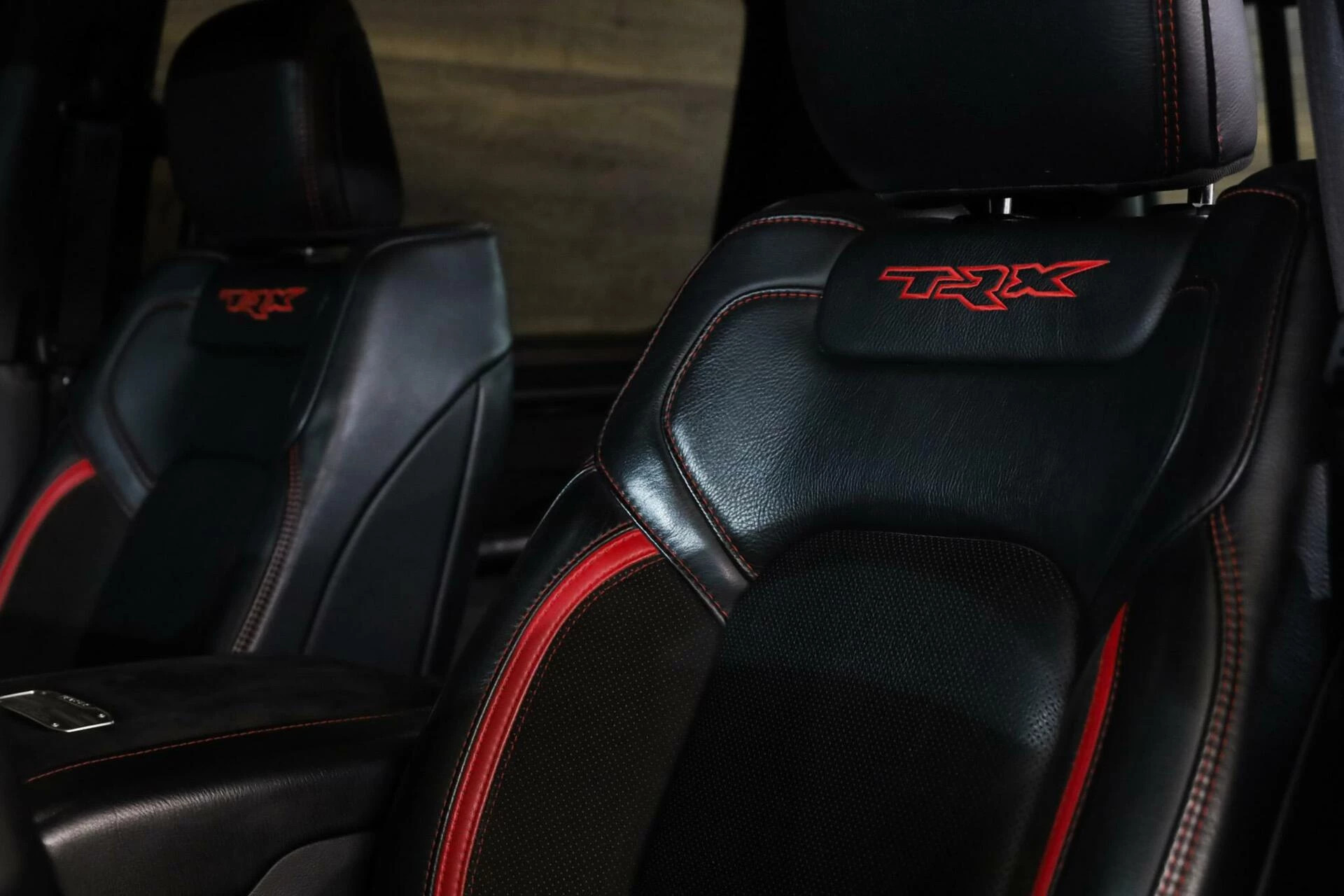 Deze Dodge Ram beschikt over alle opties, denk aan: Vol lederen interieur met contrast stiksels, TRX benoeming in de stoelen, Stoelverwarming voorin en achterin, Stoelventilatie voorin en achterin, Stuurwiel verwarming, Head-up Display, Glazen Schuif/kanteldak, Elektrisch verstelbare stoelen met geheugen, Adaptieve Cruise control, Lane assist, Trekhaak, Keyless Entry, Multifunctioneel stuurwiel, Apple Carplay, Schakelmogelijkheid aan stuurwiel, Full Map navigatie systeem, Parkeersensoren voor + achter, Achteruitrijcamera, Draadloos telefoon opladen, Bluetooth audio, Harman & Kardon geluidsinstallatie, Binnenspiegel digitaal, Dodehoekdetectie etc.
