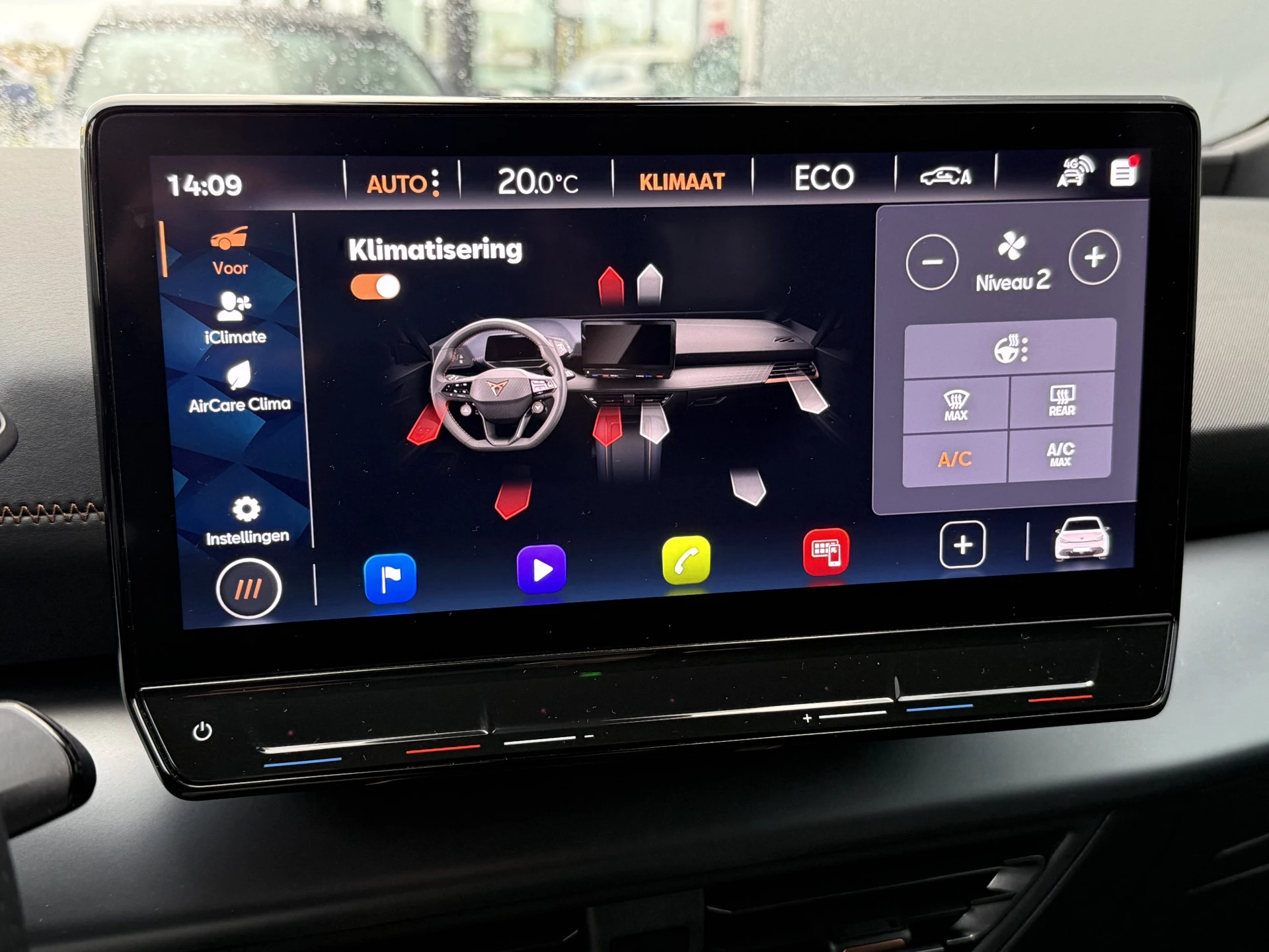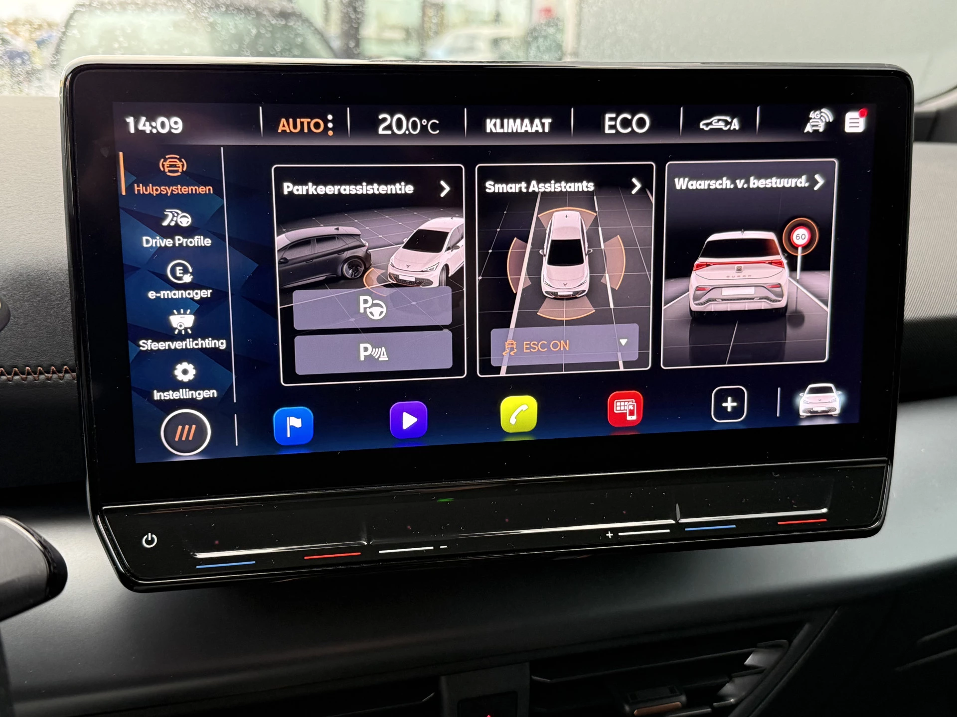 Geavanceerde technische systemen houden tijdens elke rit het verkeer in de gaten en reageren op potentieel gevaarlijke situaties. Onderweg zorgt verkeersborddetectie ervoor dat u geen waarschuwingsbord mist. Het Lane-keeping systeem let constant op en waarschuwt of corrigeert als u onoplettend over de lijnen van de rijstrook gaat. Het forward collision warning-systeem is constant alert en detecteert via sensor de afstand tot voorliggers. Wordt die te klein, dan volgt een automatische waarschuwing. In deze CUPRA vinden we verder een vermoeidheidsherkenning, autonoom remsysteem en bandenspanningcontrolesysteem.