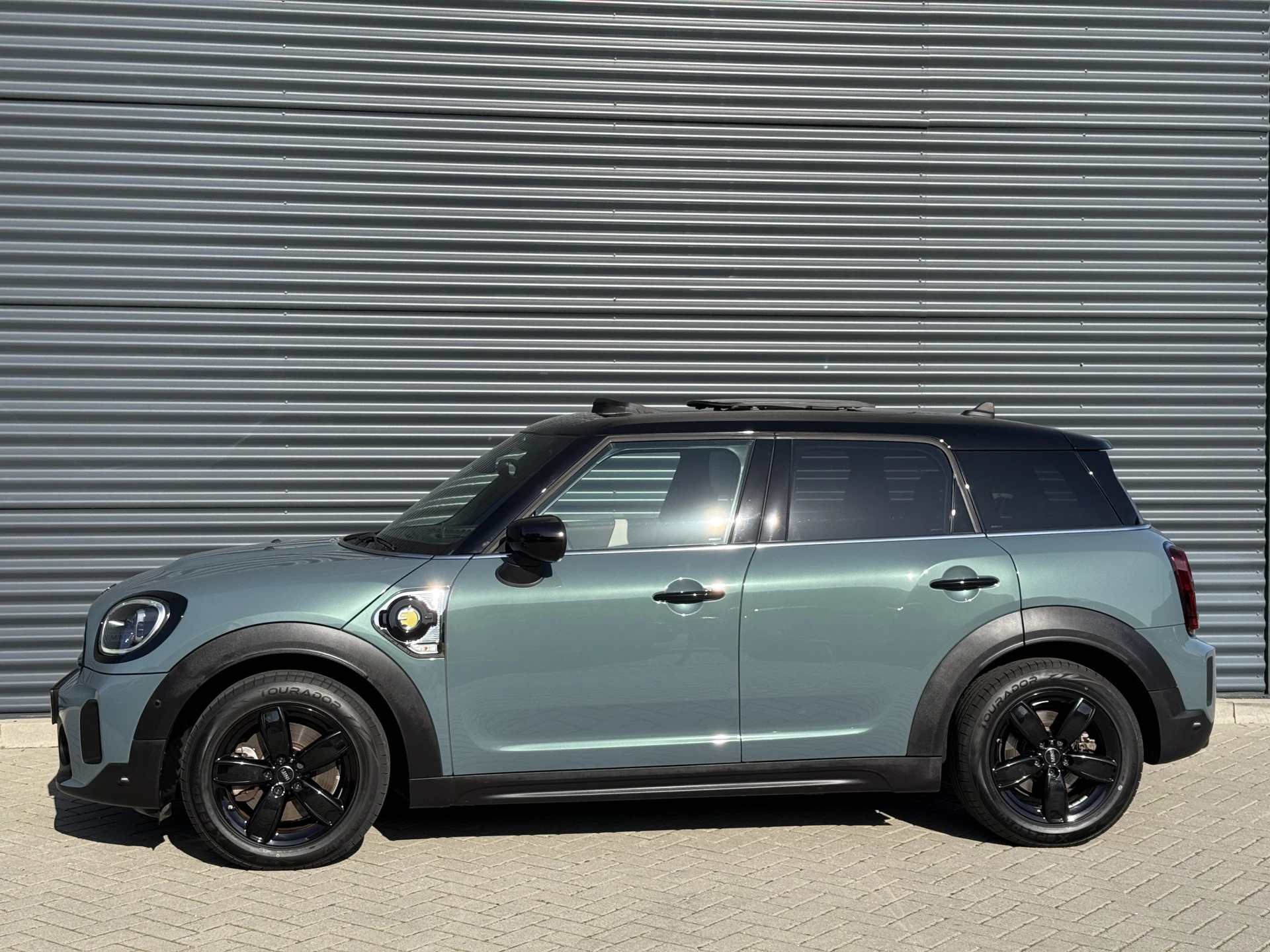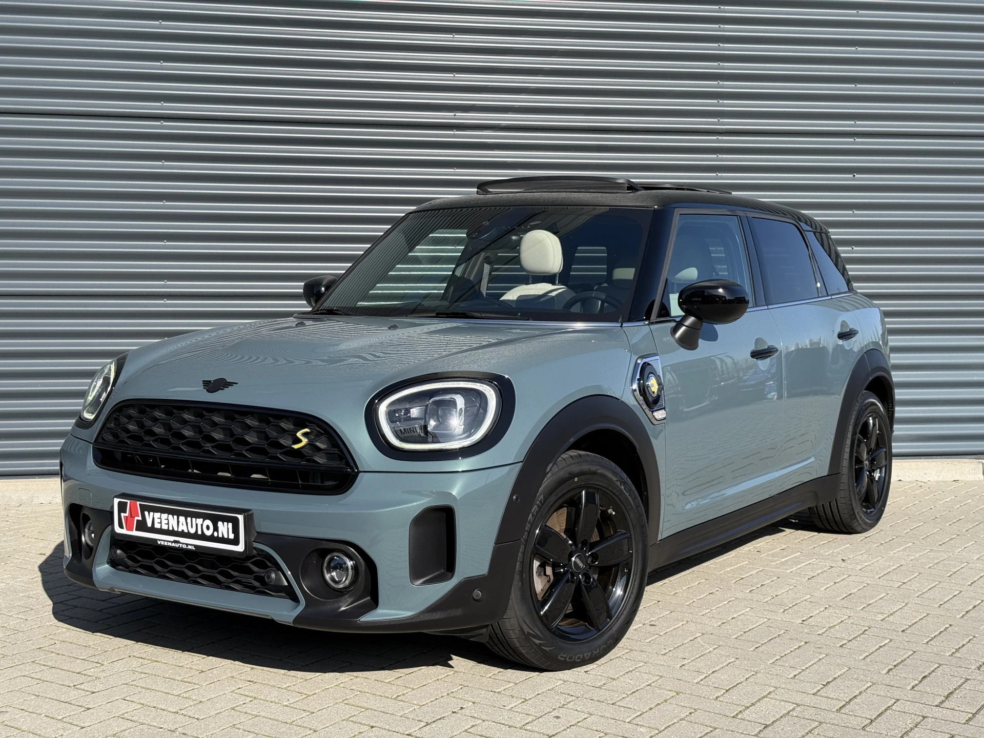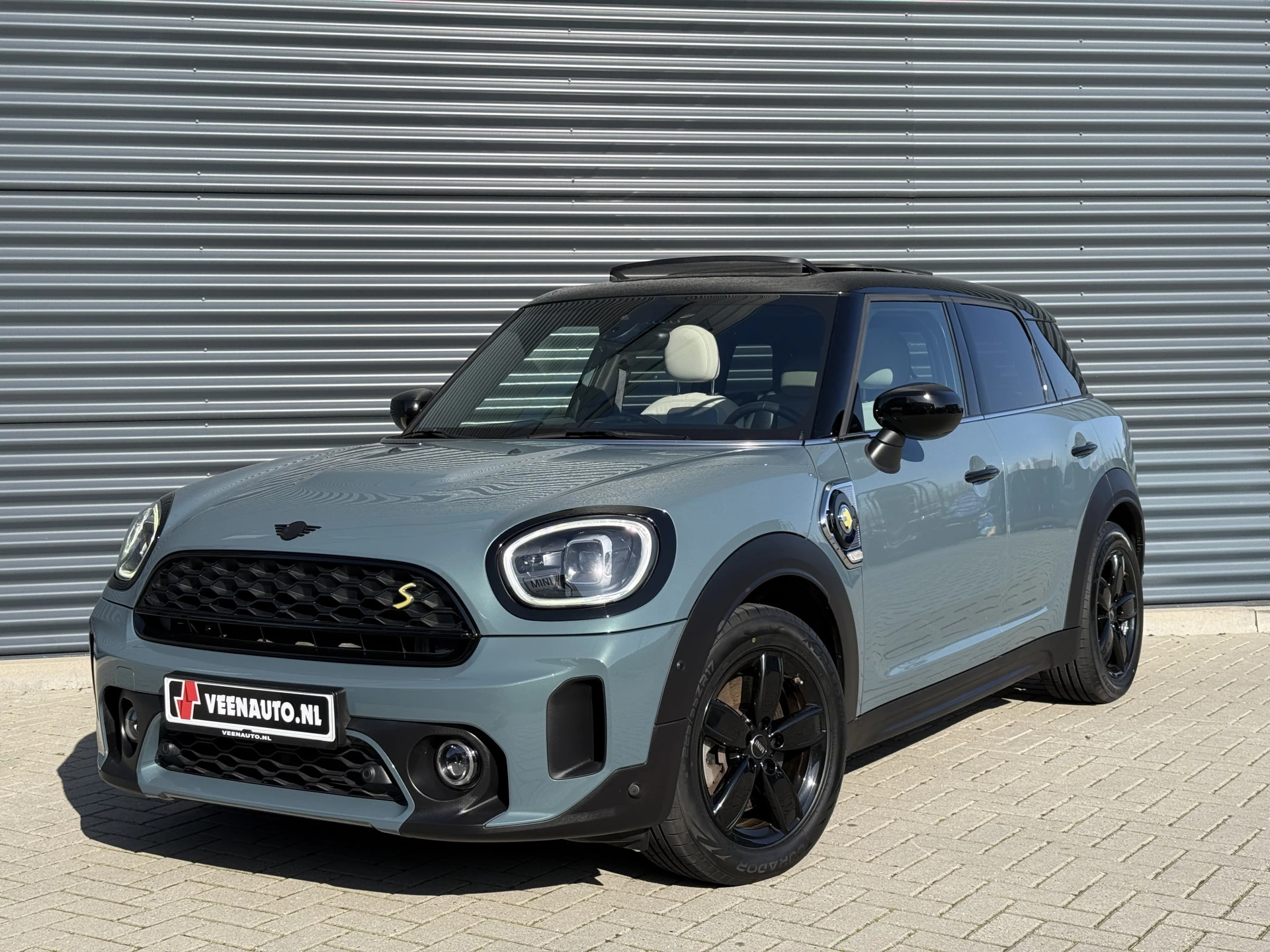 Schitterende Mini Countryman 2.0 Cooper SE ALL4 Plug in Hybrid in Sage Green metallic met hoogglans zwarte licht metalen velgen en Black Optic pakket. Deze Mini is bijzonder compleet uitgerust met onder andere de volgende opties: Panorama dak, elektrische bedienbare voorstoelen met memory, lederen bekleding, Harman Kardon Audio, LED interieur sfeer verlichtingspakket, Apple Carplay, achteruitrijcamera, navigatie, virtuele cockpit, Head Up display, adaptieve cruise control, keyless entry, parkeersensoren voor + achter met parkeer assistent, etc..