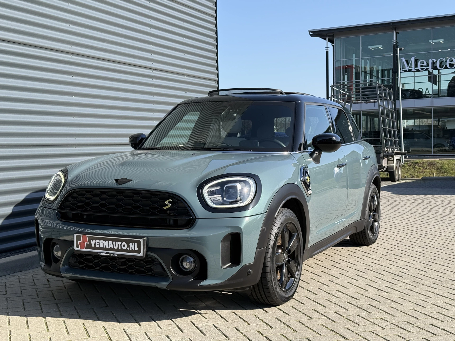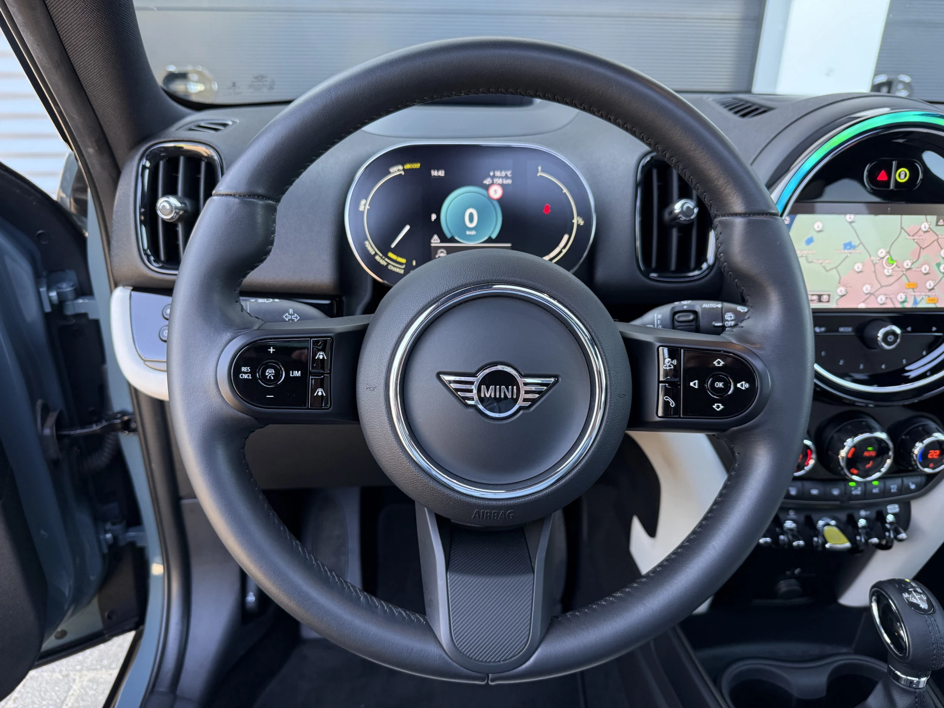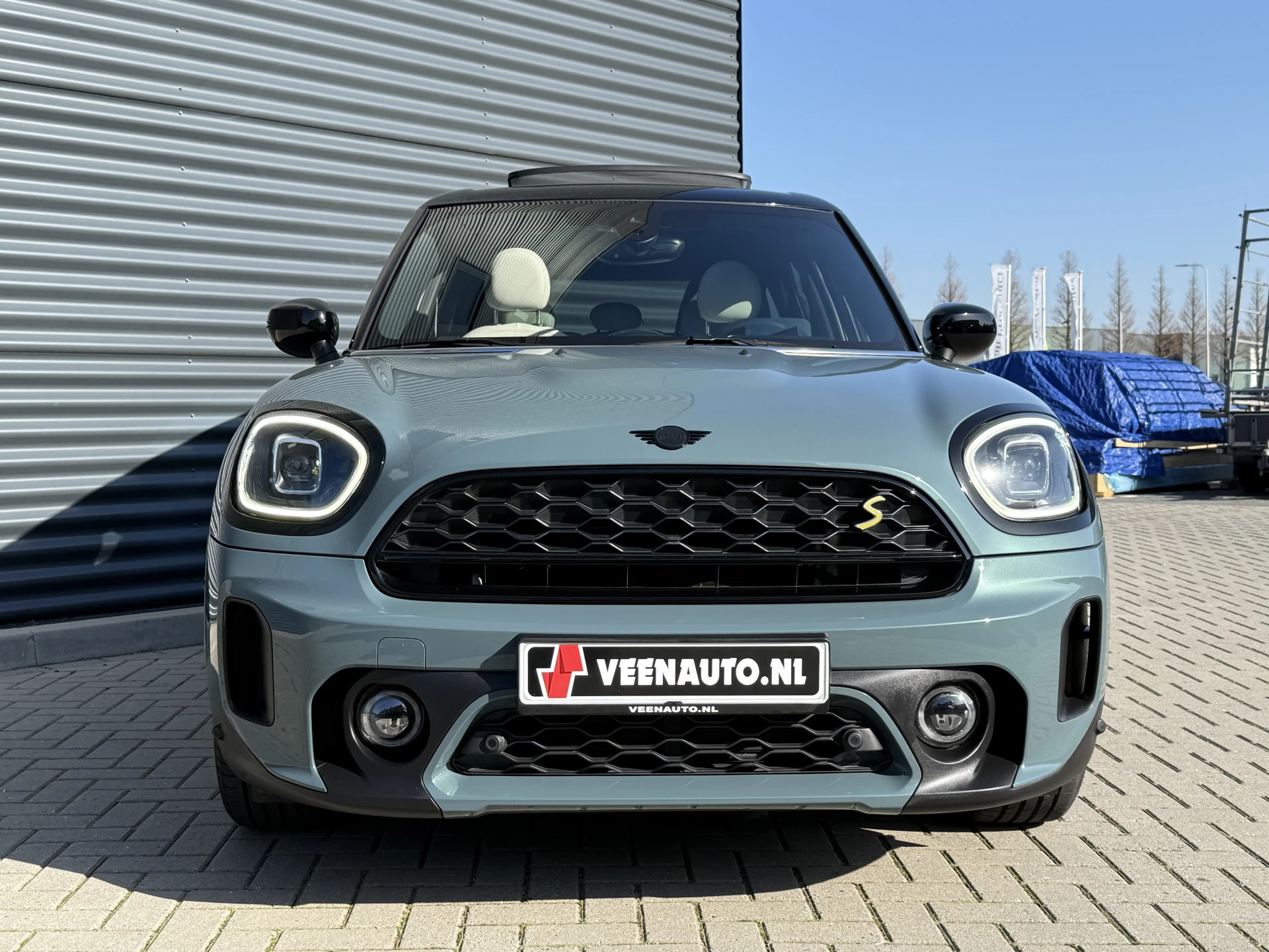 Schitterende Mini Countryman 2.0 Cooper SE ALL4 Plug in Hybrid in Sage Green metallic met hoogglans zwarte licht metalen velgen en Black Optic pakket. Deze Mini is bijzonder compleet uitgerust met onder andere de volgende opties: Panorama dak, elektrische bedienbare voorstoelen met memory, lederen bekleding, Harman Kardon Audio, LED interieur sfeer verlichtingspakket, Apple Carplay, achteruitrijcamera, navigatie, virtuele cockpit, Head Up display, adaptieve cruise control, keyless entry, parkeersensoren voor + achter met parkeer assistent, etc..