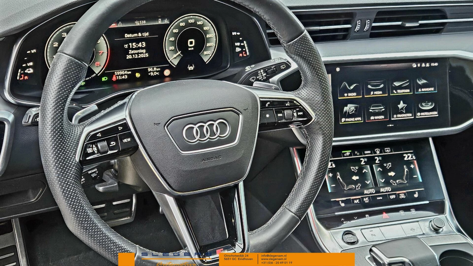 Rij- en route-info wordt perfect in beeld gebracht door het digitale dashboard. Adaptive cruise control houdt de ingestelde snelheid vast en houdt afstand tot het voertuig voor je. Bedien je de auto liever met jouw stem? Dan is het goed om te weten dat spraakbediening aanwezig is. De auto is voorzien van een trekhaak en is een uitstekende caravantrekker. Kilometerstand? Oliepeil? Accuspanning? Allemaal te zien via de app. Overal. Altijd. Dankzij Connected Services. De uitrusting van deze Audi is met full map navigatiesysteem, electronic climate control, schakelpaddles aan het stuur, DAB ontvangst, parkeersensoren achter en regensensor behoorlijk compleet.