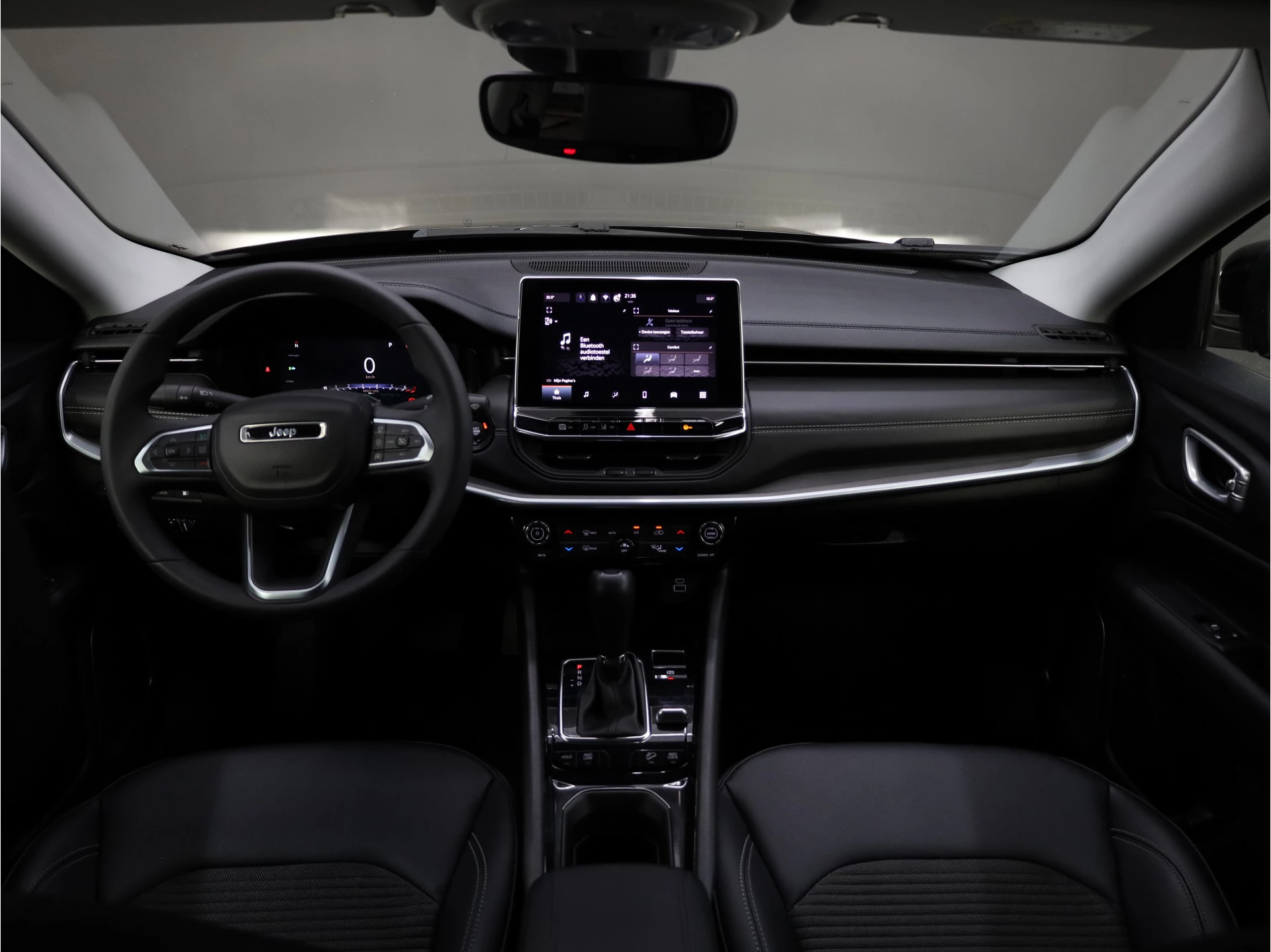 Elektronische veiligheidsvoorzieningen helpen u onderweg om de situatie op de weg te beoordelen. Deze systemen waarschuwen u als er een riskante situatie ontstaat, en kunnen in bepaalde gevallen ook zelf ingrijpen. Een belangrijke bijdrage aan de veiligheid onderweg levert de verkeersbord-detectie in deze Jeep. Onbedoeld buiten de rijstrook raken wordt voorkomen door het Lane-keeping systeem. Het systeem van forward collision warning, of in gewoon Nederlands 'botswaarschuwing', treedt in werking als de sensor te weinig afstand signaleert met een voor- of tegenligger. Dankzij veiligheidsvoorzieningen als hill hold functie, vermoeidheidsherkenning, autonoom remsysteem en bandenspanningcontrolesysteem, bent u steeds veilig onderweg.