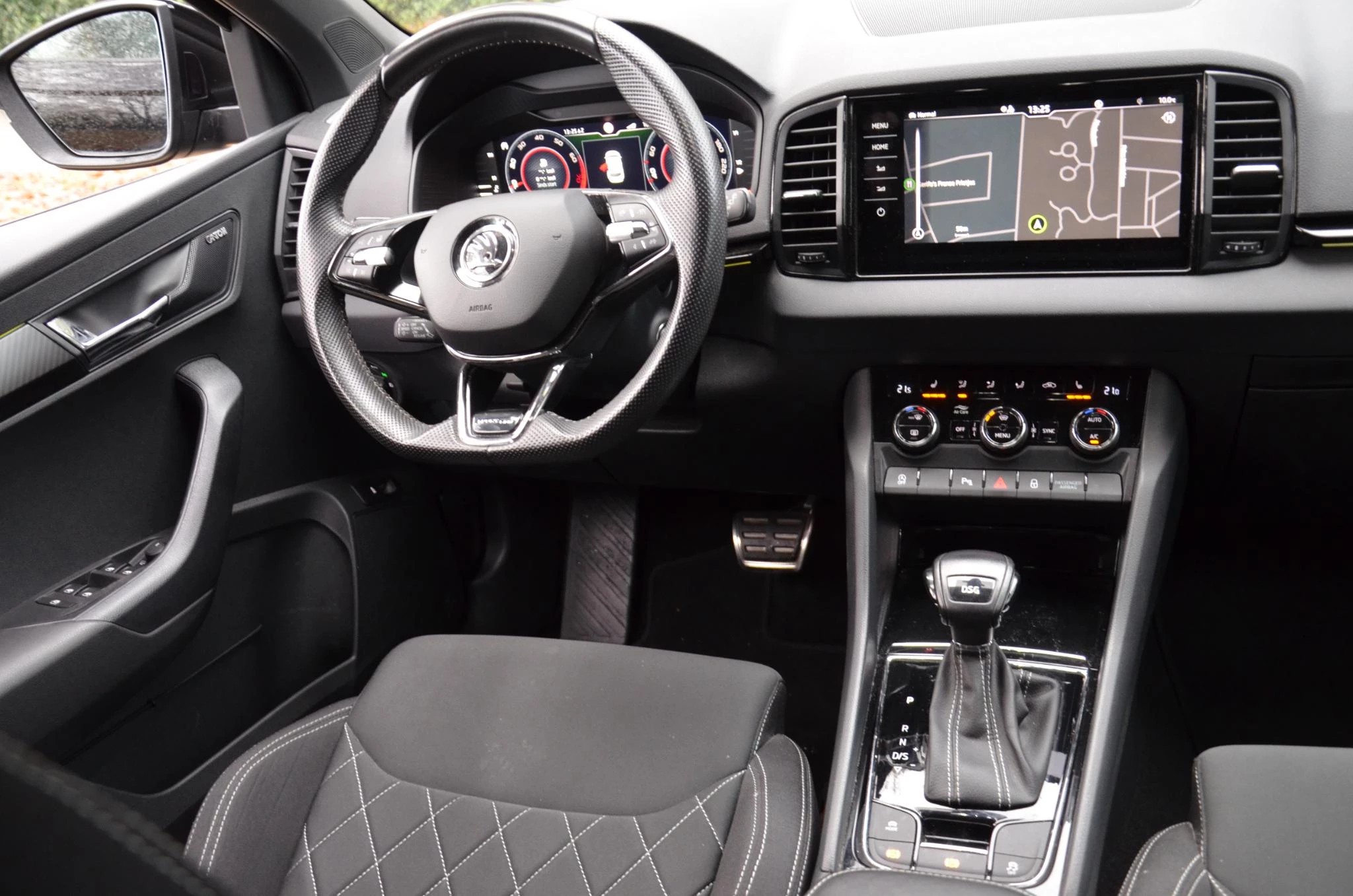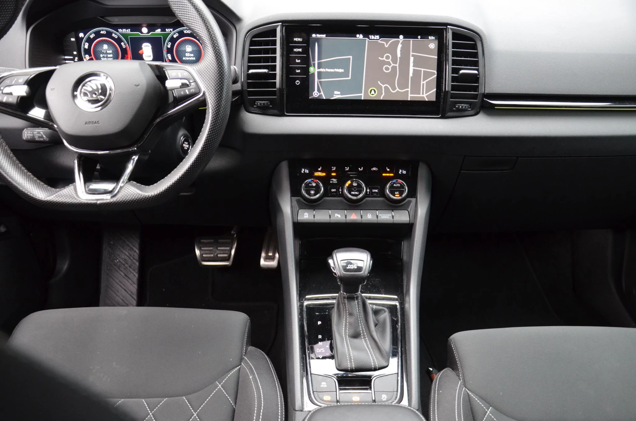 Het digitale dashboard stelt u in staat uw cockpitinterface te personaliseren. Geen nekkramp of spiegelwerk meer bij het achteruitrijden: de achteruitrijcamera kijkt en ziet alles! Rijden-stilstaan, rijden-stilstaan. Niks is irritanter en vermoeiender dan filerijden. Daar heeft deze Skoda Karoq een oplossing voor: de file assistent, die met radarmeting permanent het tempo aanpast op de voorligger. Zelfs als die stopt. Navigatie, onderhoudsstatus, vergrendeling, audio... de mogelijkheden van remote services zijn haast oneindig. Ook deze auto laat zich bedienen en analyseren via uw smartphone! Een subliem geluidsspectrum wordt onder alle omstandigheden geleverd door het high performance audiosysteem. Deze Skoda is voorzien van dashboard met spraakbediening, navigatiesysteem met harde schijf, automatische airconditioning, draadloos opladen, DAB ontvangst en regensensor.