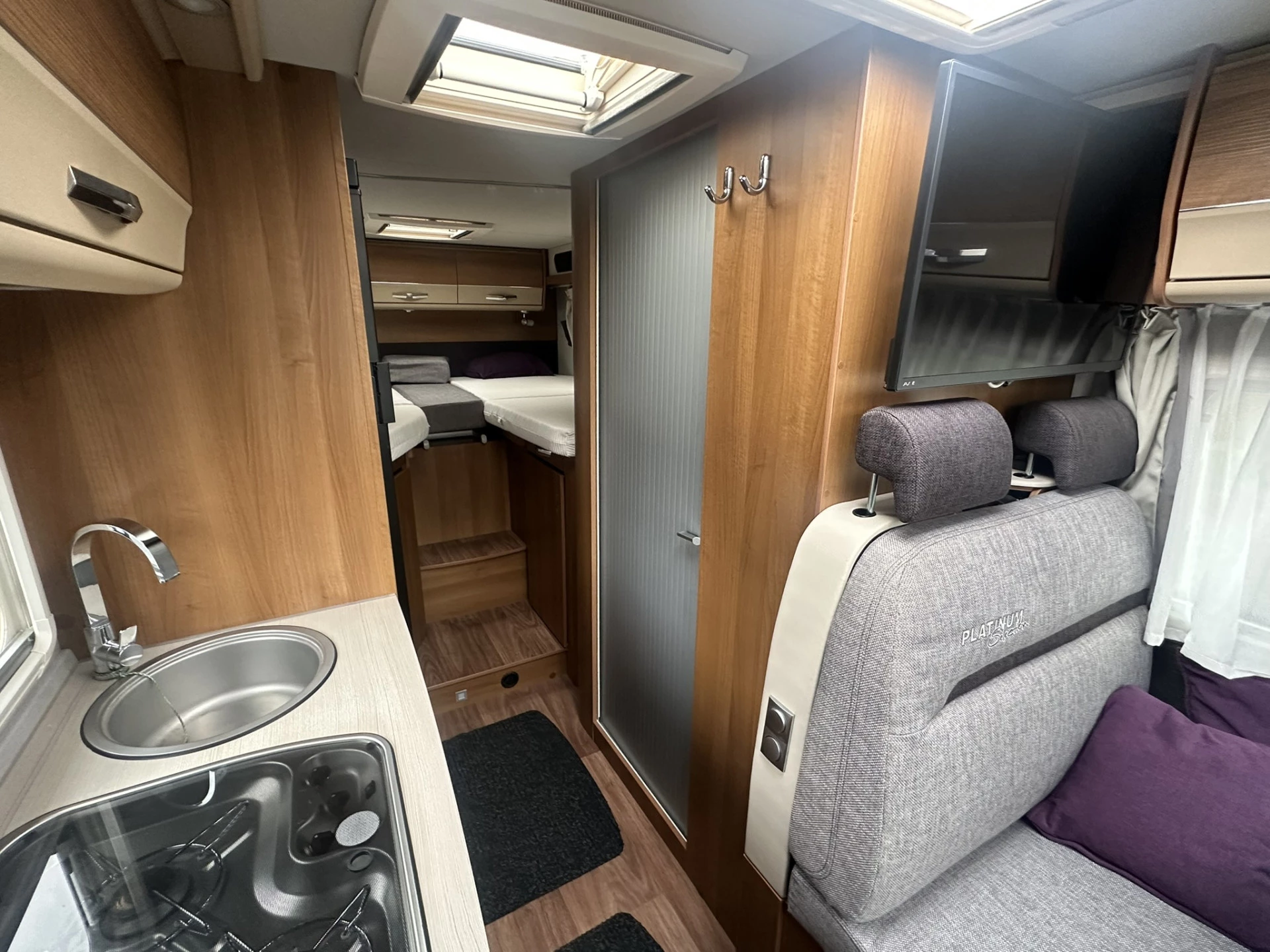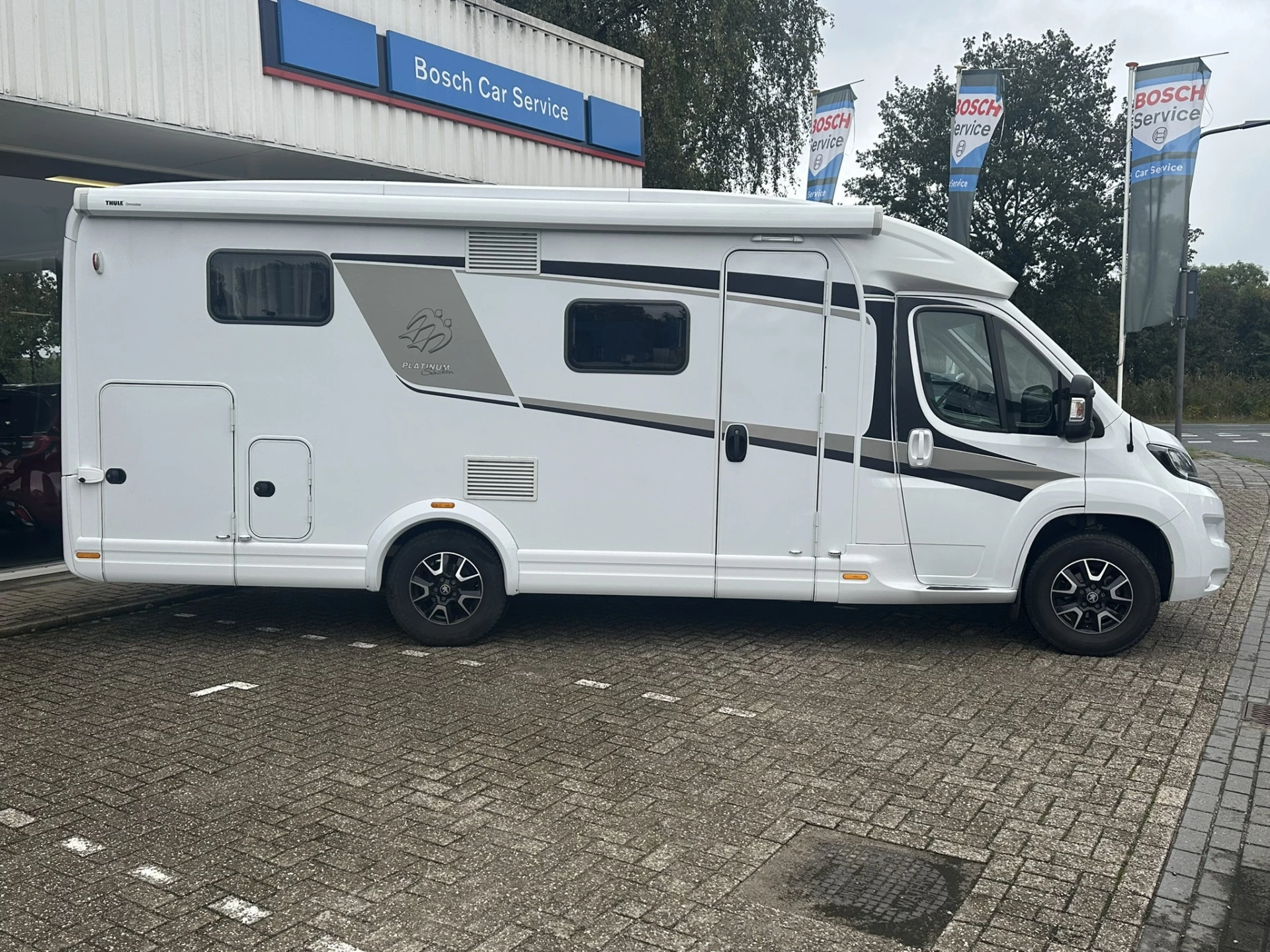 LBH maten van de camper 696 cm lang bij 220 cm breed, hoogte 280 cm. Hij is zeer compleet uitgerust met een Oyester satelliet TV 32 inch. Pioneer Navigatie met Apple Car Play en achteruitrijcamera. Thule luifel. Zonnepaneel. Kluis. Fietsrek en Trekhaak af fabriek.