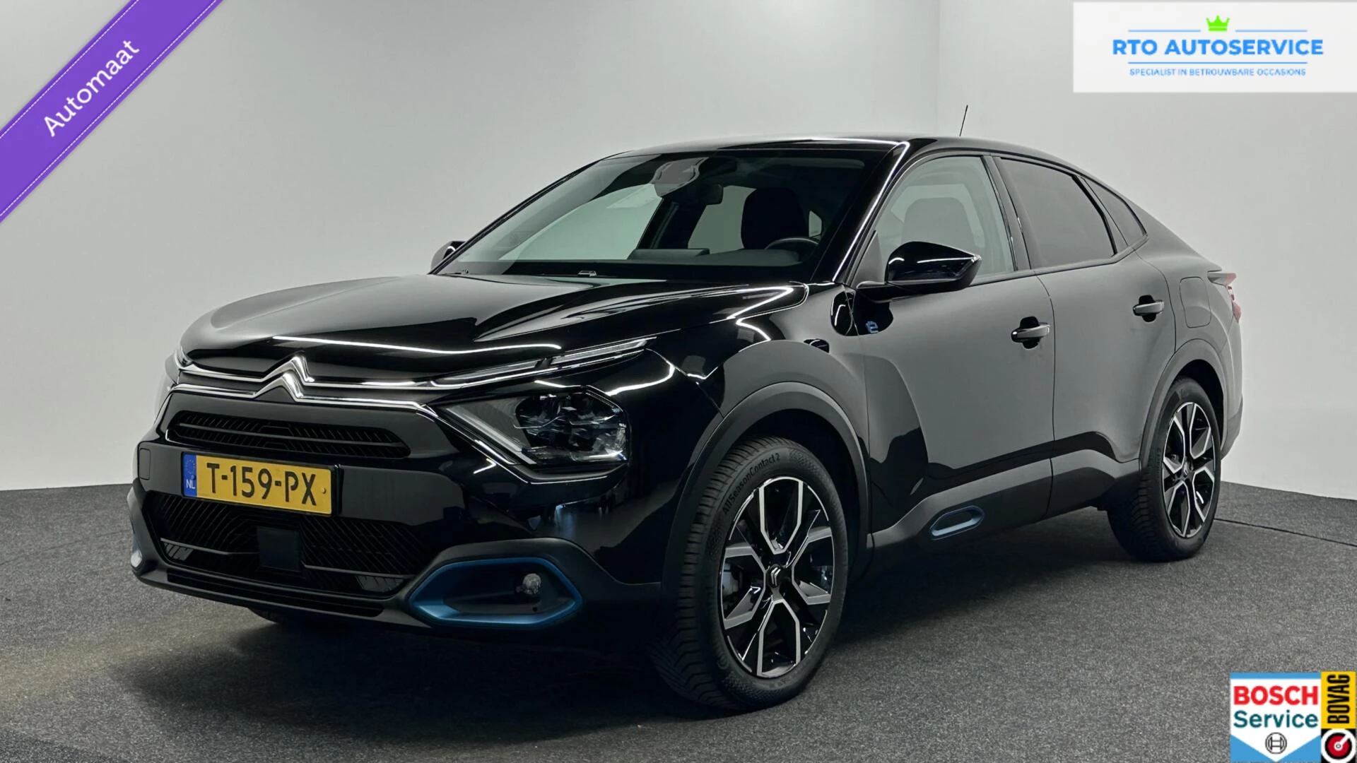 Alle functies die u onderweg nodig heeft, worden permanent geregistreerd en zijn afleesbaar op het digitale dashboard. Spraaksturing luistert naar uw stem en bedient de belangrijkste voertuigfuncties. Zoals u van zo'n jonge auto mag verwachten, zijn hier ook de geavanceerde remote services aanwezig. Simpelweg met een app op uw smartphone controleert u op afstand de status van de auto en bedient u diverse functies. Deze auto kent elke bestemming als z'n broekzak, dankzij het navigatiesysteem. Aan boord van deze Citroen Ë-C4 X is een achteropkomend verkeer waarschuwing voor extra veiligheid. Natuurlijk behoren automatische airconditioning, DAB ontvangst, parkeersensoren achter, regensensor, cruise control en lederen stuur ook tot de uitrusting van deze complete auto.