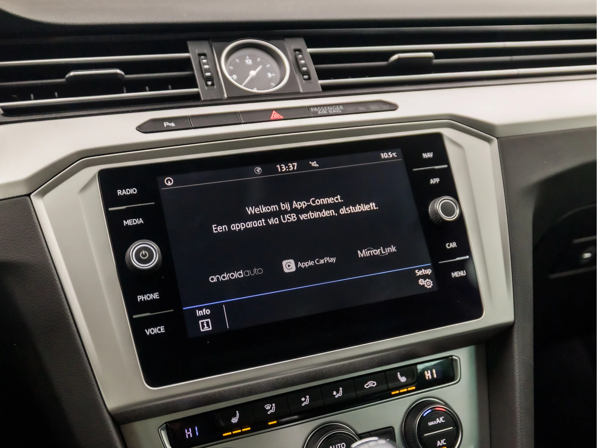 Adaptive cruise control is veilig en comfortabel. De snelheidsregelaar houdt automatisch afstand tot het voertuig dat voor u rijdt. De auto is voorzien van een trekhaak en is een uitstekende caravantrekker. Het navigatiesysteem met harde schijf en het audio-installatiesysteem bedient u met knoppen op het stuur of met gesproken commando's. Aan boord van deze Volkswagen Passat Variant is een achteropkomend verkeer waarschuwing voor extra veiligheid. Natuurlijk is er ook automatische airconditioning aanwezig. En dan is deze auto ook nog eens voorzien van sportstuur met schakelpaddels, parkeersensoren voor en achter, regensensor, automatisch dimmende buitenspiegels, isofix-aansluiting en centrale deurvergrendeling met afstandsbediening.