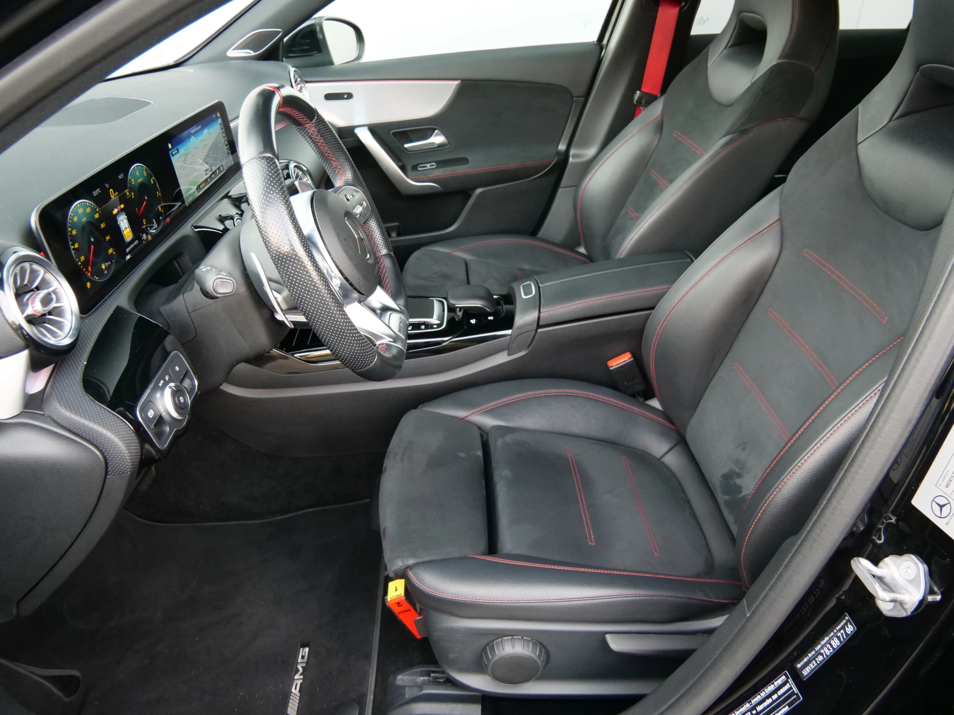 Wie zei daar dat er geen emotie meer in auto's zit? Achter het stuur van deze Mercedes-Benz A-klasse kunt u het nog steeds ervaren, kilometer na kilometer. De verschillende elementen van de AMG-styling accentueren de dynamische lijnvoering van deze A-klasse. Trap het gaspedaal in en voel de geweldige acceleratie van de viercilinder benzinemotor van deze sportwagen. Deze auto is ook voorzien van stoelverwarming. Perfect zicht bij nacht en slecht weer? Dat leveren de koplampen met matrix LED-verlichting. Bij de rijke uitrusting horen ook AMG-styling, sportonderstel, dakspoiler, donker getint glas achter, in delen neerklapbare achterbank en variabele stuurbekrachtiging.