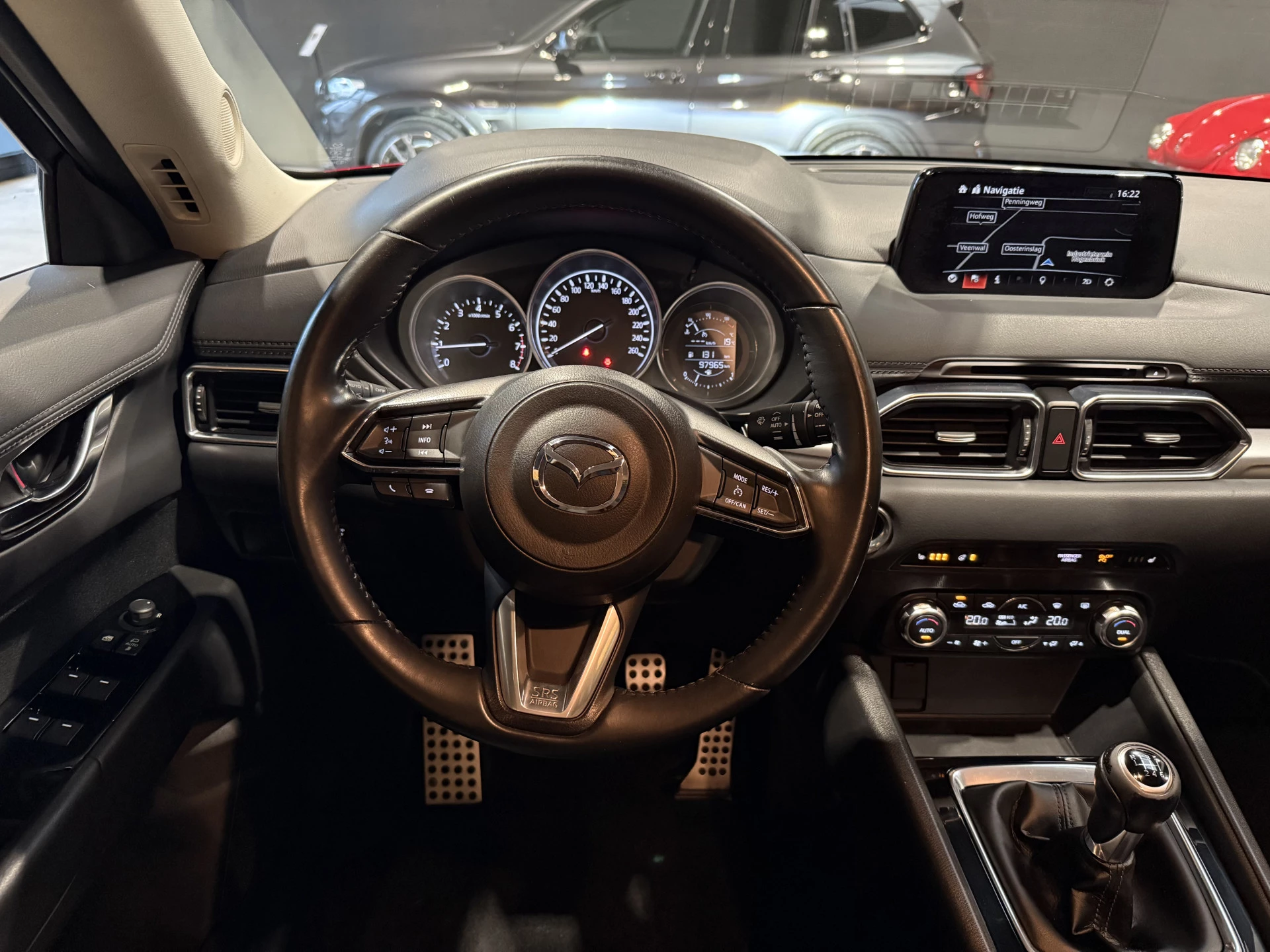Uw nieuwe auto staat klaar voor vertrek. Stap gerust in, deze Mazda CX-5 heeft 97965 kilometer gelopen. De krachtige benzinemotor van deze auto is gekoppeld aan een handgeschakelde zesversnellingsbak. Tijdens gure dagen is het prettig zitten in de verwarmbare voorstoelen. Bij de rijke uitrusting horen ook 20 inch lichtmetalen velgen, LED koplampen, donker getint glas achter, in delen neerklapbare achterbank, LED-achterlichten en verstelbare lendensteunen.