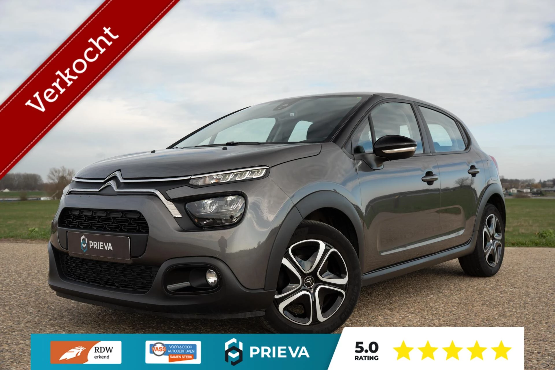 Comfort staat centraal. Op koude dagen zorgen de verwarmbare voorstoelen direct voor een aangename start. De 17 inch lichtmetalen velgen, LED-dagrijverlichting en de frisse metallic grijze lak geven deze C3 bovendien een moderne uitstraling.