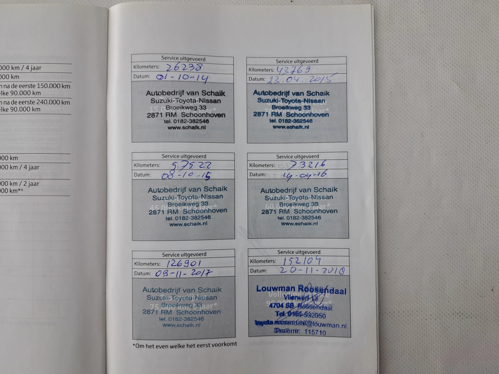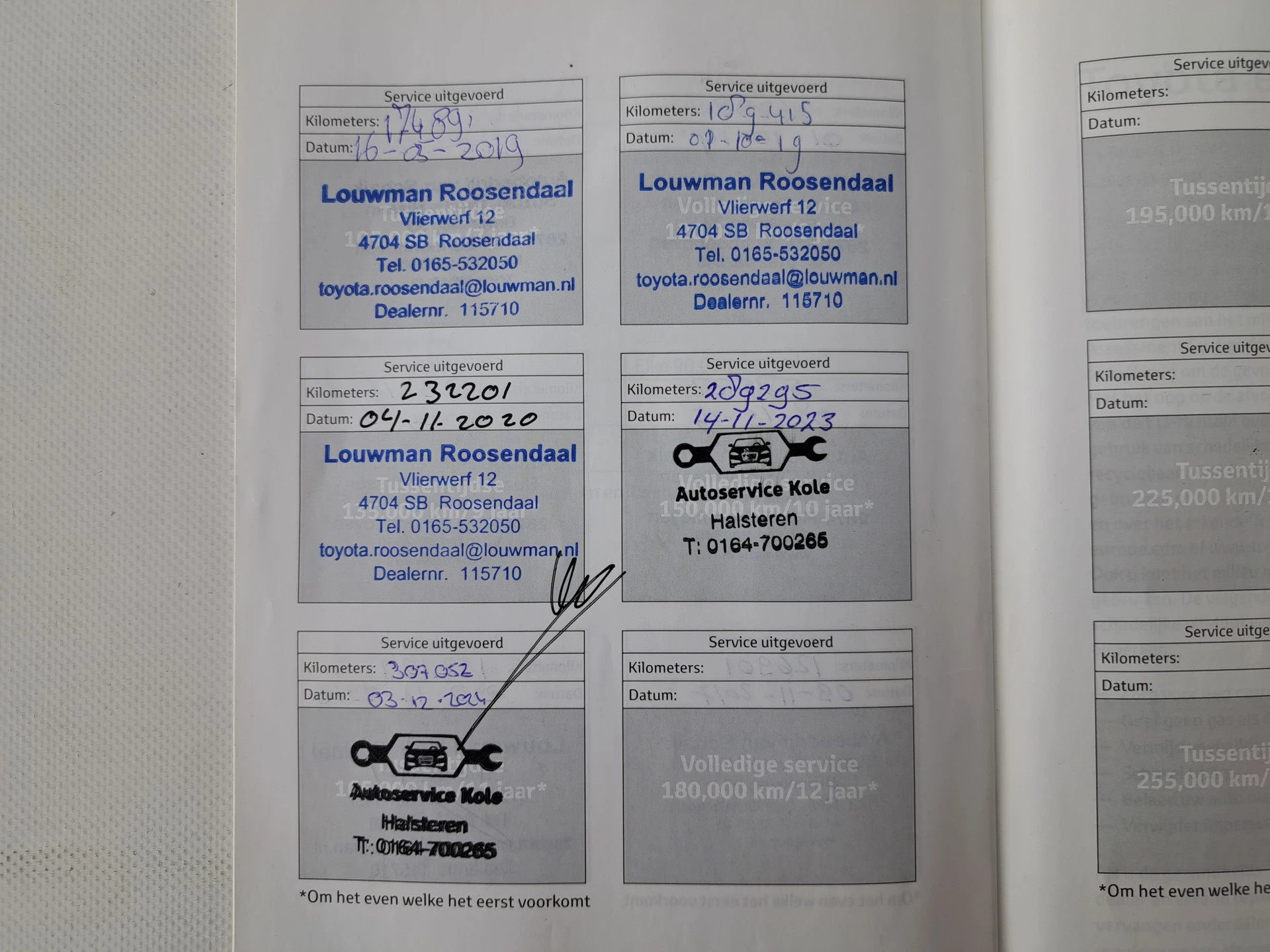 Onderhoud chronologisch uitgevoerd, laatste servicebeurt bij : 307.052 km |