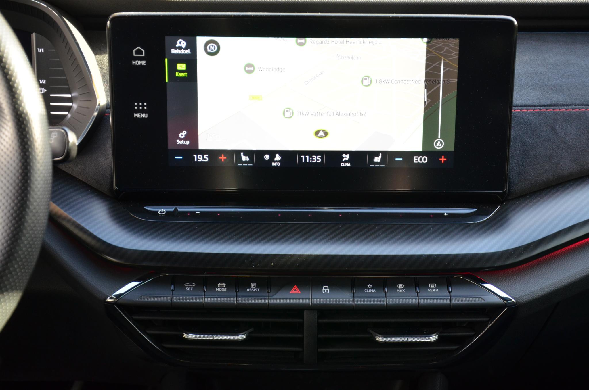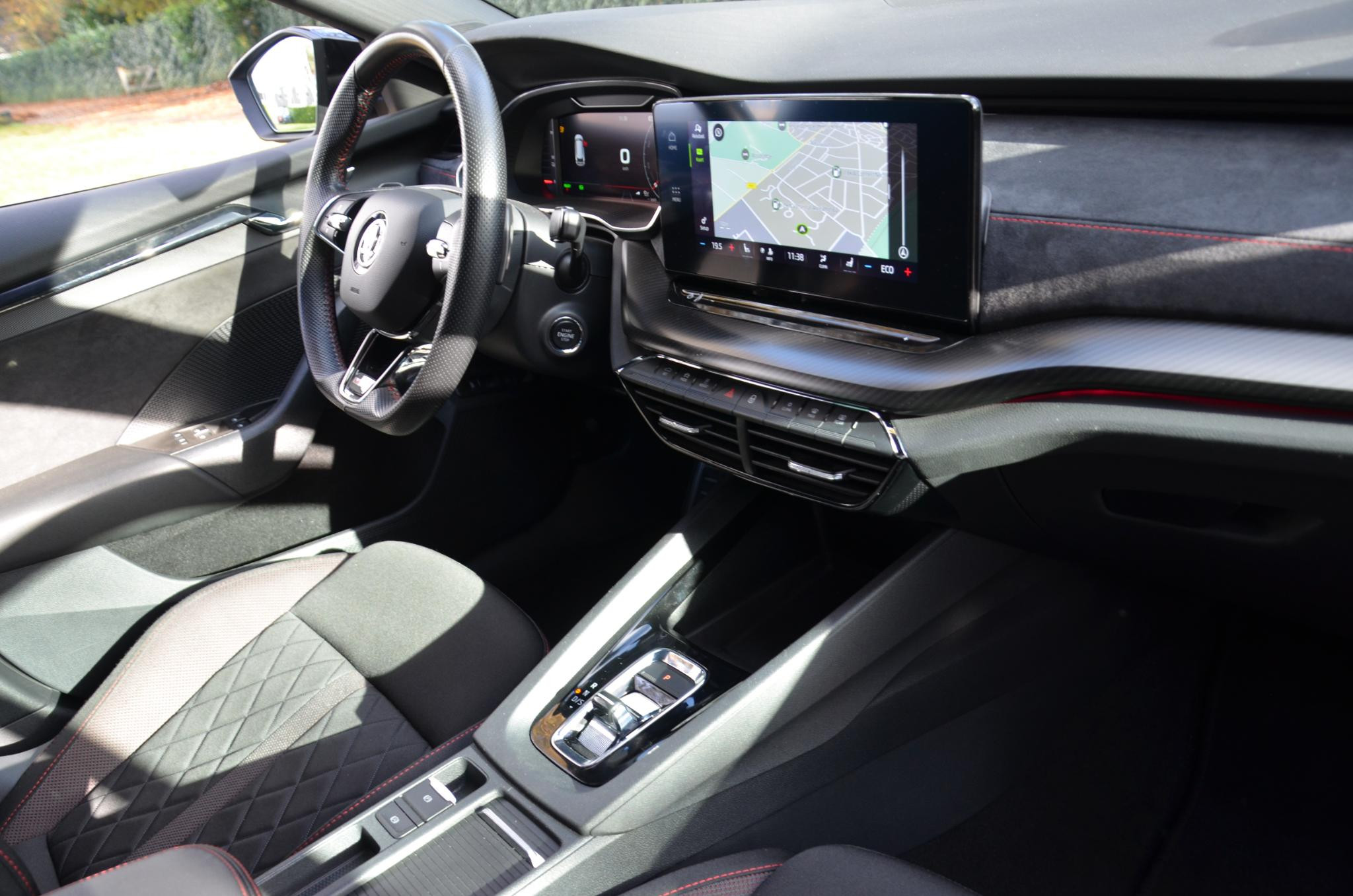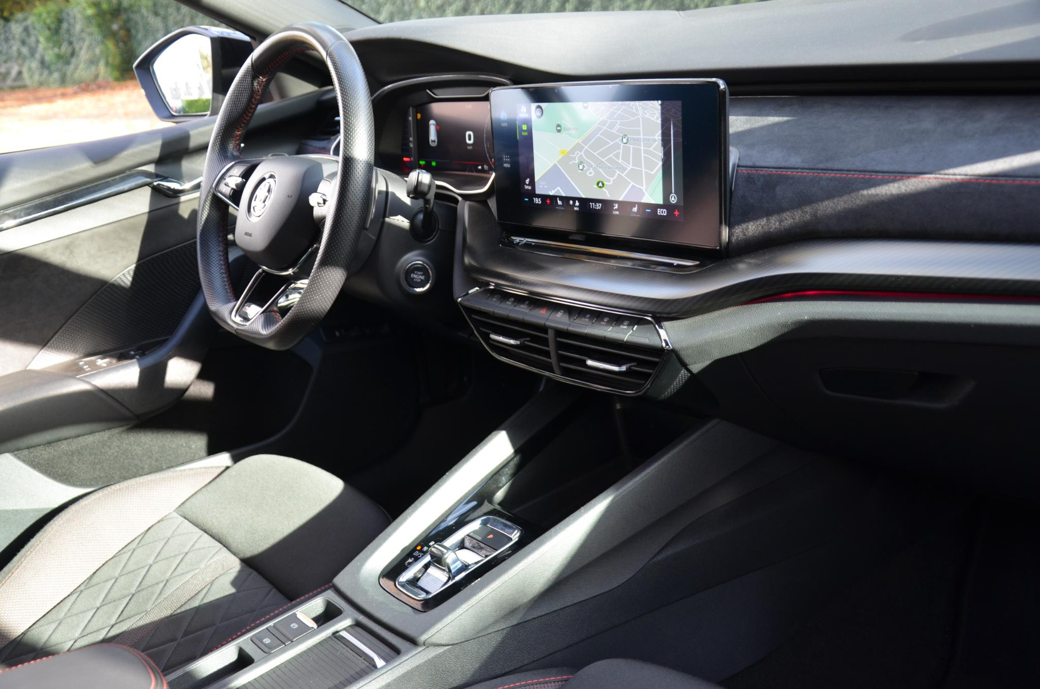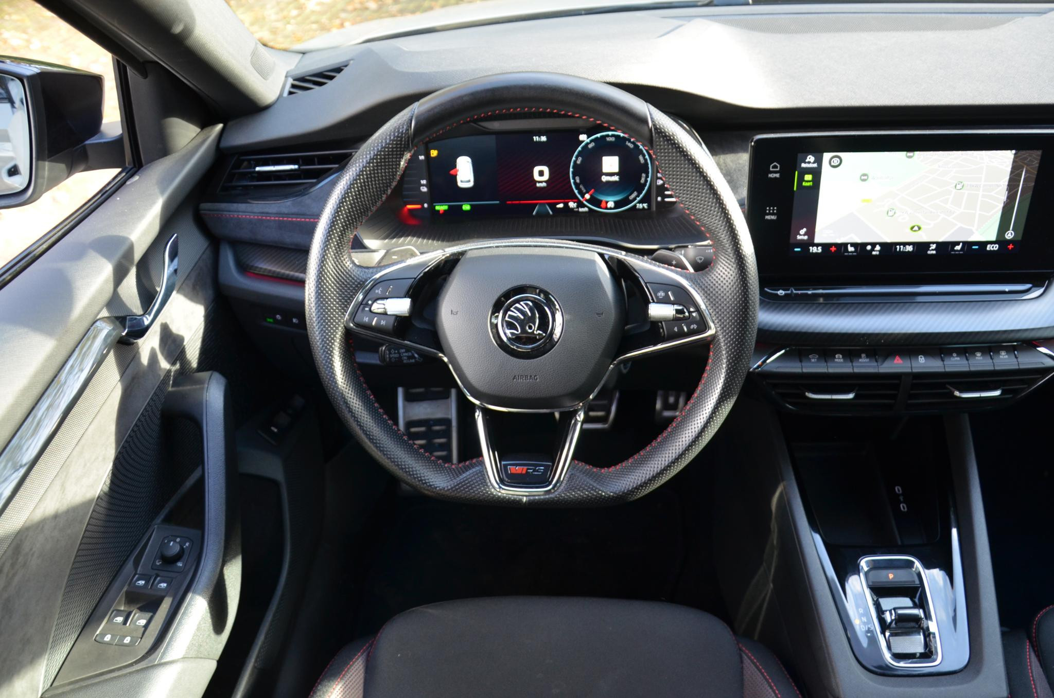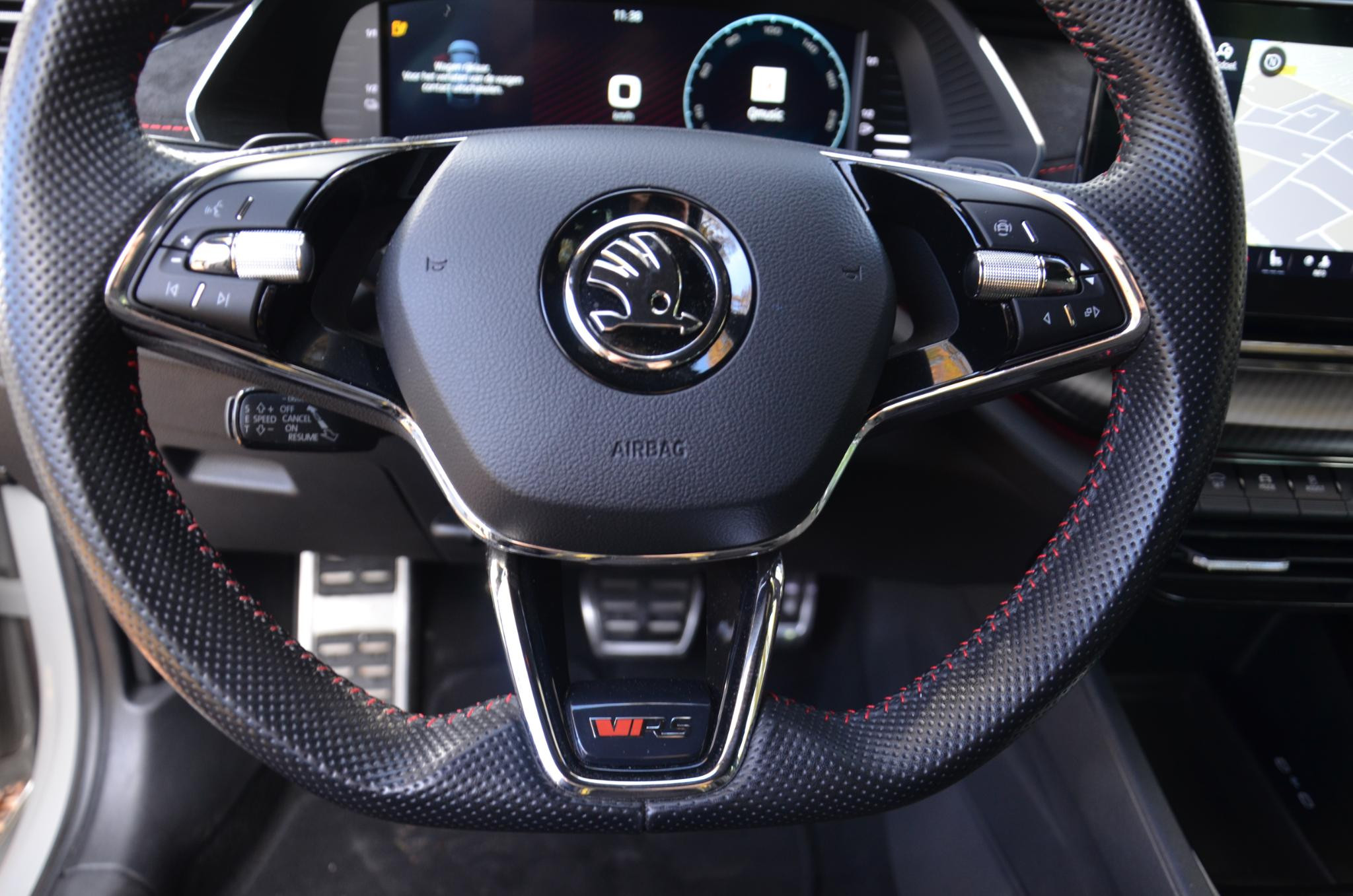 Natuurlijk brengt het digitale dashboard alle ritinformatie perfect in beeld. Maar ook communicatie, navigatie en tal van andere functies zijn permanent te volgen. De speciale app verbindt met Connected Services, die de status van vitale functies bijhoudt en waarschuwt als u bijvoorbeeld moet tanken, de bandenspanning moet controleren of olie moet bijvullen. Het audiosysteem met DAB-ontvangst en het full map navigatiesysteem bedient u veilig met knoppen op het stuurwiel of met gesproken commando's. Onderweg de smartphone opladen gaat helemaal zonder snoeren, door de draadloze telefoonlader. Met automatische airconditioning hoeft u alleen de gewenste temperatuur in te stellen. Het systeem doet de rest. U bent in deze Skoda ook voorzien van sportstuur met schakelpaddels, parkeersensoren achter, regensensor, cruise control, automatisch dimmende buitenspiegels en centrale deurvergrendeling met afstandsbediening.