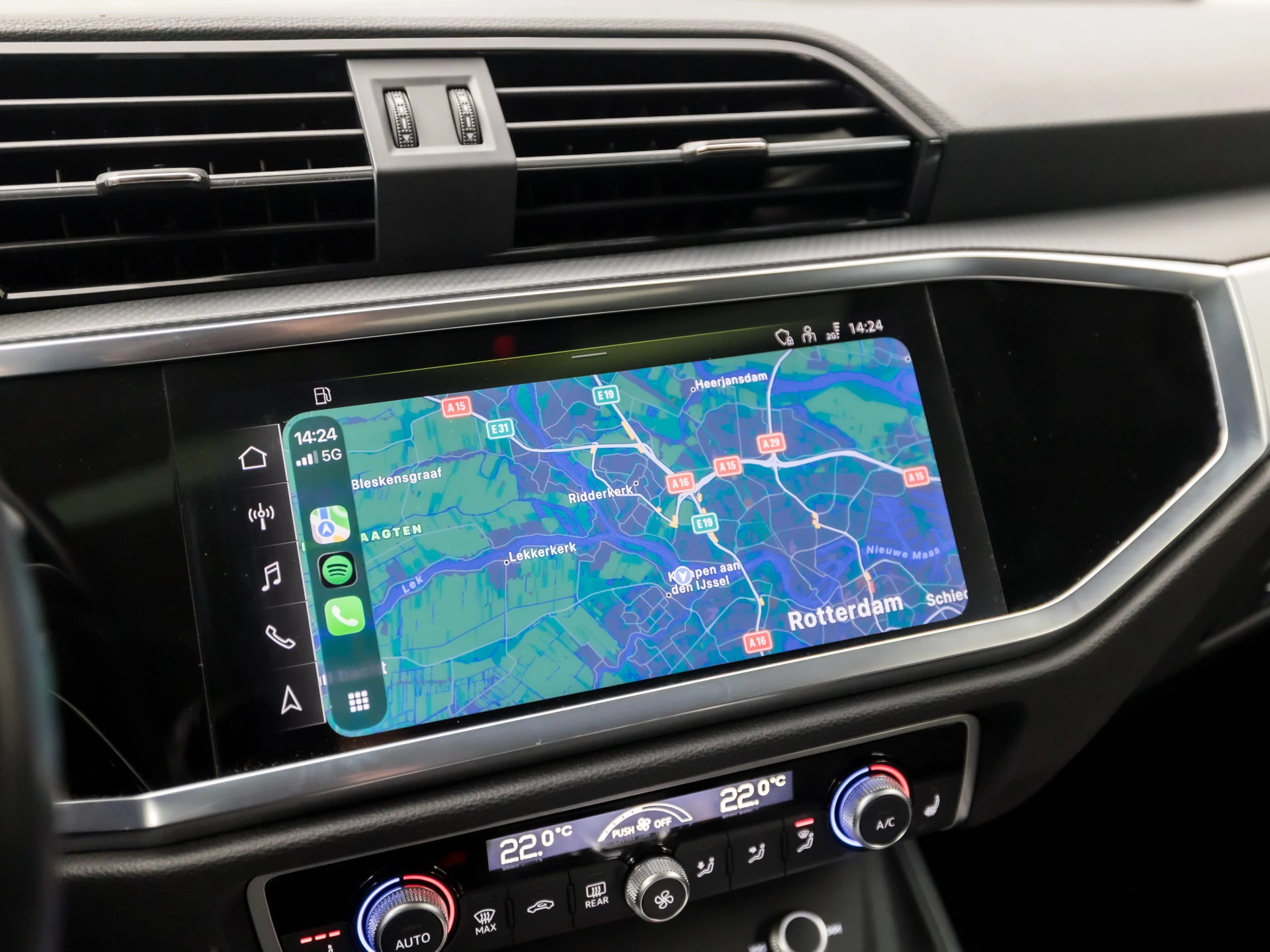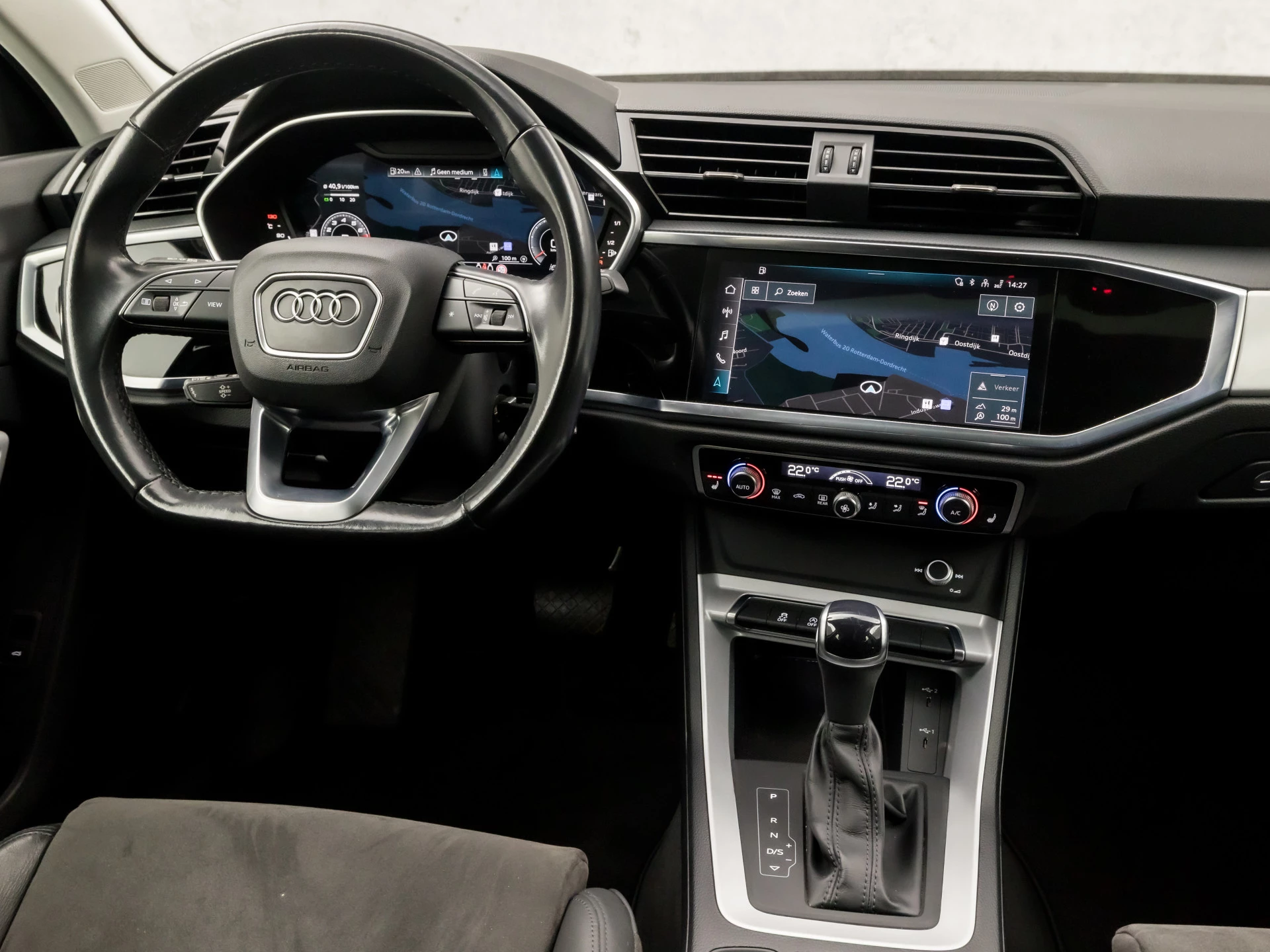 Zoals u mag verwachten van deze Audi Q3 is hij uitgerust met een reeks aan actieve veiligheidssystemen. Ongemerkt buiten de rijstrook raken? Nee hoor, het Lane-keeping systeem waarschuwt en corrigeert. Forward collision warning waarschuwt bij een dreigende aanrijding met een voorligger. De auto is ook uitgerust met hill hold functie, autonoom remsysteem en bandenspanningcontrolesysteem.