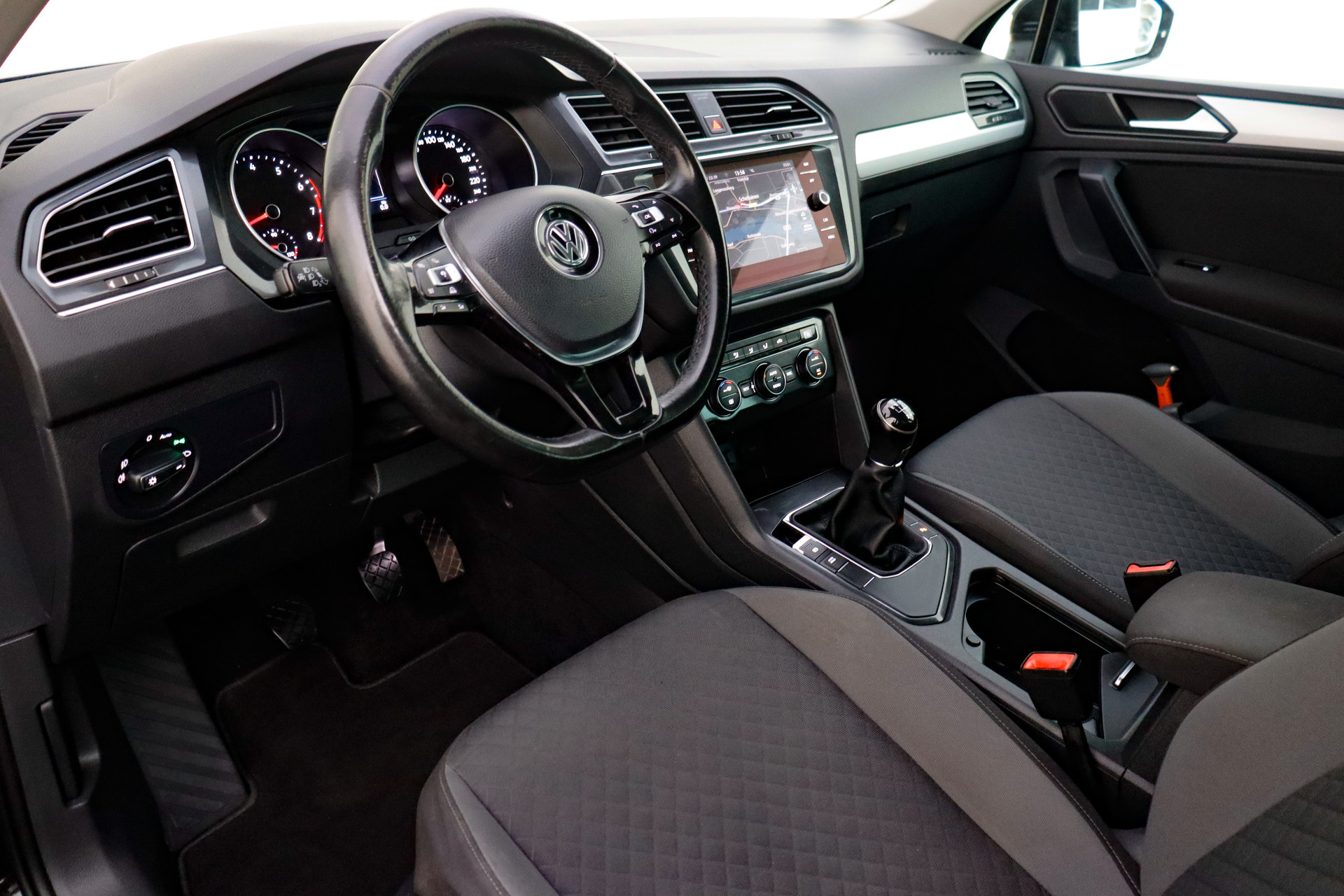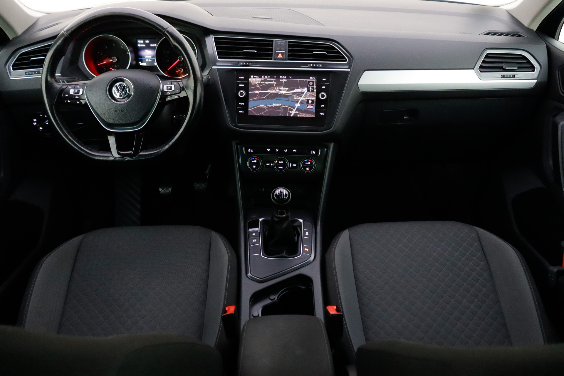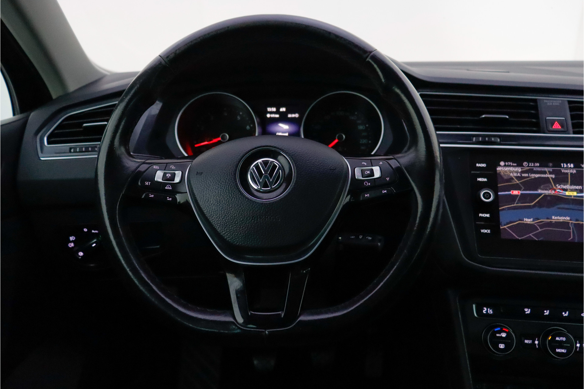Adaptive cruise control houdt de ingestelde snelheid vast en houdt afstand tot het voertuig voor u. Als u regelmatig met een aanhanger of een fietsendrager op pad bent, is de afneembare trekhaak een praktische extra. Een optie die de veiligheid verhoogt, is de bediening vanaf het stuur van het audio-installatiesysteem (met DAB-radio!) en het navigatiesysteem met harde schijf. Als u wilt kunt u beiden zelfs met uw stem bedienen. Met de automatische airconditioning selecteert u de gewenste temperatuur. Het systeem doet de rest. U kunt bij het inparkeren natuurlijk niet aan alle kanten ogen hebben. Daarom is deze Volkswagen Tiguan voorzien van parkeersensoren! De uitrusting van deze auto is met regensensor, automatisch dimmende binnenspiegel, lederen stuur, centrale deurvergrendeling met afstandsbediening, boordcomputer en lederen versnellingspook behoorlijk compleet.