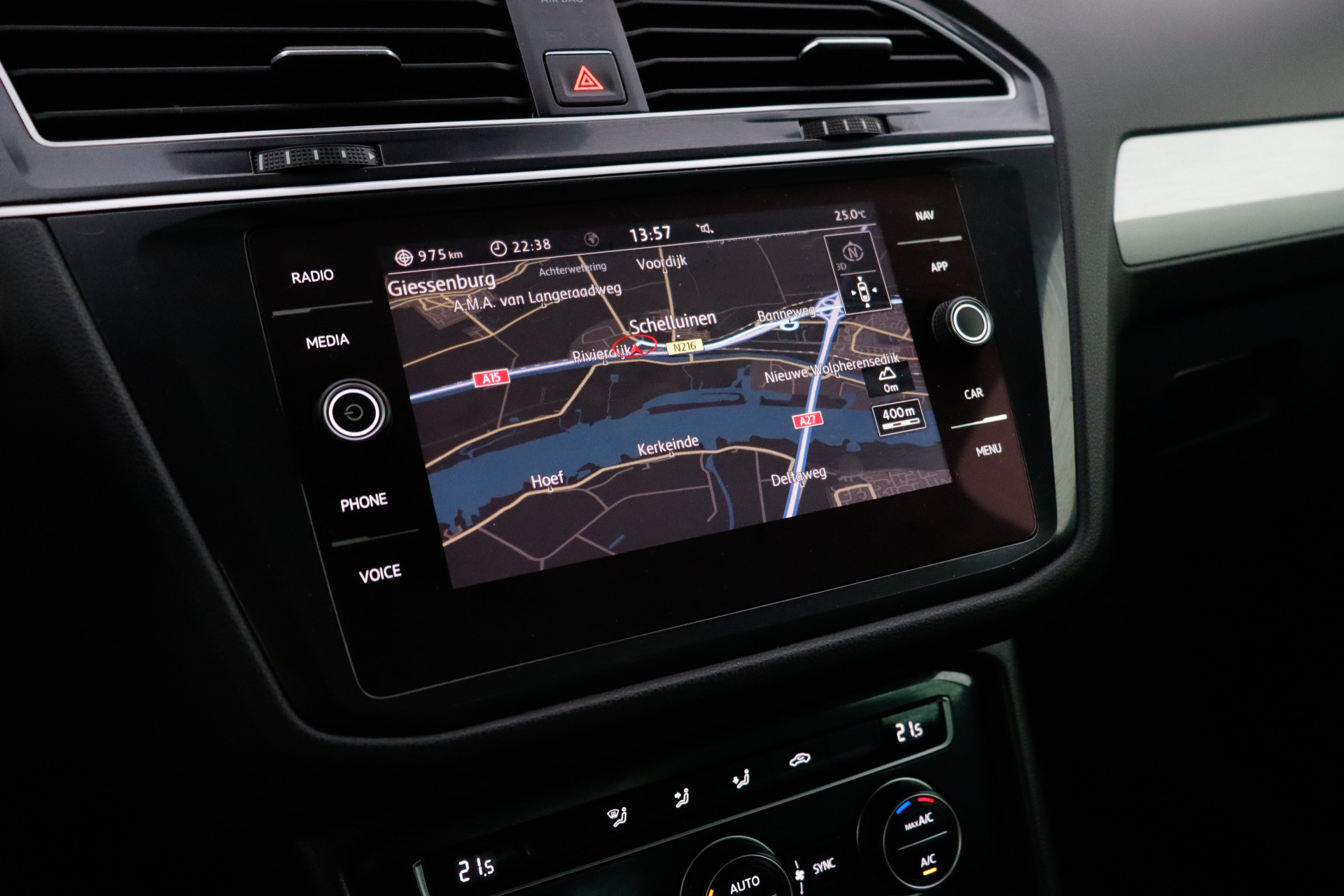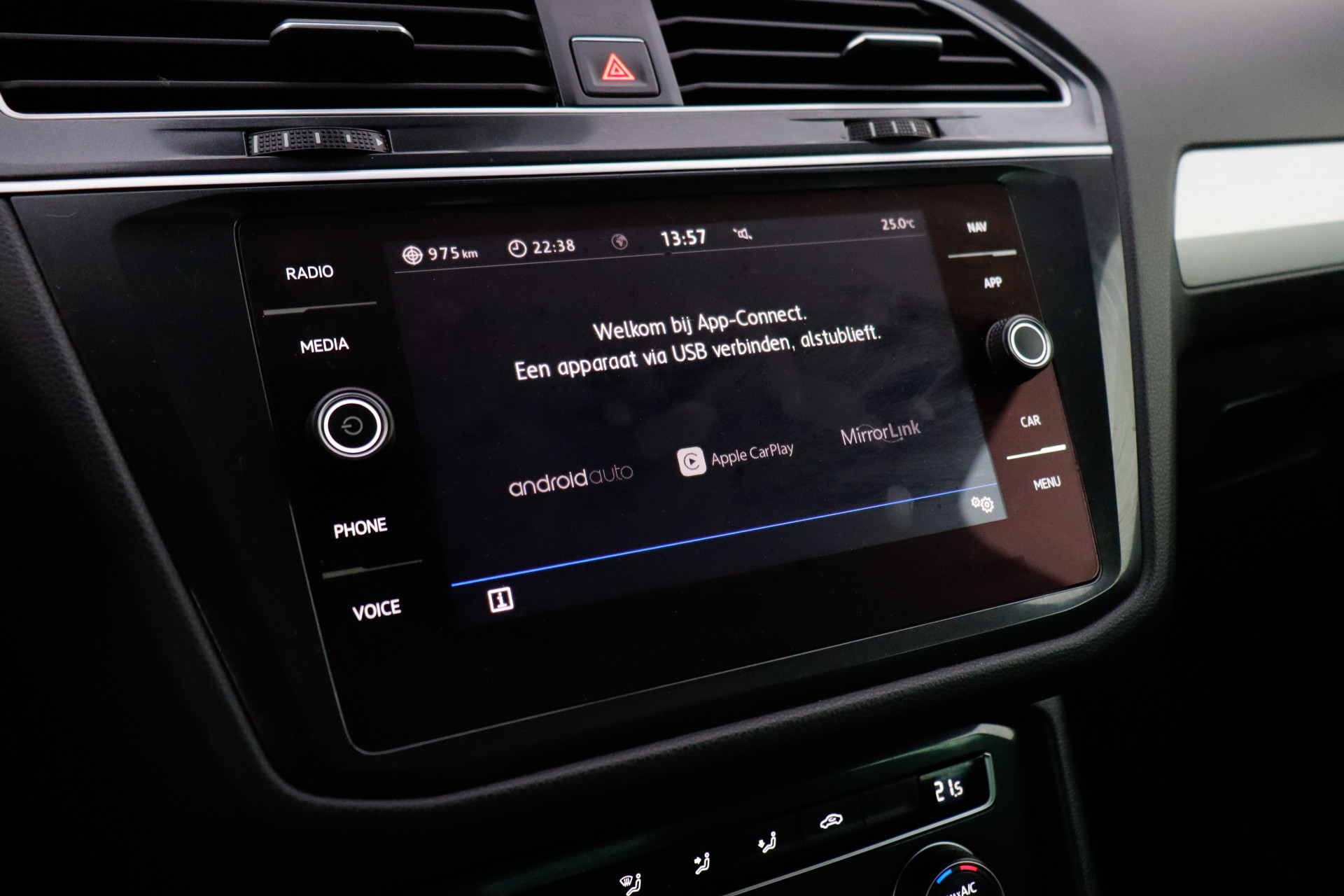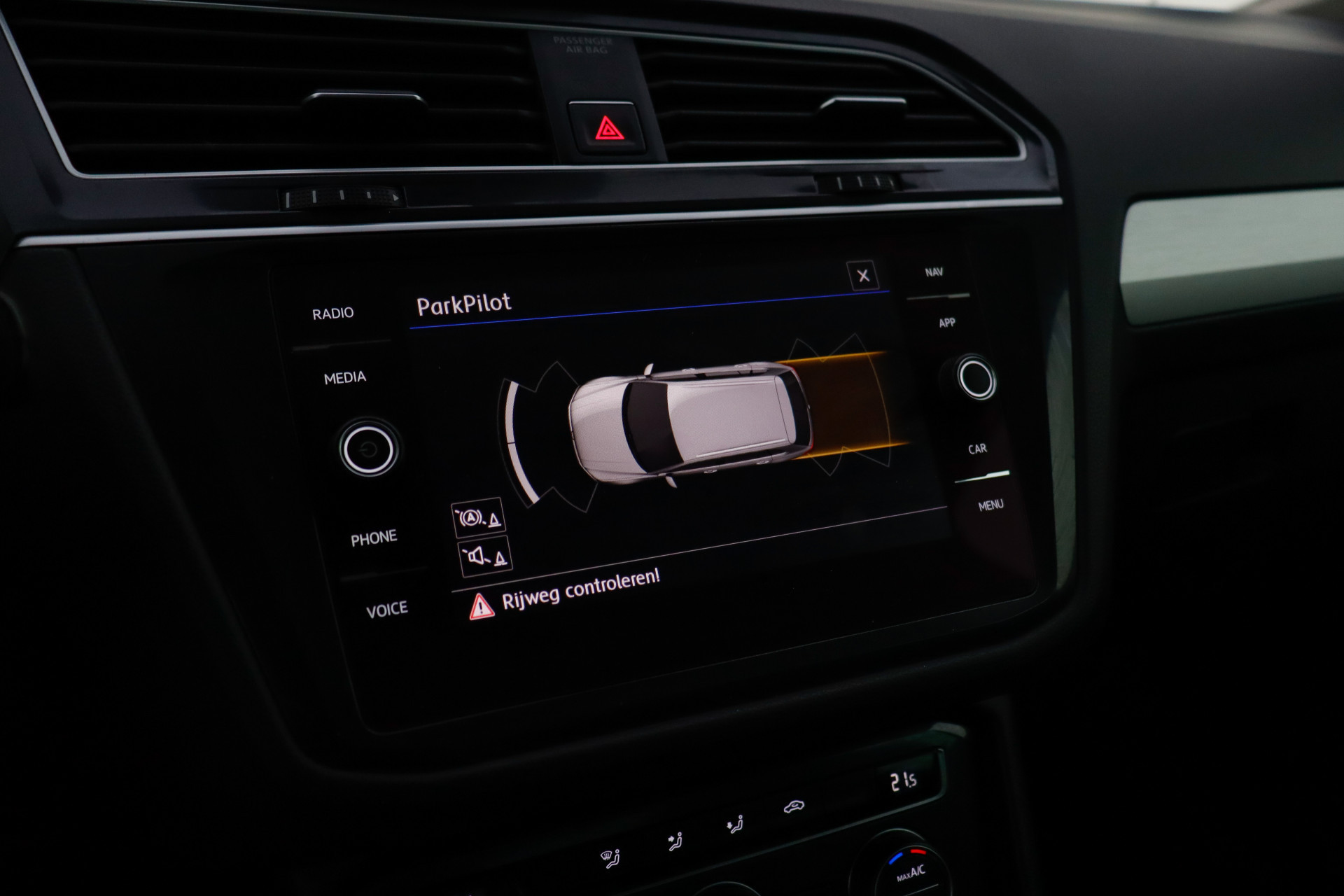 Adaptive cruise control houdt de ingestelde snelheid vast en houdt afstand tot het voertuig voor u. Als u regelmatig met een aanhanger of een fietsendrager op pad bent, is de afneembare trekhaak een praktische extra. Een optie die de veiligheid verhoogt, is de bediening vanaf het stuur van het audio-installatiesysteem (met DAB-radio!) en het navigatiesysteem met harde schijf. Als u wilt kunt u beiden zelfs met uw stem bedienen. Met de automatische airconditioning selecteert u de gewenste temperatuur. Het systeem doet de rest. U kunt bij het inparkeren natuurlijk niet aan alle kanten ogen hebben. Daarom is deze Volkswagen Tiguan voorzien van parkeersensoren! De uitrusting van deze auto is met regensensor, automatisch dimmende binnenspiegel, lederen stuur, centrale deurvergrendeling met afstandsbediening, boordcomputer en lederen versnellingspook behoorlijk compleet.